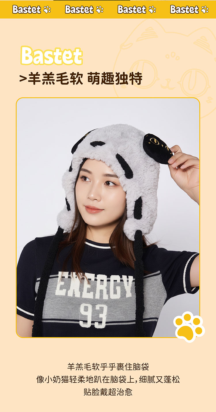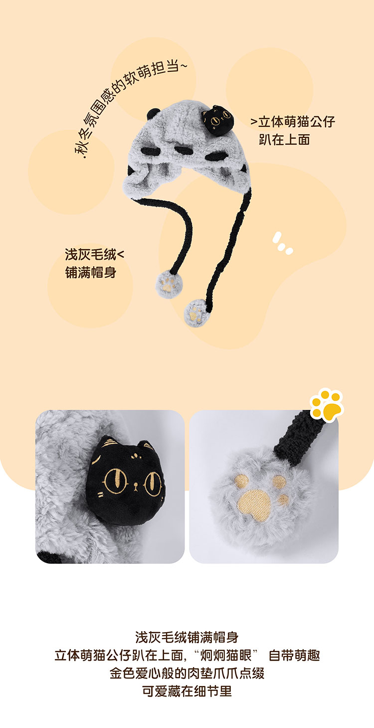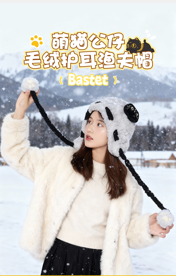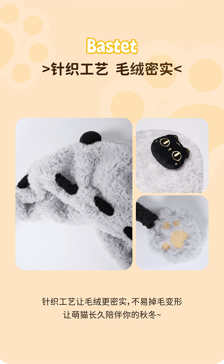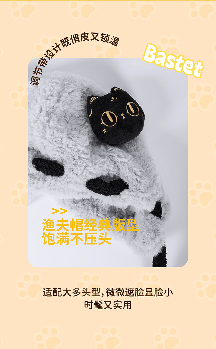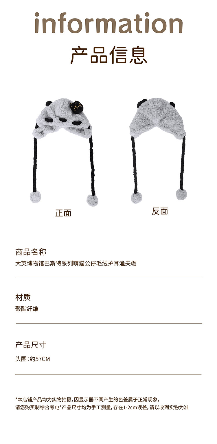 大英博物馆 盖亚·巴斯特系列 萌猫公仔 毛绒护耳渔夫帽