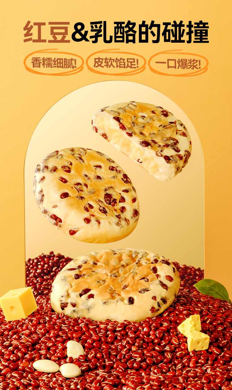 哥本红豆满满乳酪包 满满大颗粒红豆≥20% 无蔗糖添加乳酪酱≥15% 奶香醇厚 松软好吃 每枚85g