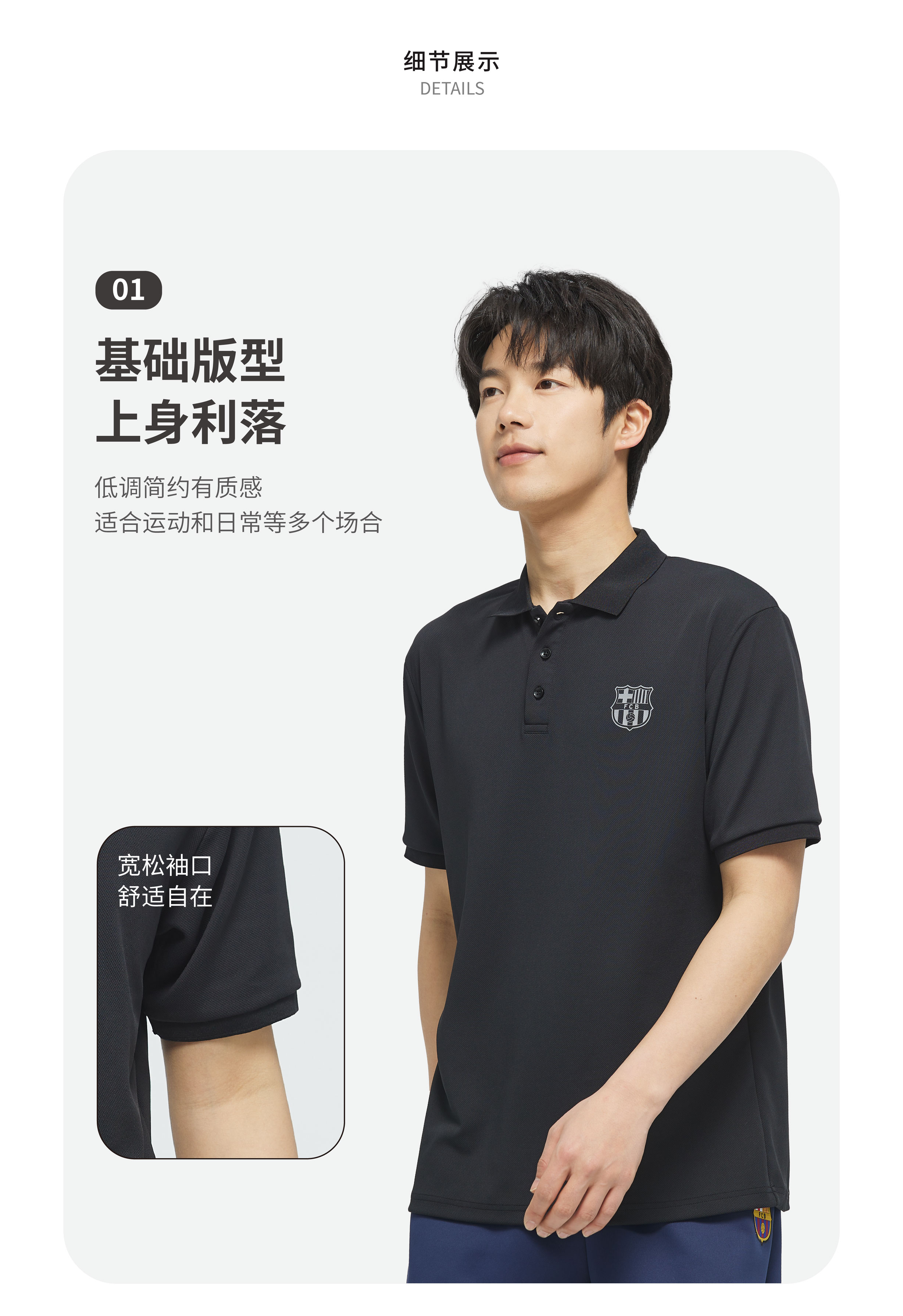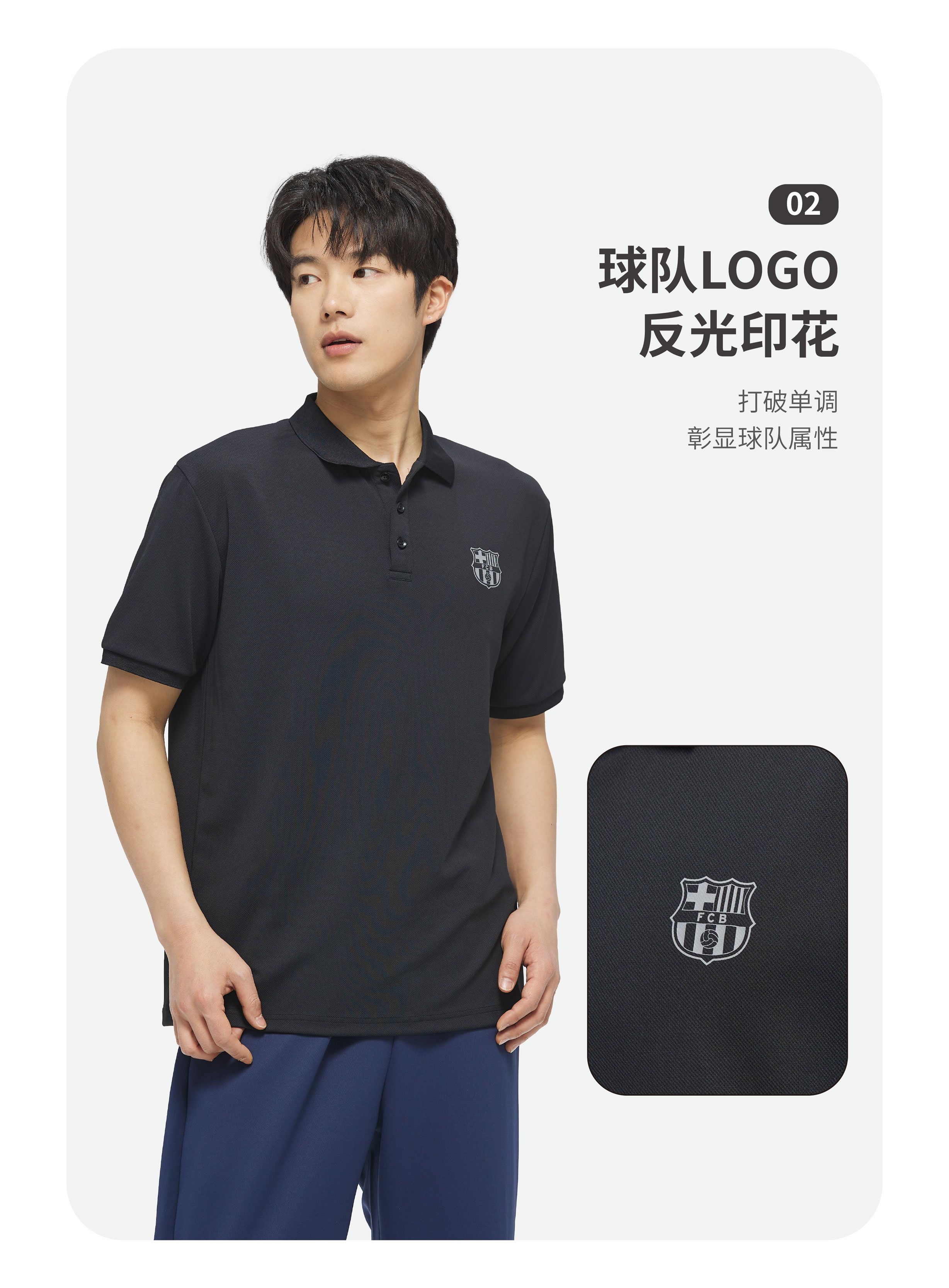 【官方正版】巴塞罗那俱乐部丨巴萨简约休闲黑色清爽POLO男士百搭