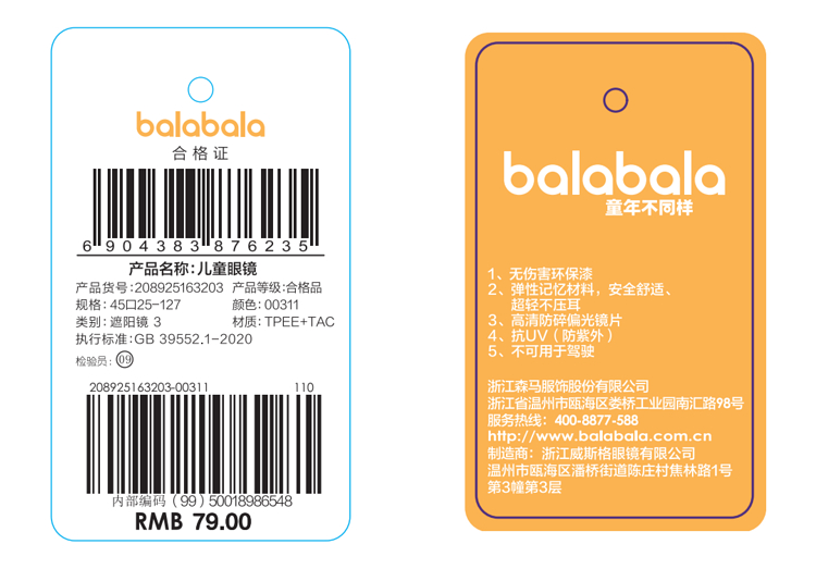 巴拉巴拉儿童眼镜男女童太阳镜卡通造型墨镜高清舒适时尚可爱外出