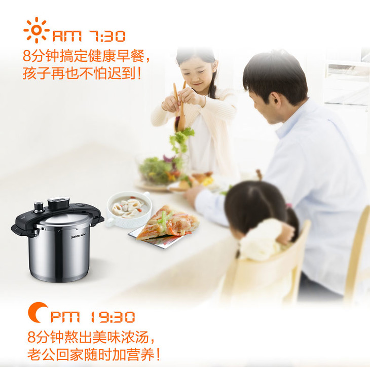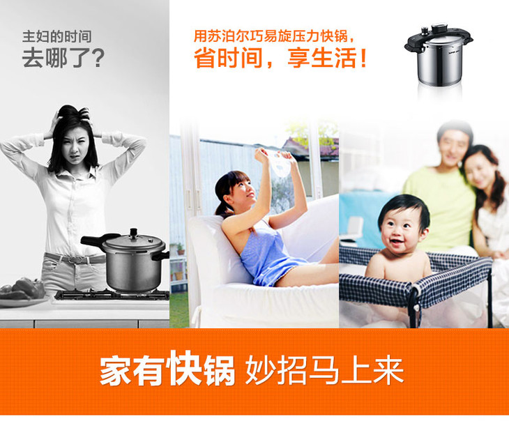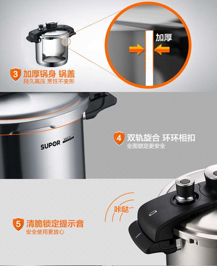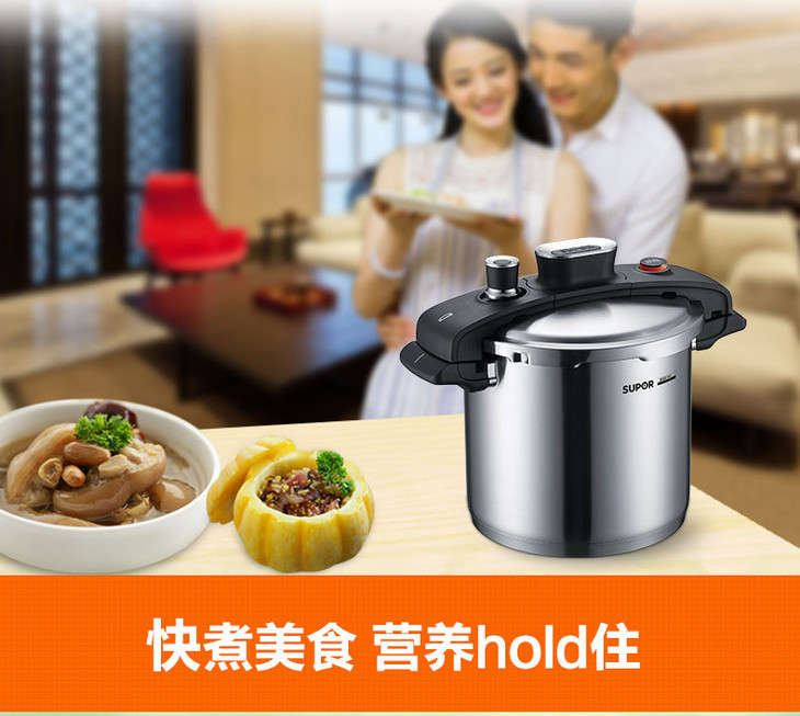 苏泊尔supor 家用304不锈钢高压锅22CM巧易旋压力快锅YW22M1(新老款随机发货)