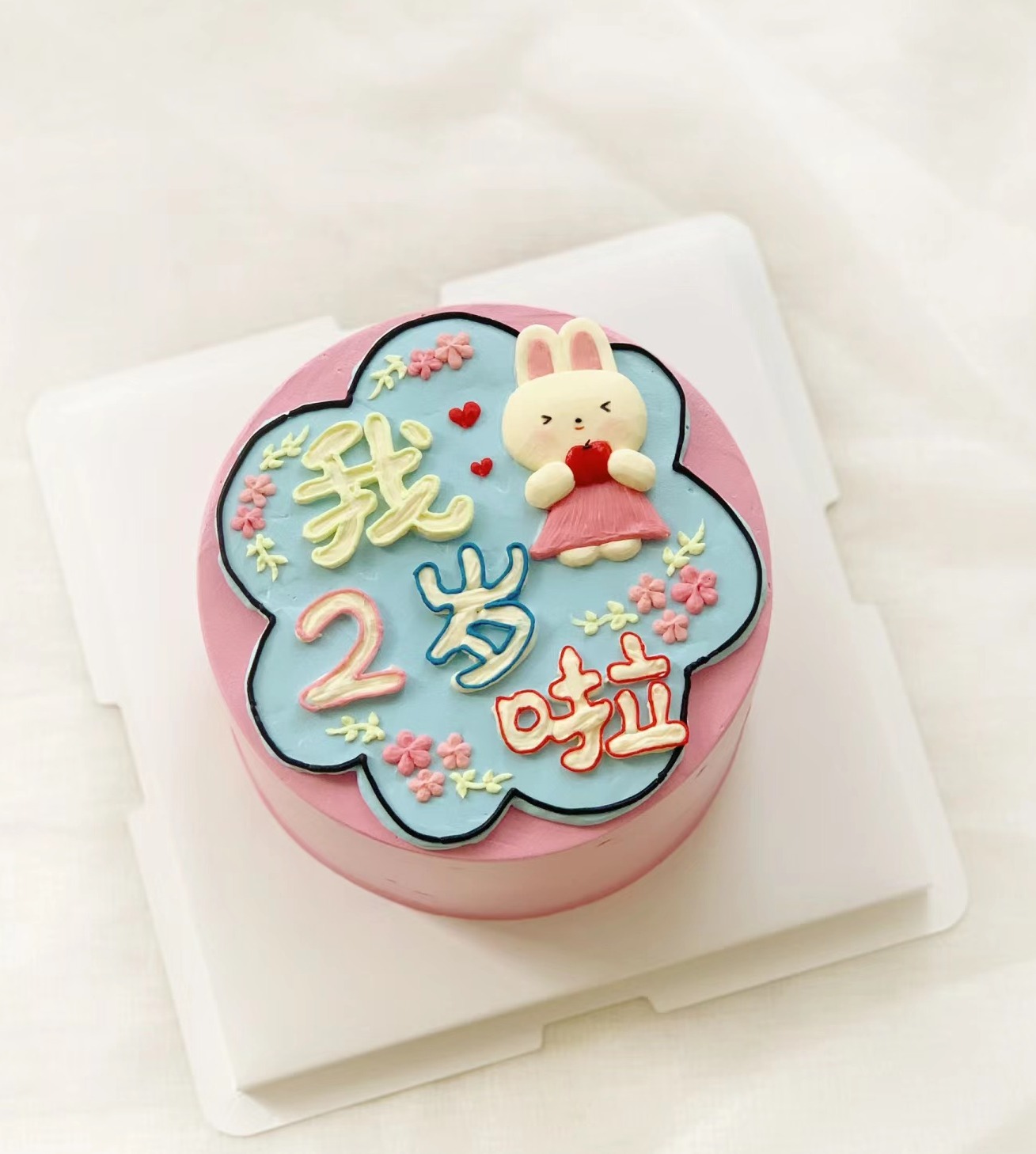 【臻品系列】---奶油霜手绘【超萌小兔子】送女孩、周岁生日蛋糕