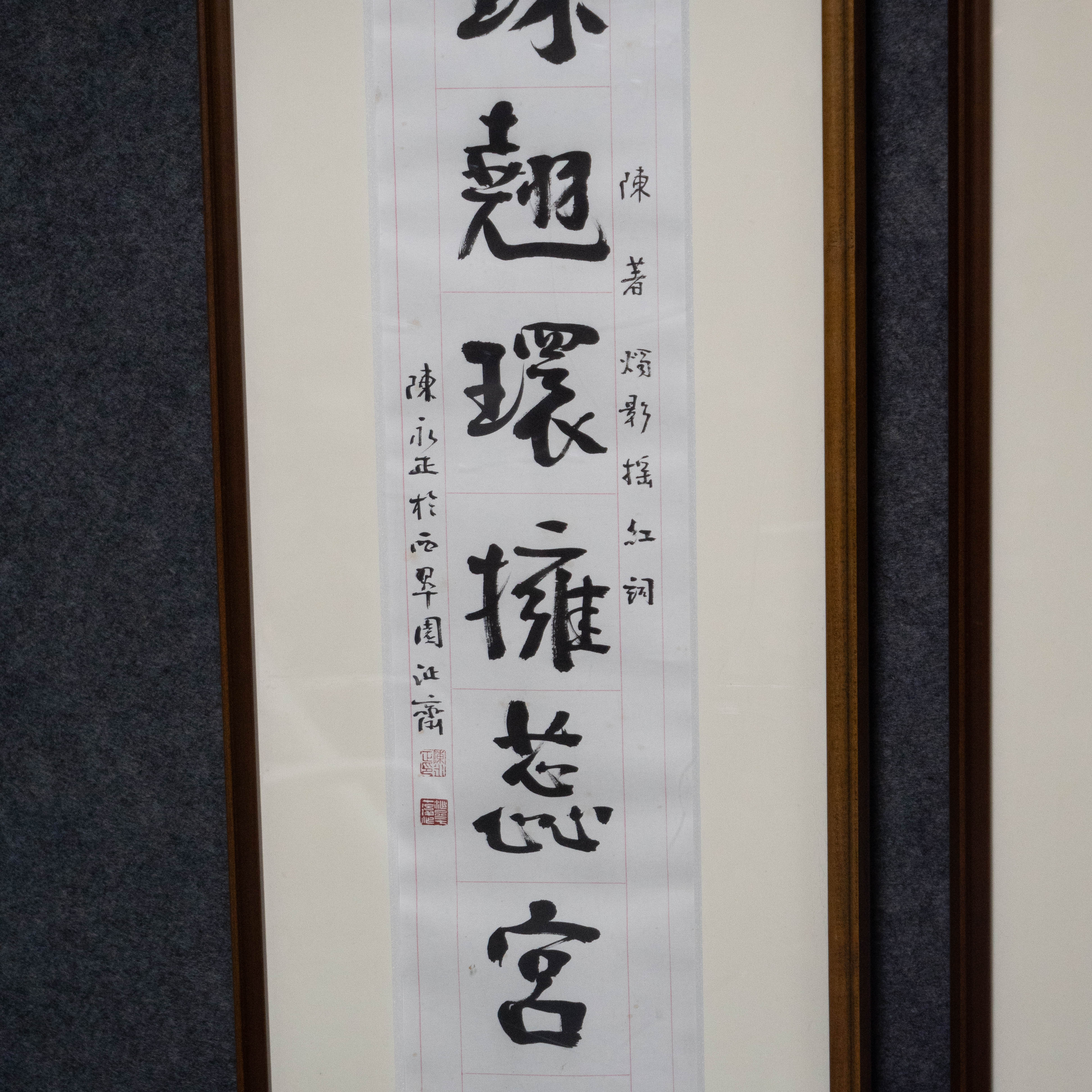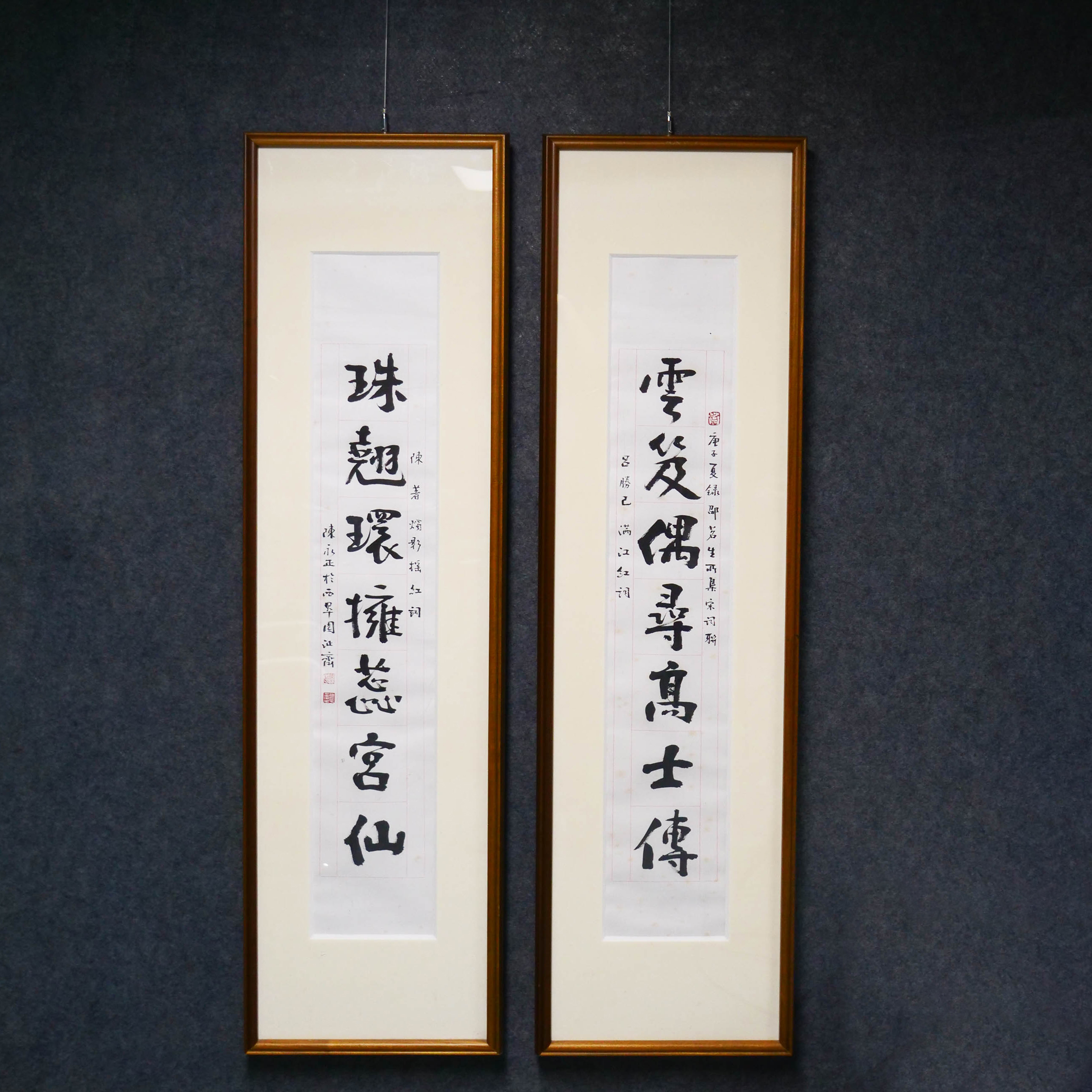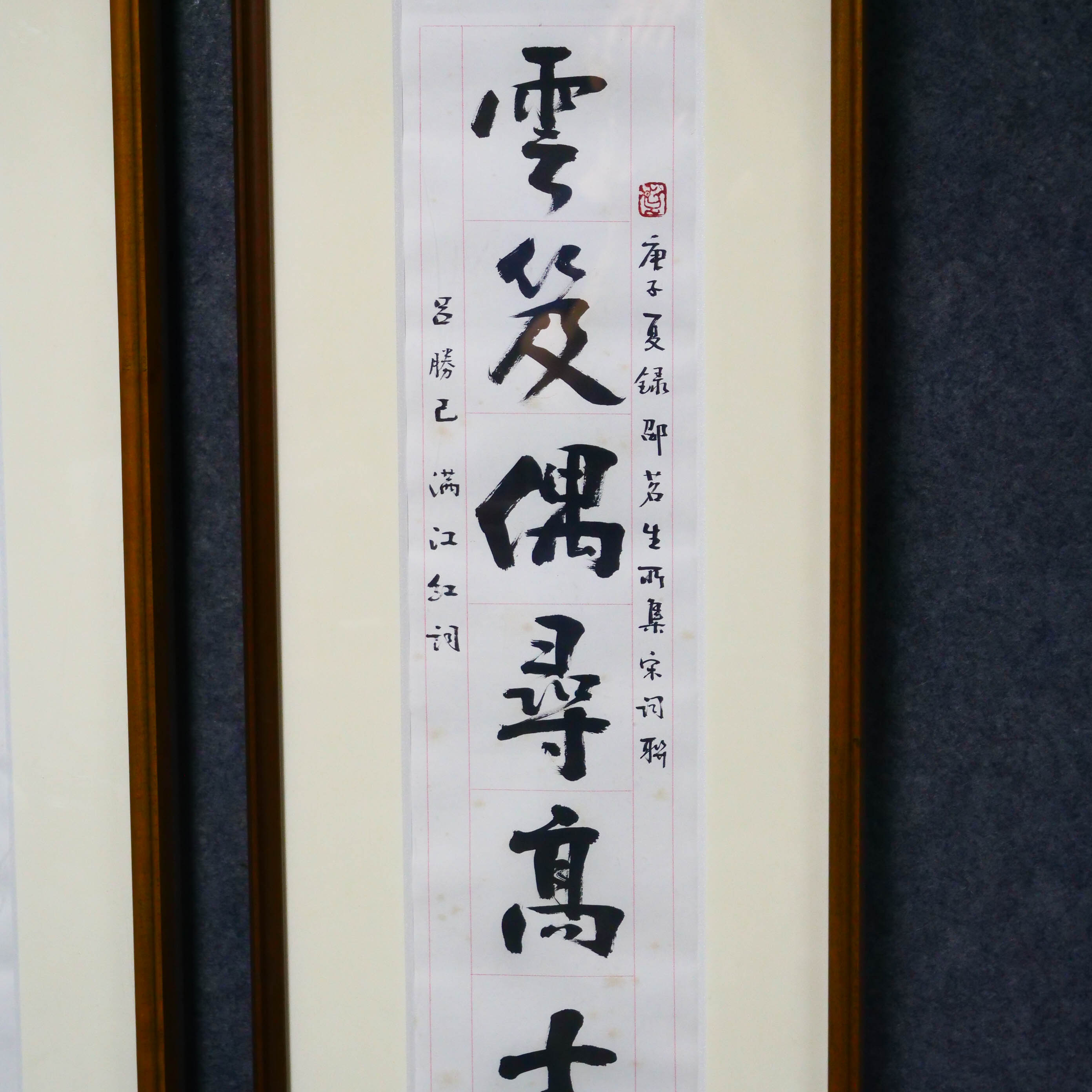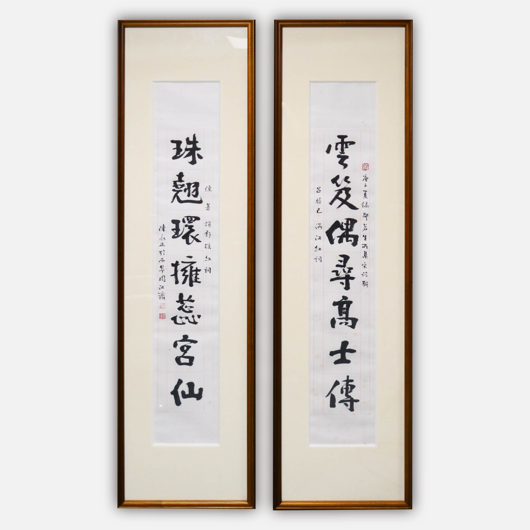 陈永正《云笈偶寻高士传,珠翘环拥蕊宫仙》书法原作97CM*17CM 手写宣纸对联[含框]