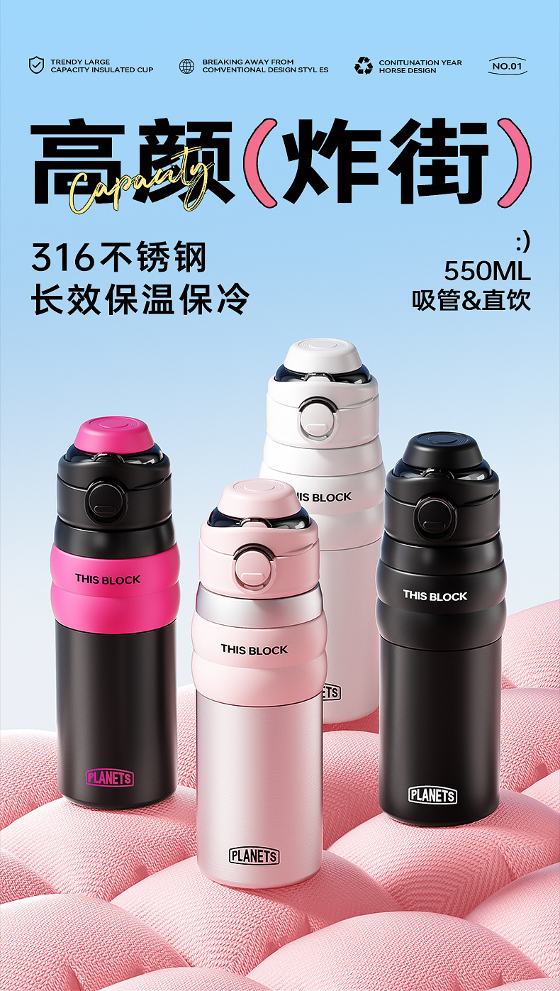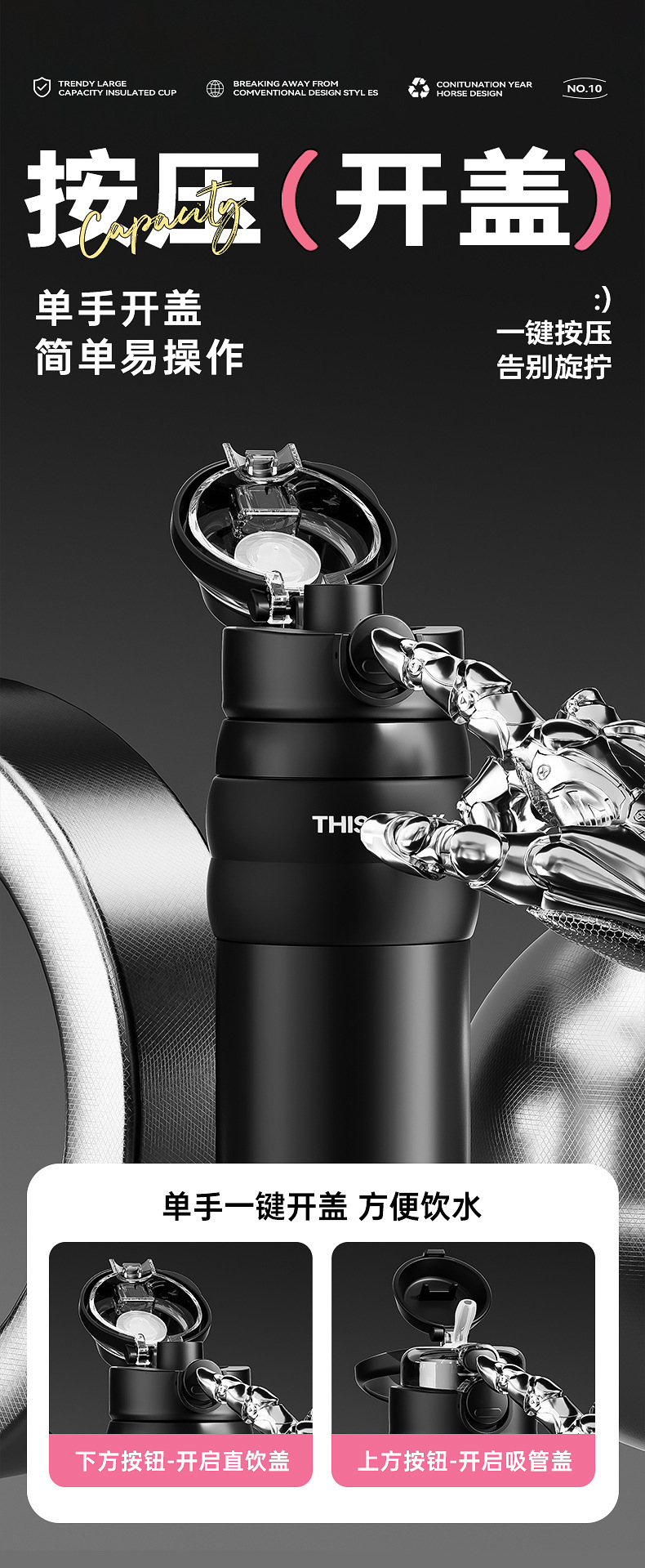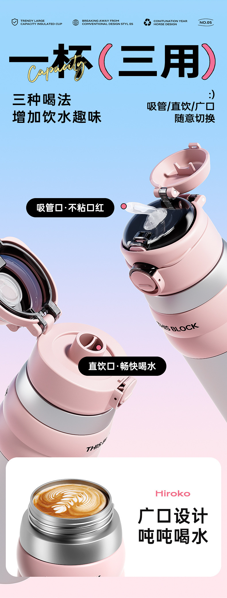 【敲高颜值!一杯三用】街头双饮保温杯316不锈钢高颜值女生吸管杯便携手提水杯运动水壶,吸管/直饮/广口,随意切换。ry