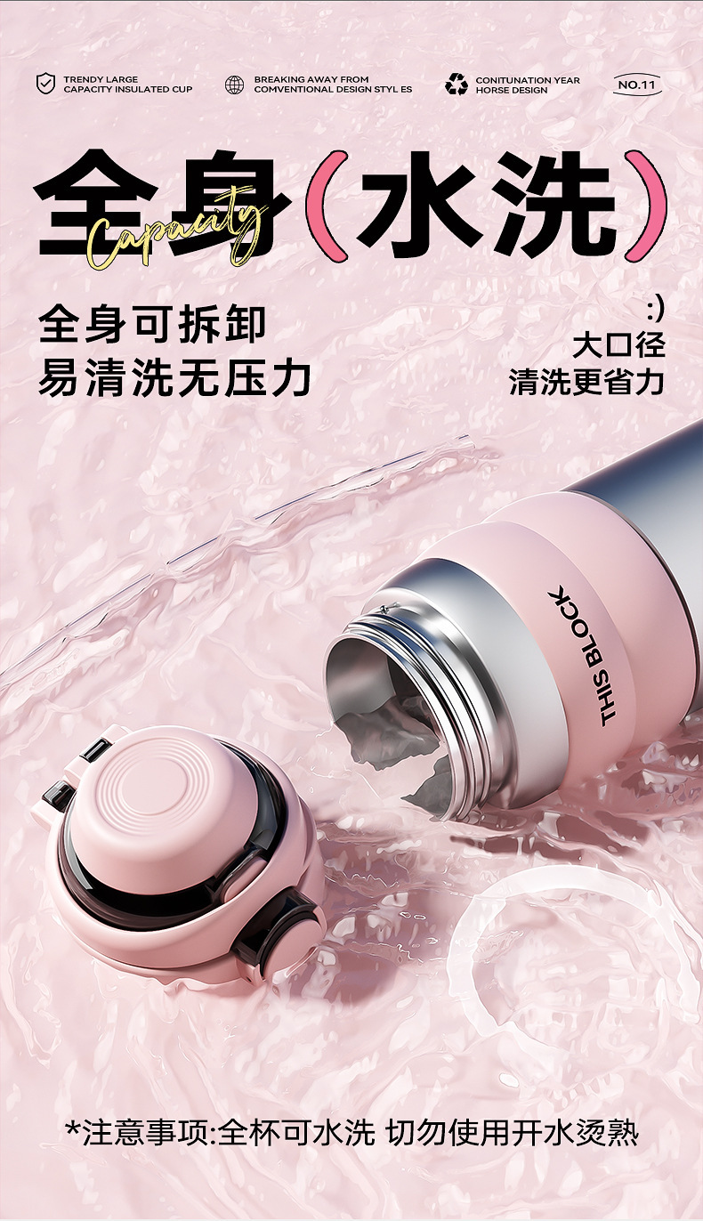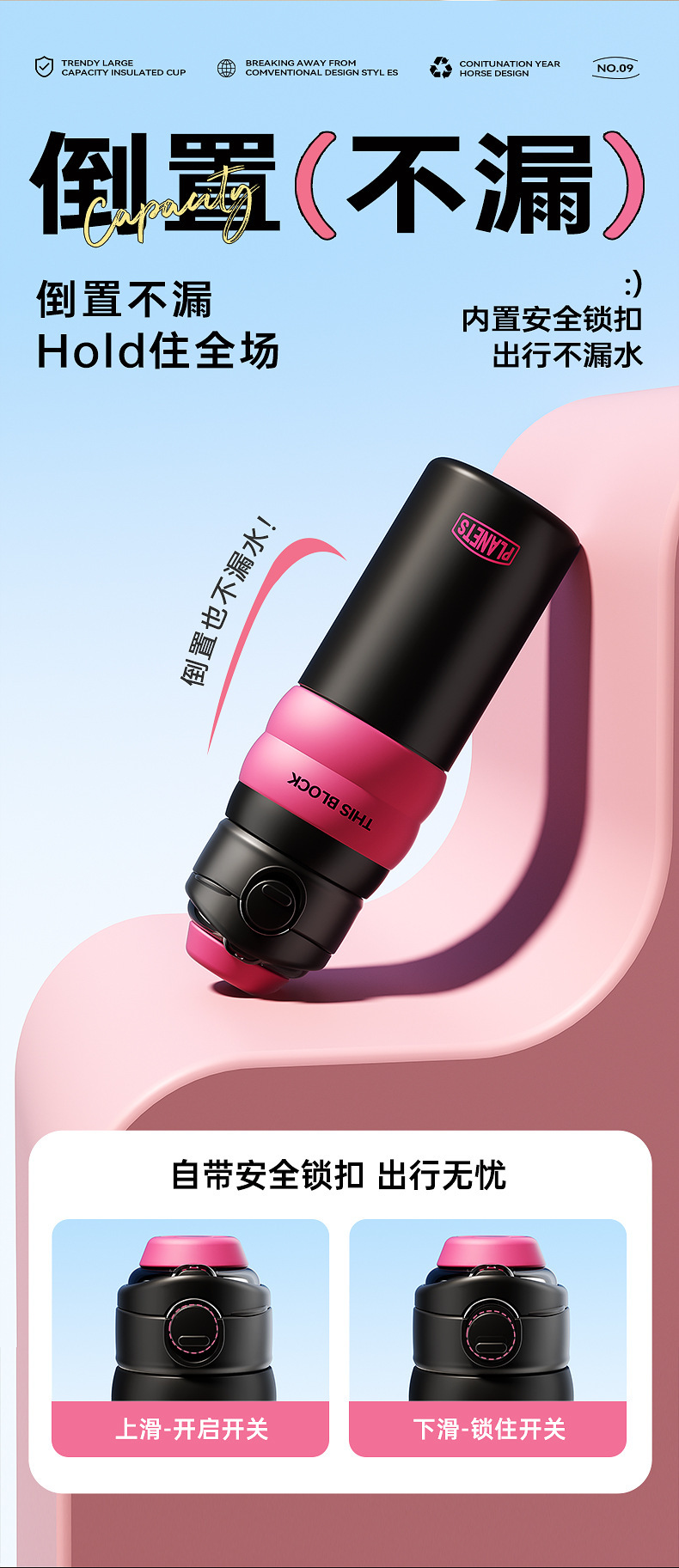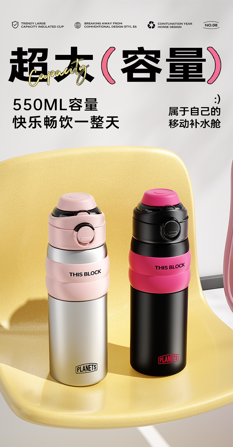 【敲高颜值!一杯三用】街头双饮保温杯316不锈钢高颜值女生吸管杯便携手提水杯运动水壶,吸管/直饮/广口,随意切换。ry