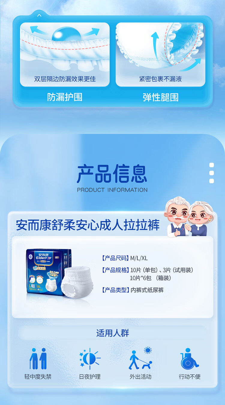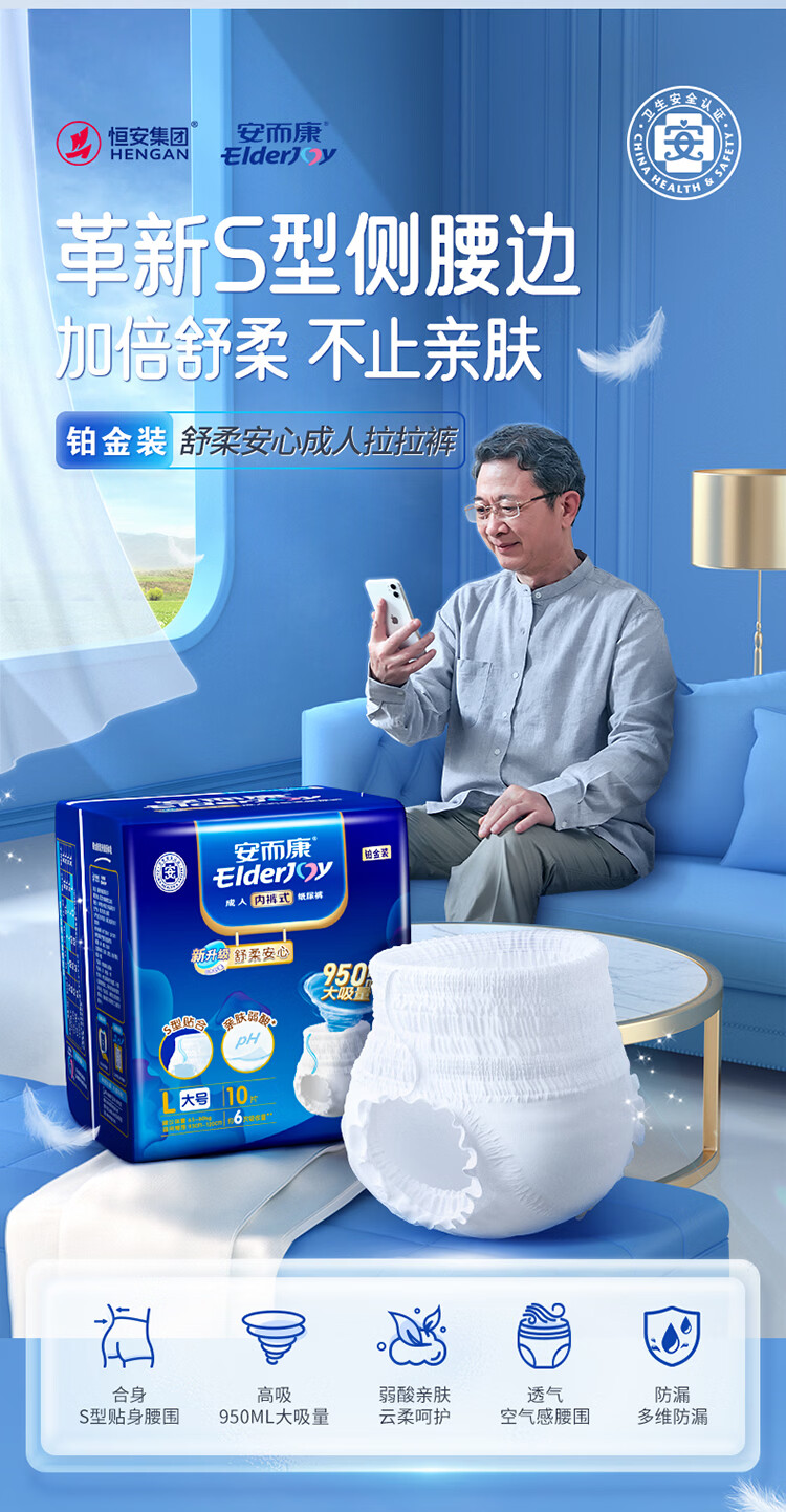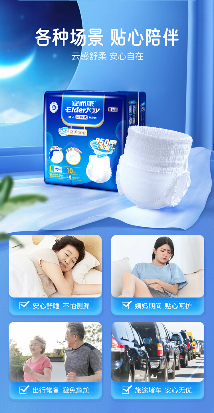 安而康舒柔安心成人内裤式纸尿裤 L号10片/包