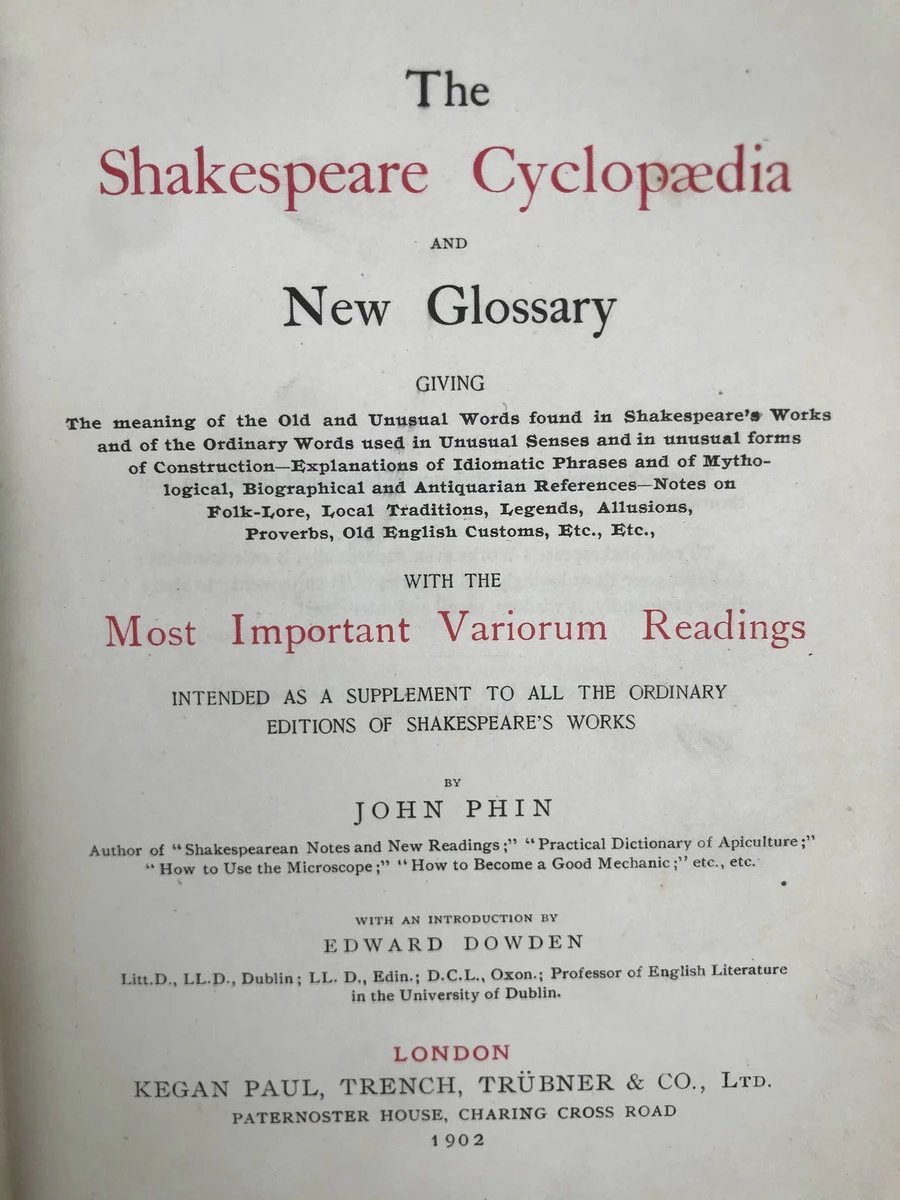 1902年 莎士比亚百科全书与新版总结 漆布精装32开