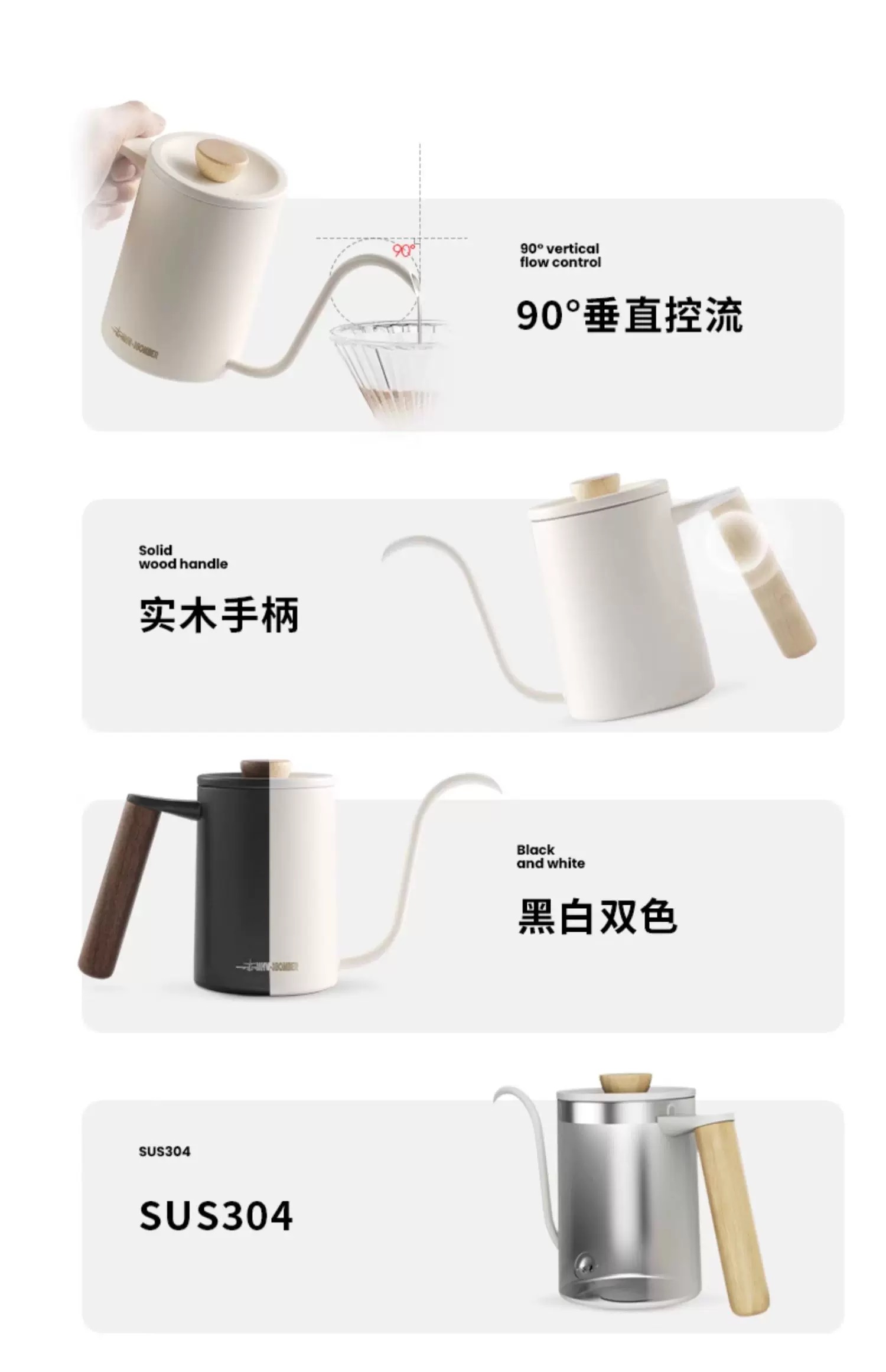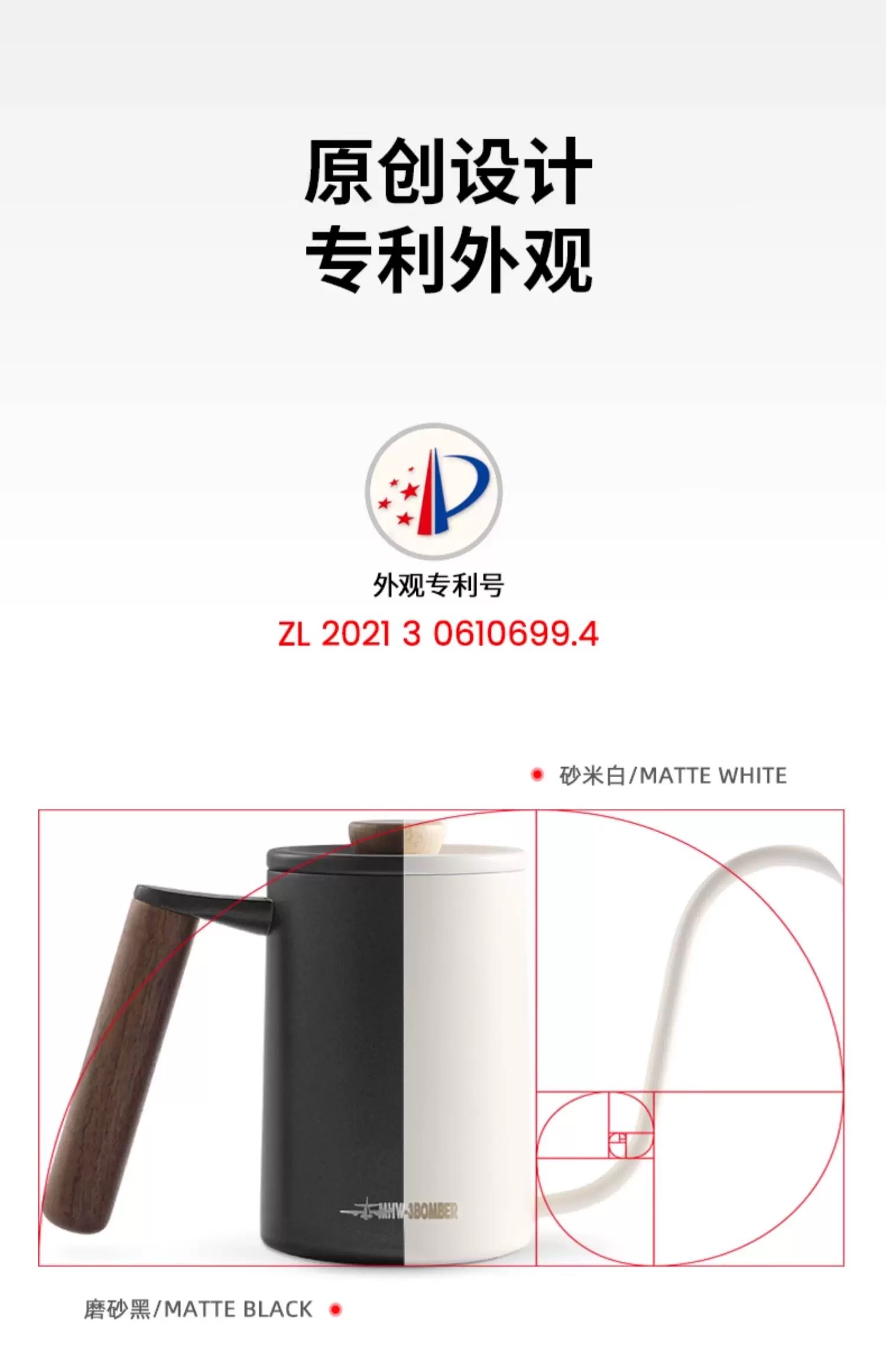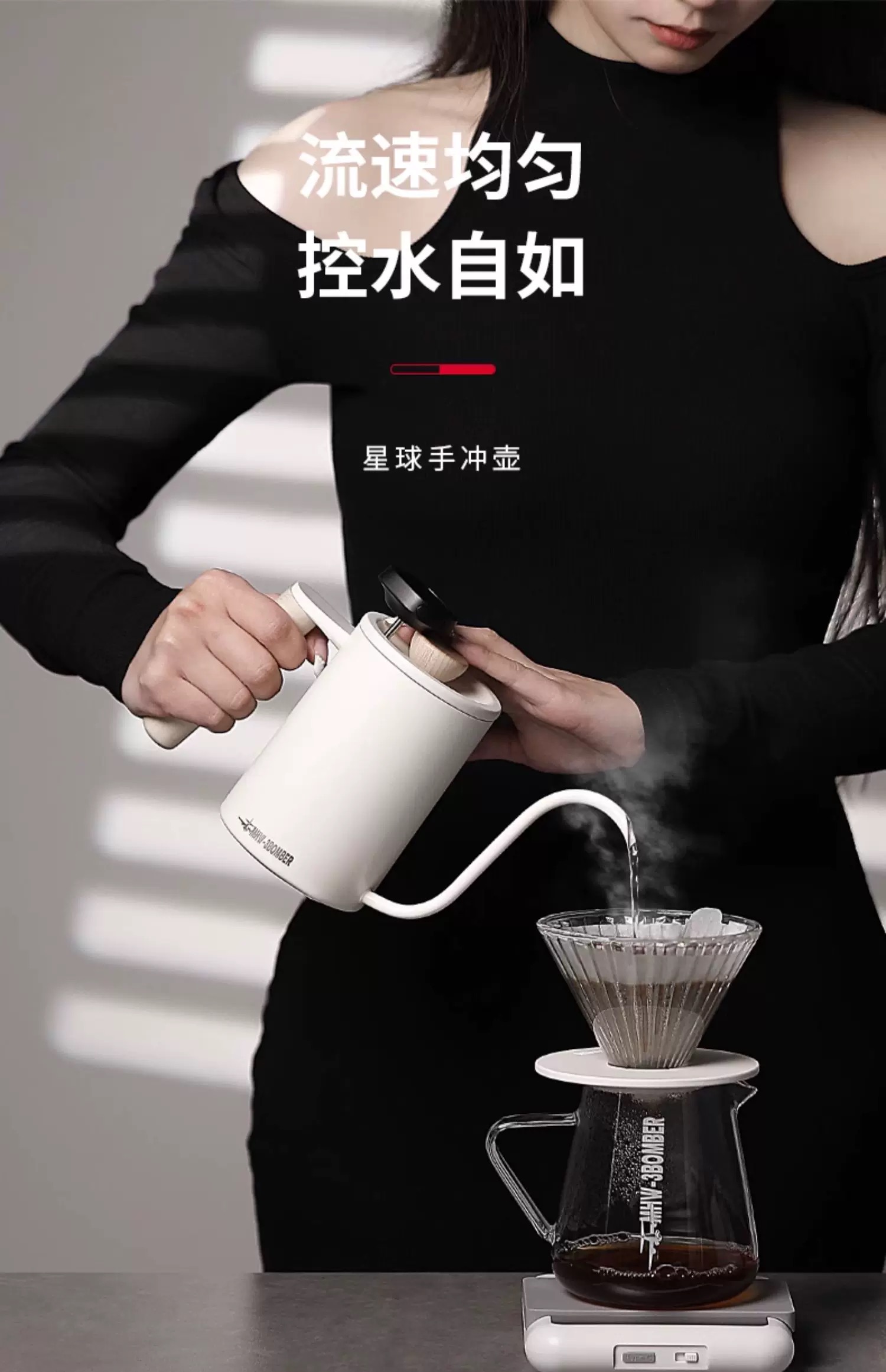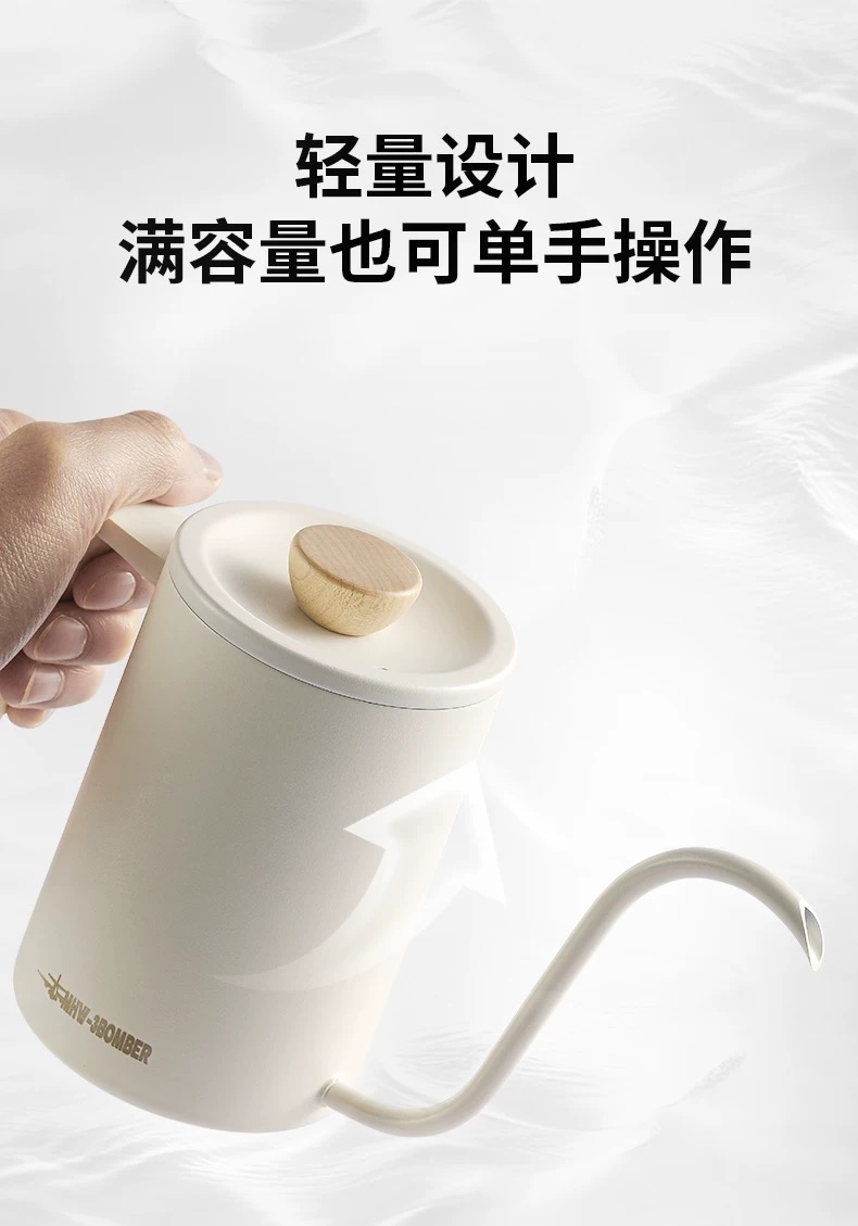 星球手冲壶-磨砂黑-600ml 实木手柄不锈钢细口壶 MHW-3BOMBER轰炸机