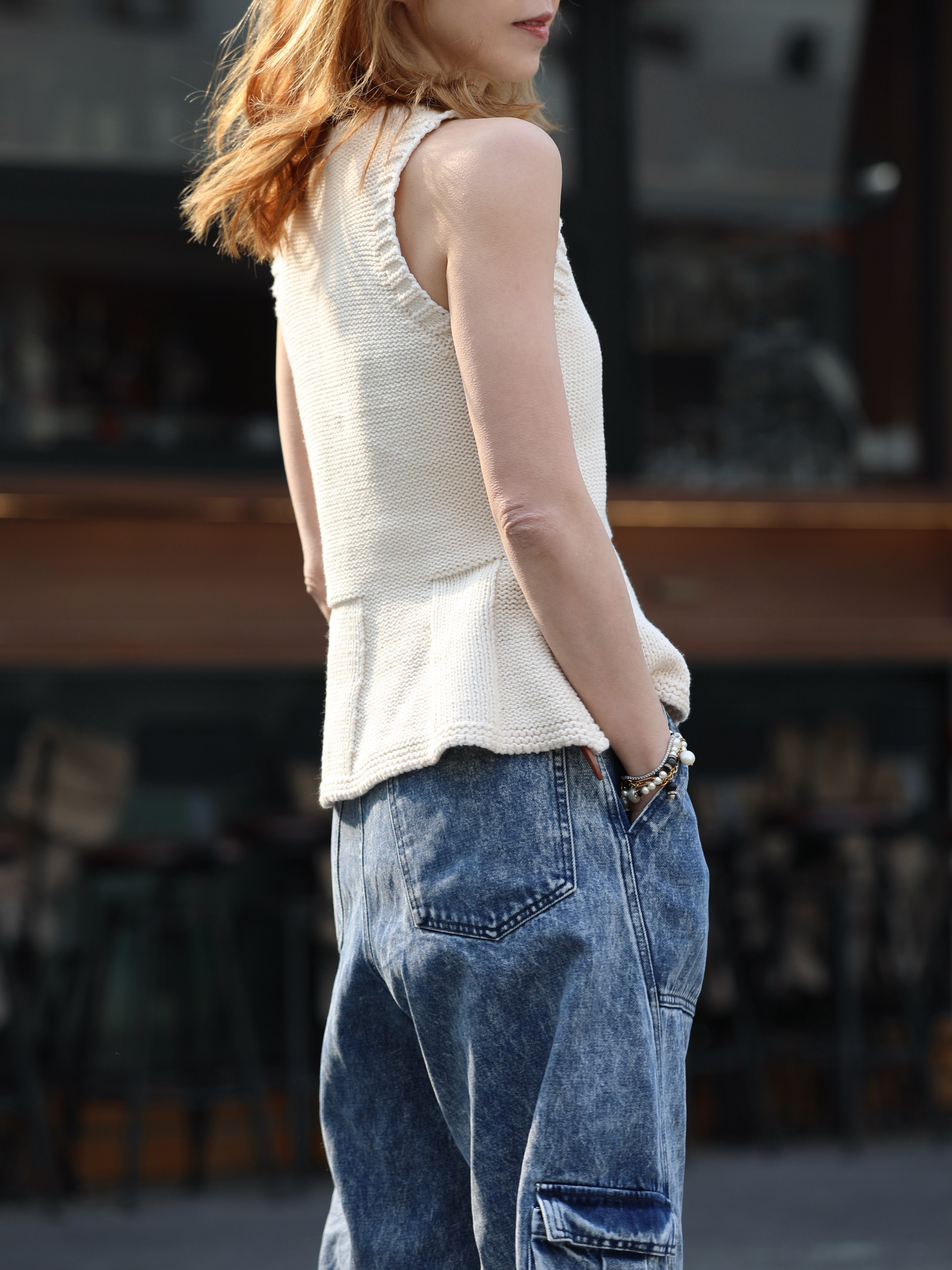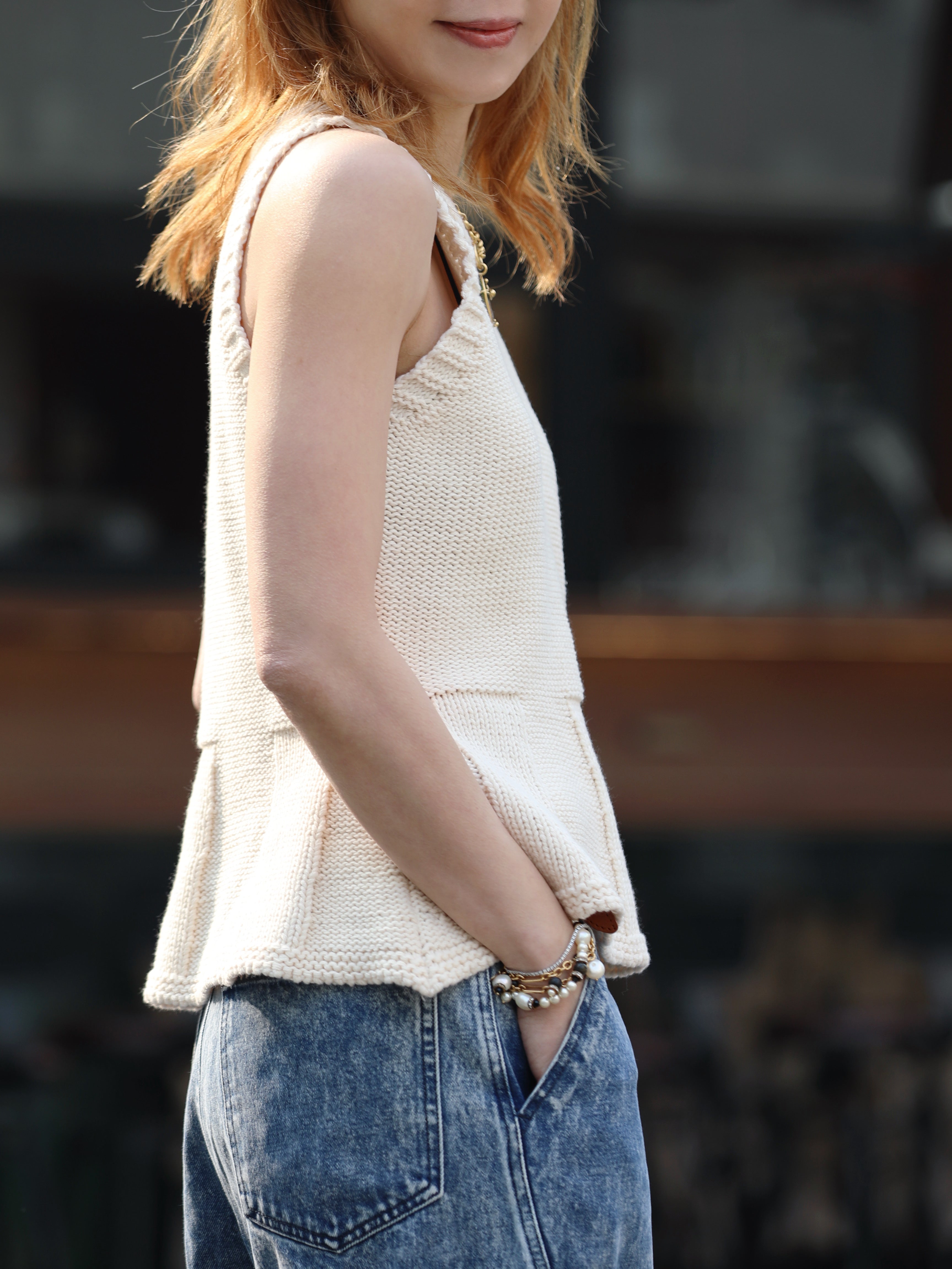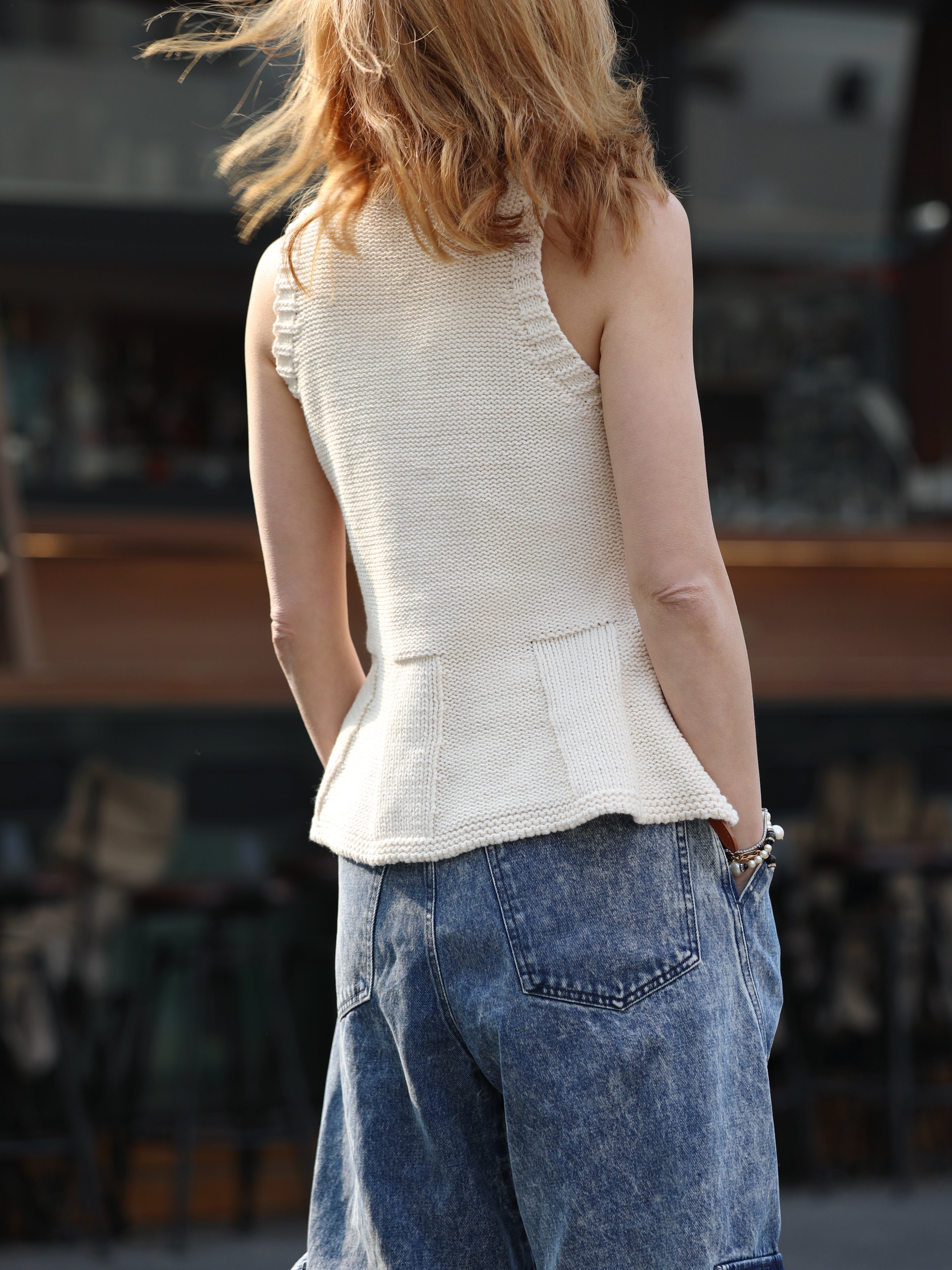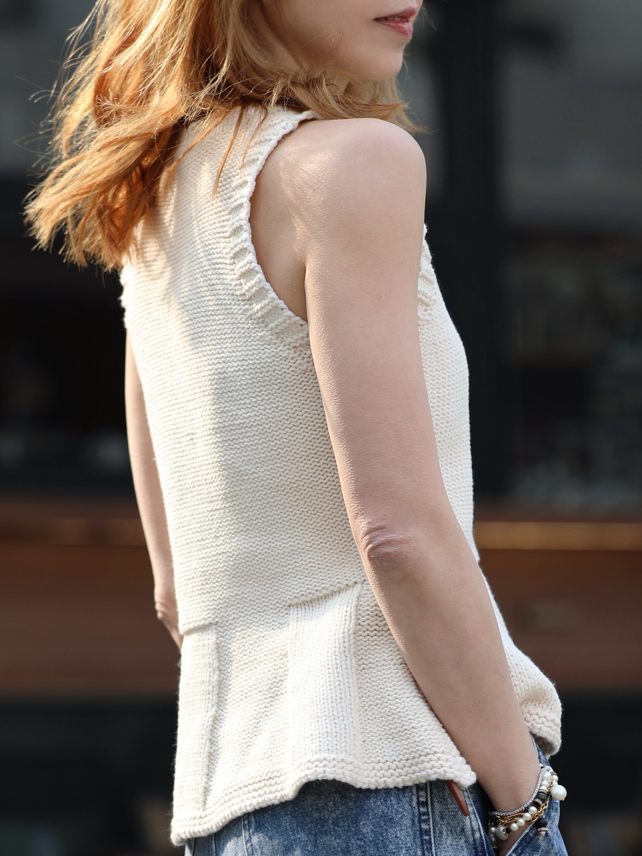 TYNVIE 针织荷叶边背心 - 白色