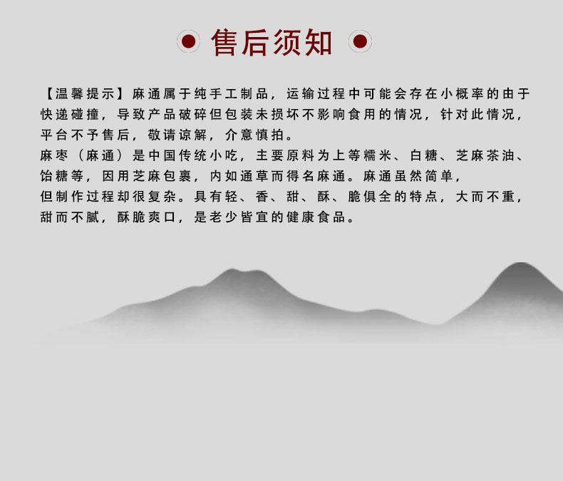 【关于售后】麻通是澎化食品,酥软通透,发货过程中偶尔有断裂属正常情况,不在售后范围内