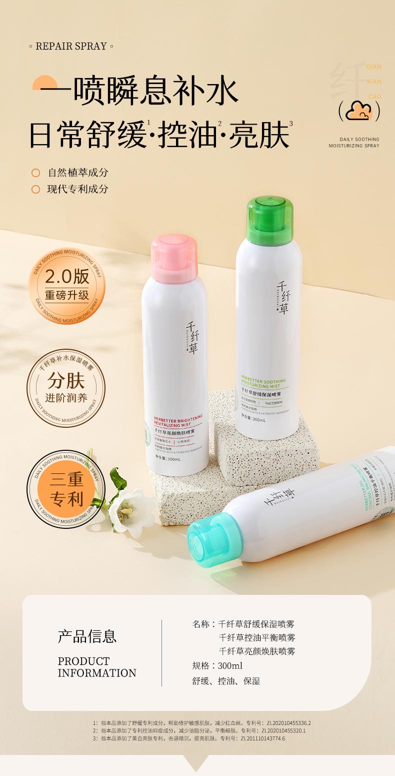 【2瓶29.9丨3瓶39.9】千纤草舒缓保湿喷雾 / 控油平衡喷雾 / 亮颜焕肤喷雾300ml