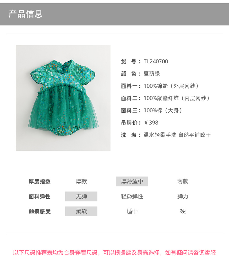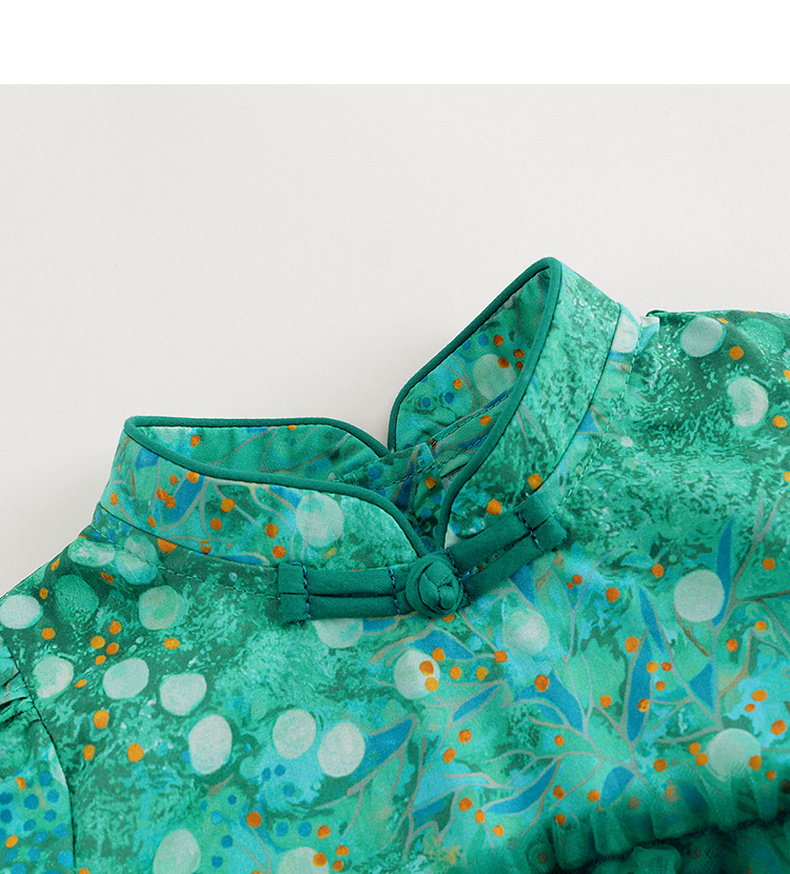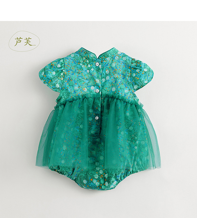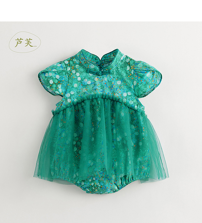 【马克珍妮 芦芙】女宝宝新中式夏荫绿旗袍连体衣婴儿夏装240700