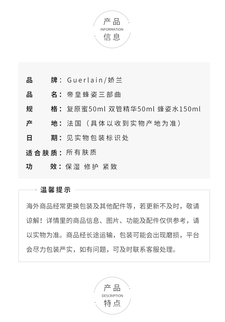 Guerlain娇兰黄金三件套 复原蜜50ml+双管精华50ml+蜂姿水150ml 【CDF】