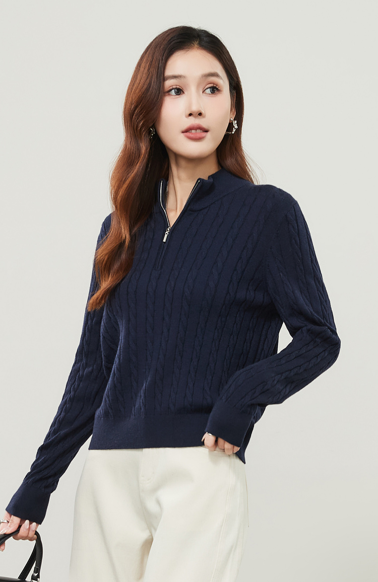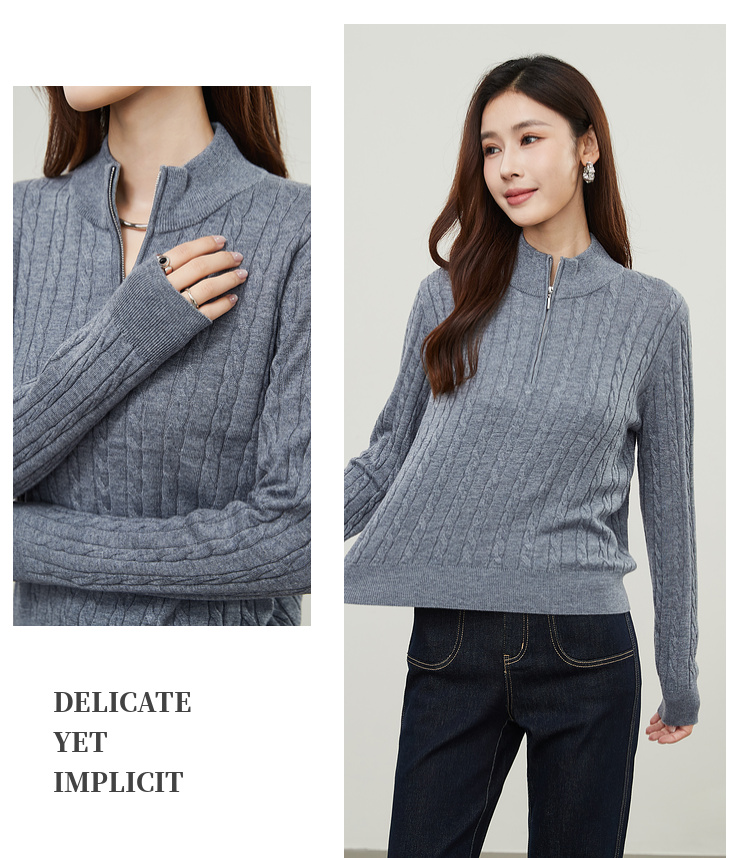 【立领半拉链-羊毛衫】逸阳秋冬新品时尚亲肤软糯针织打底衫7918V