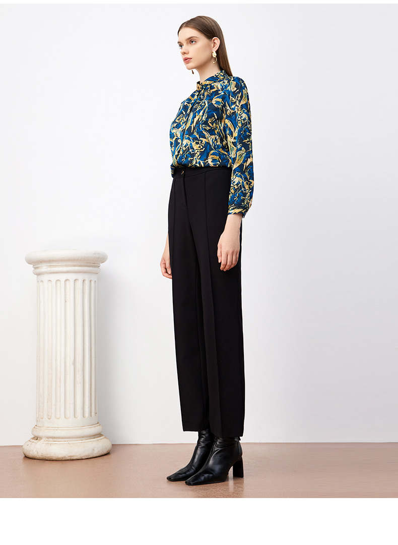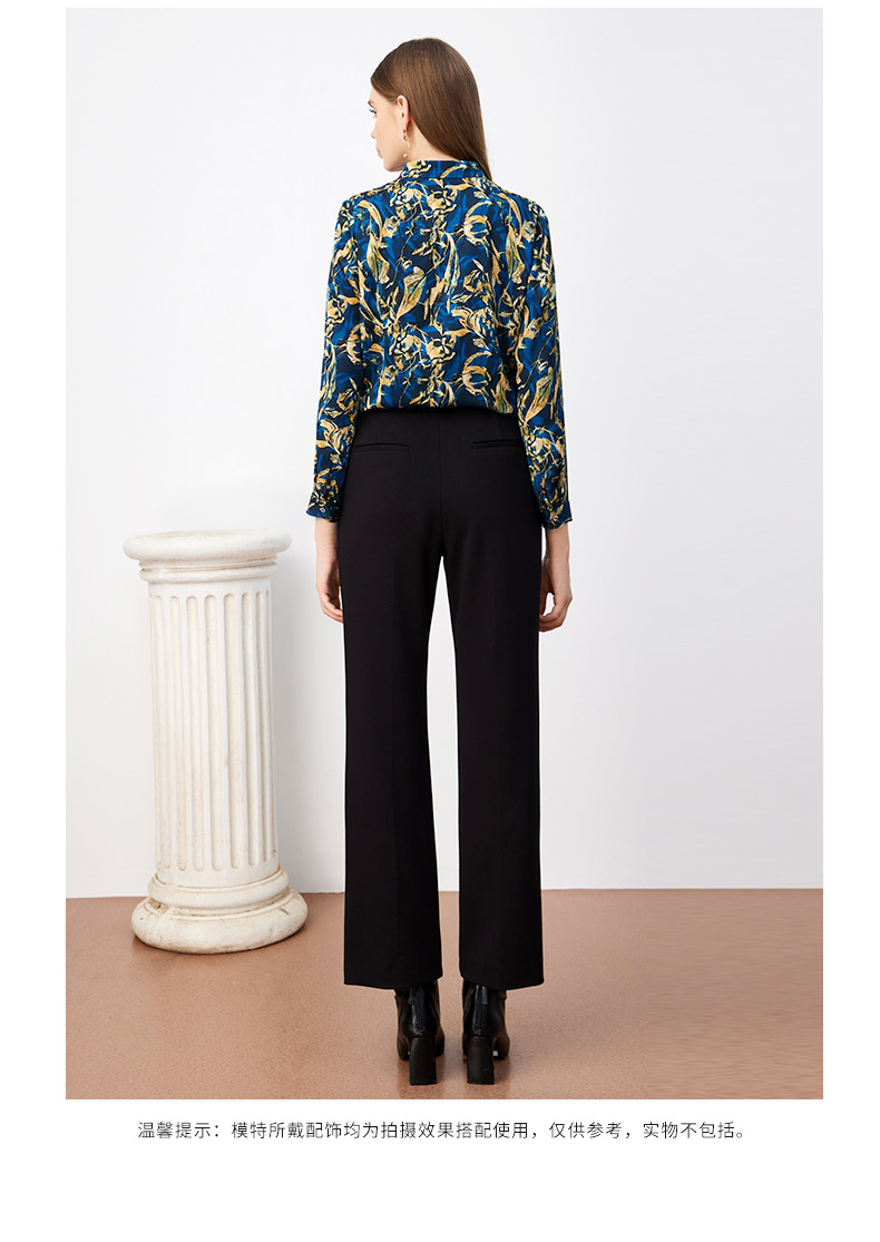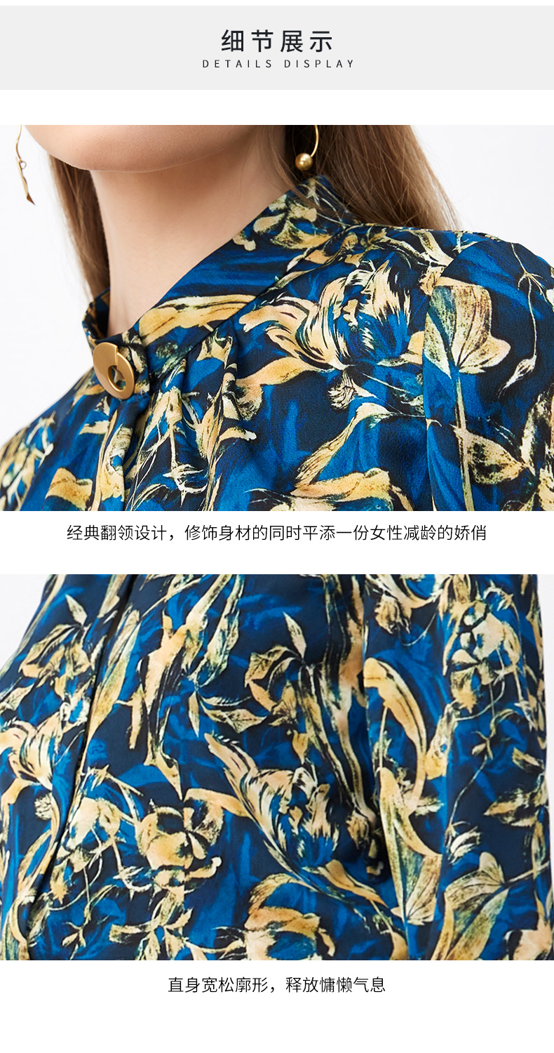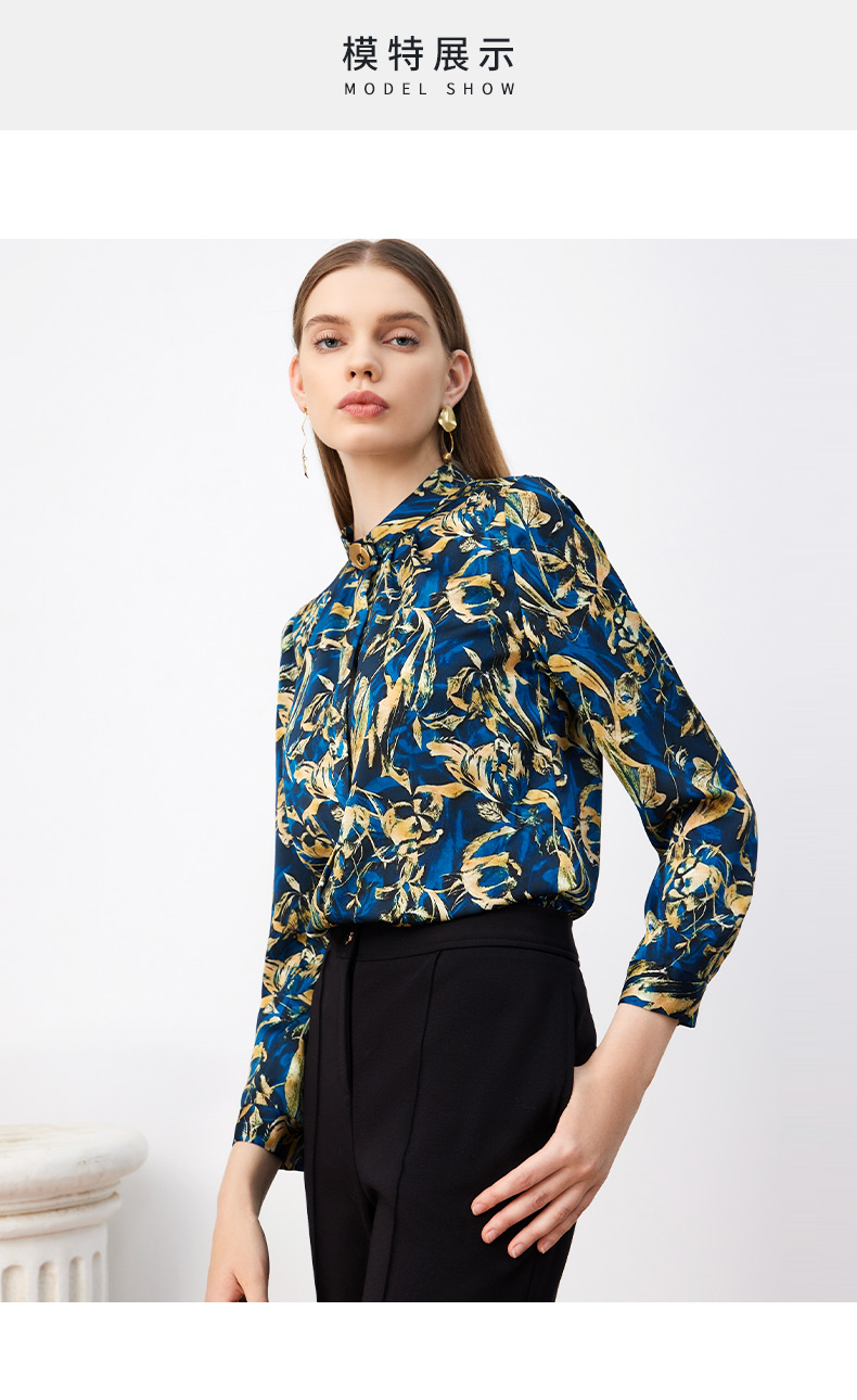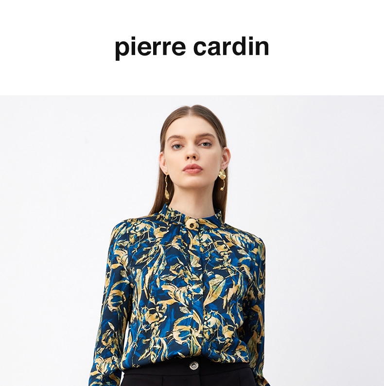 皮尔卡丹女装新款高级复古印花通勤长袖衬衫P3330B3987L3