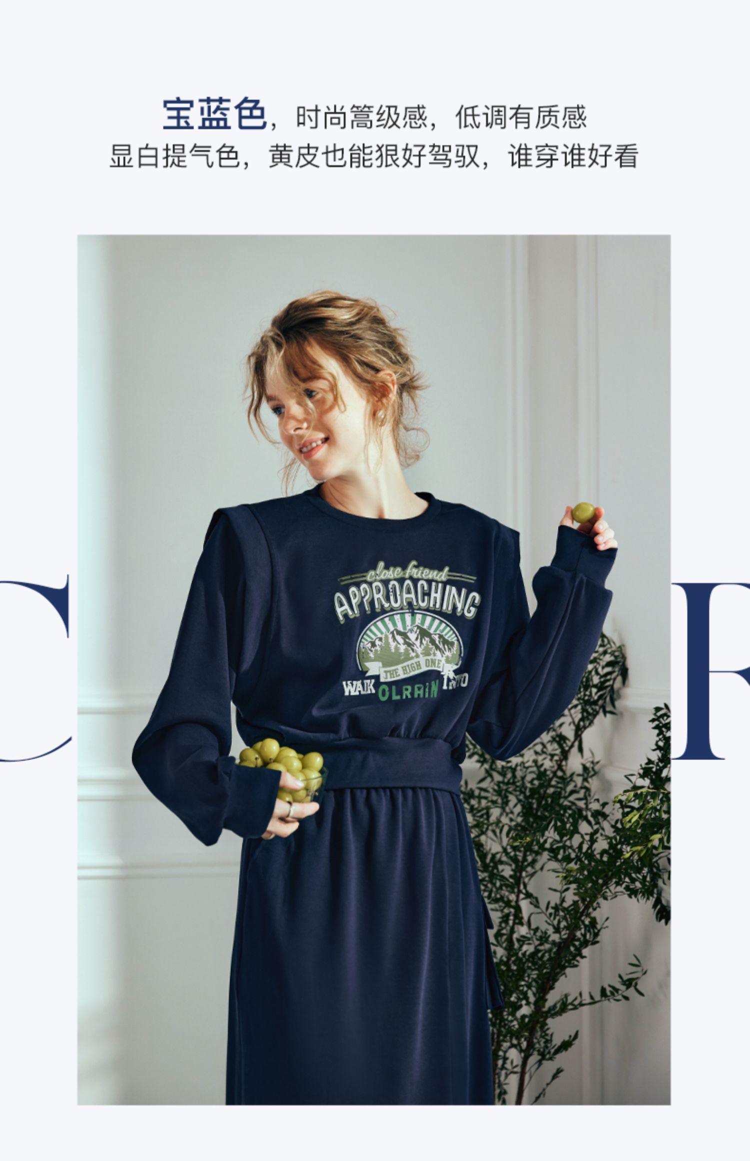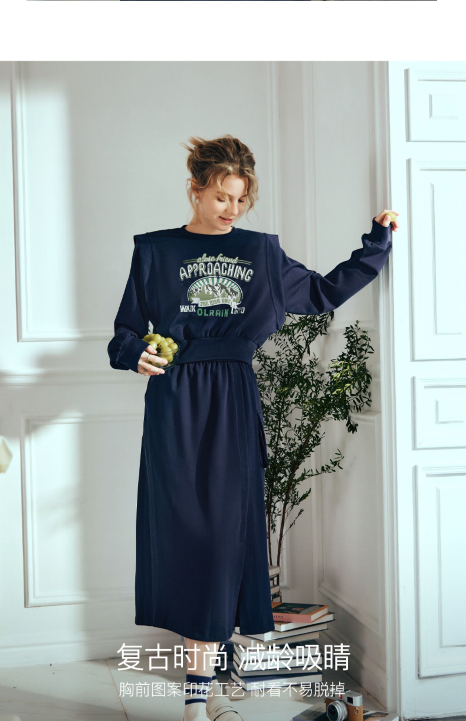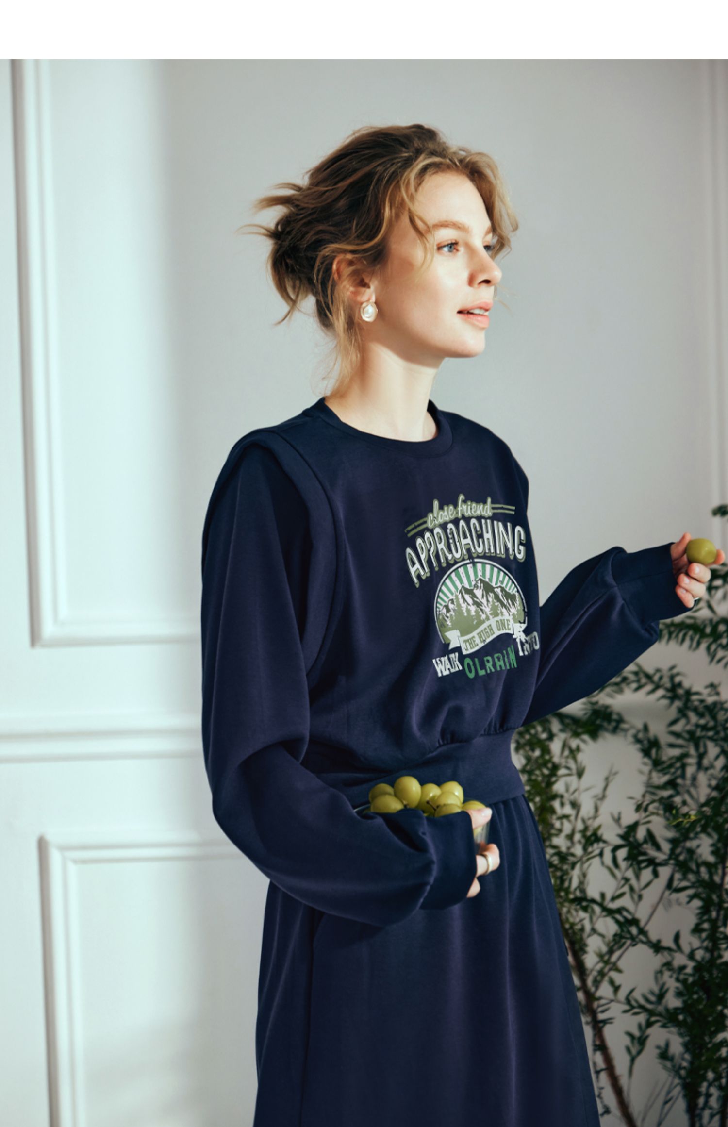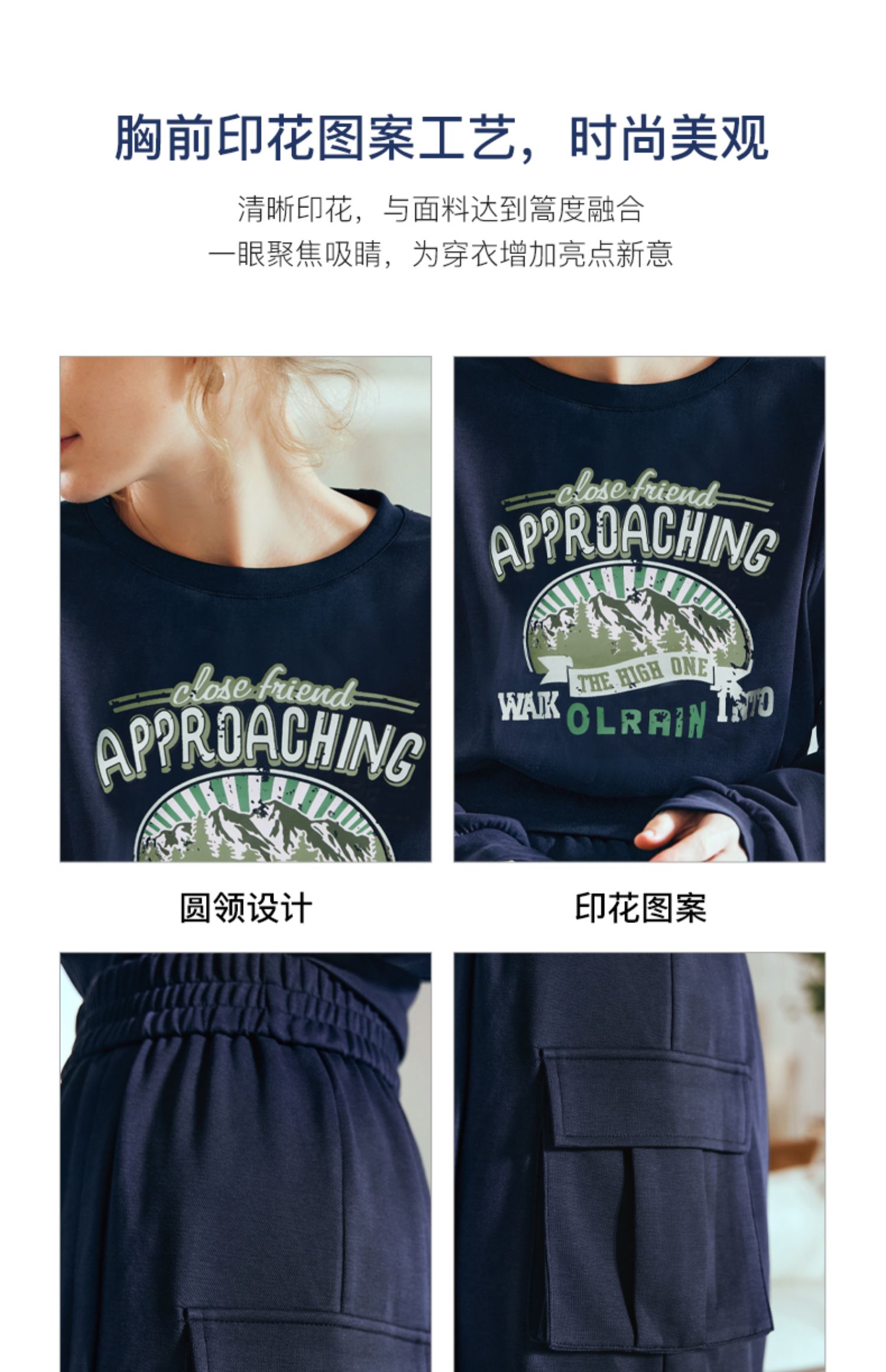 OLrain欧芮儿宝蓝色卫衣套装女早春2024年新款通勤美式印花两件套
