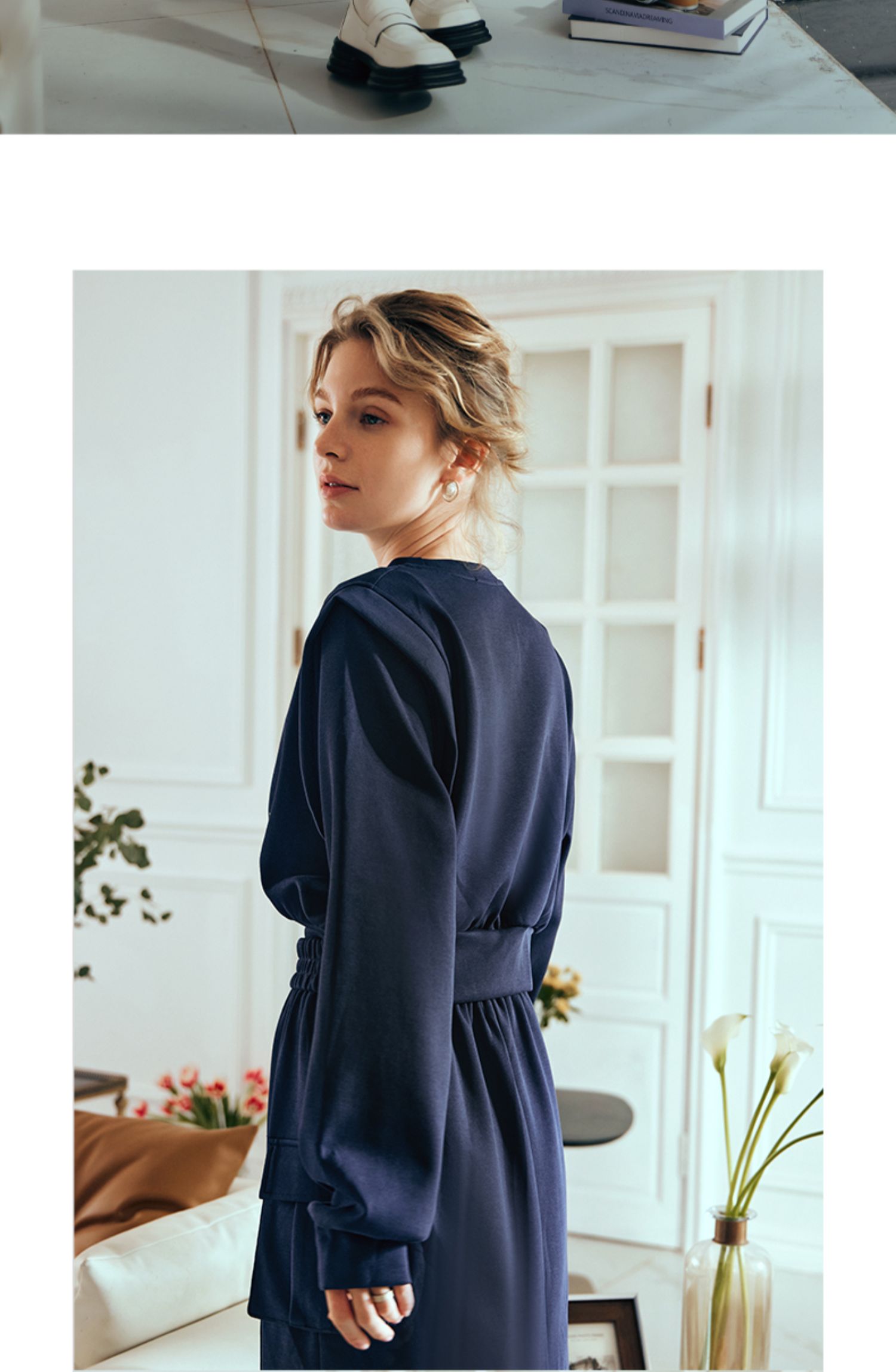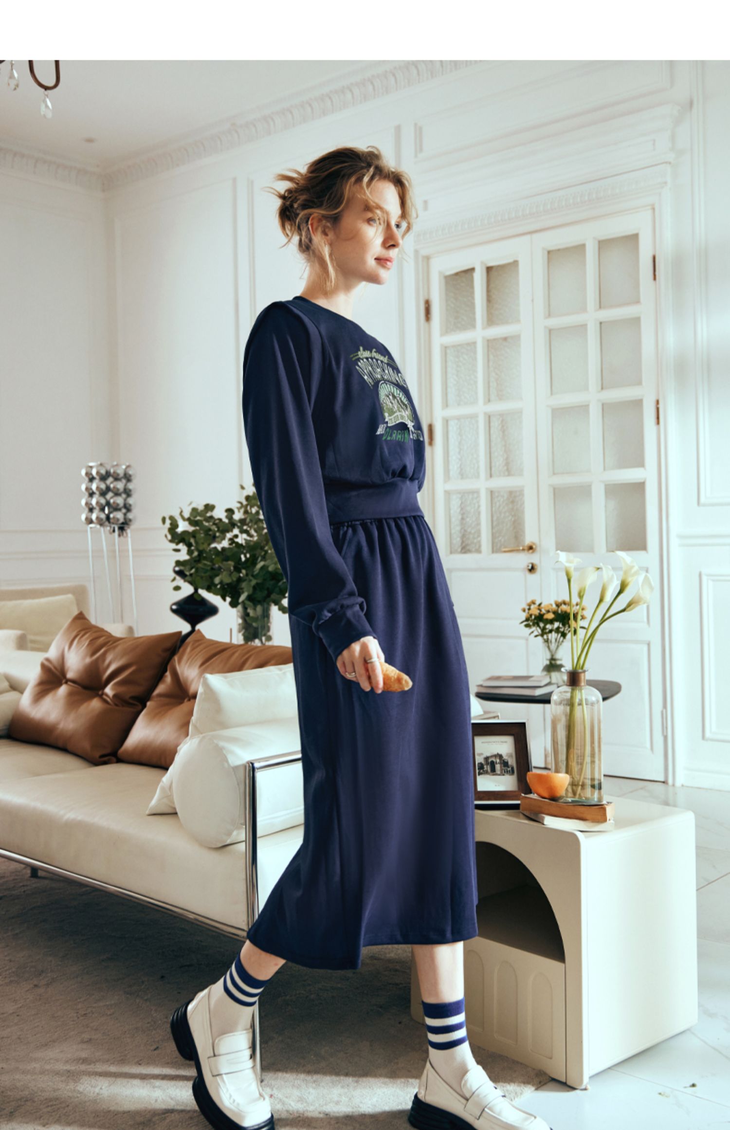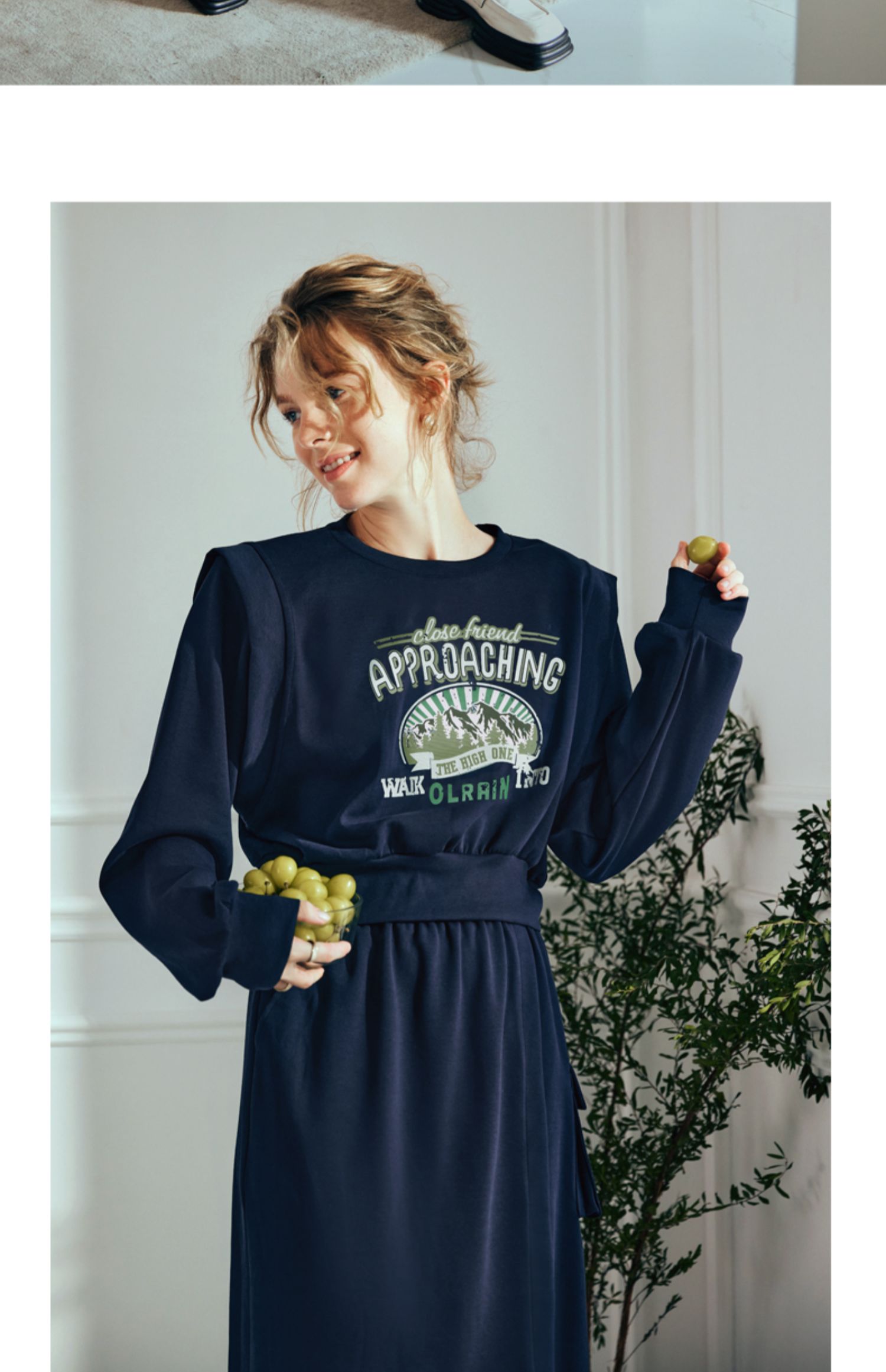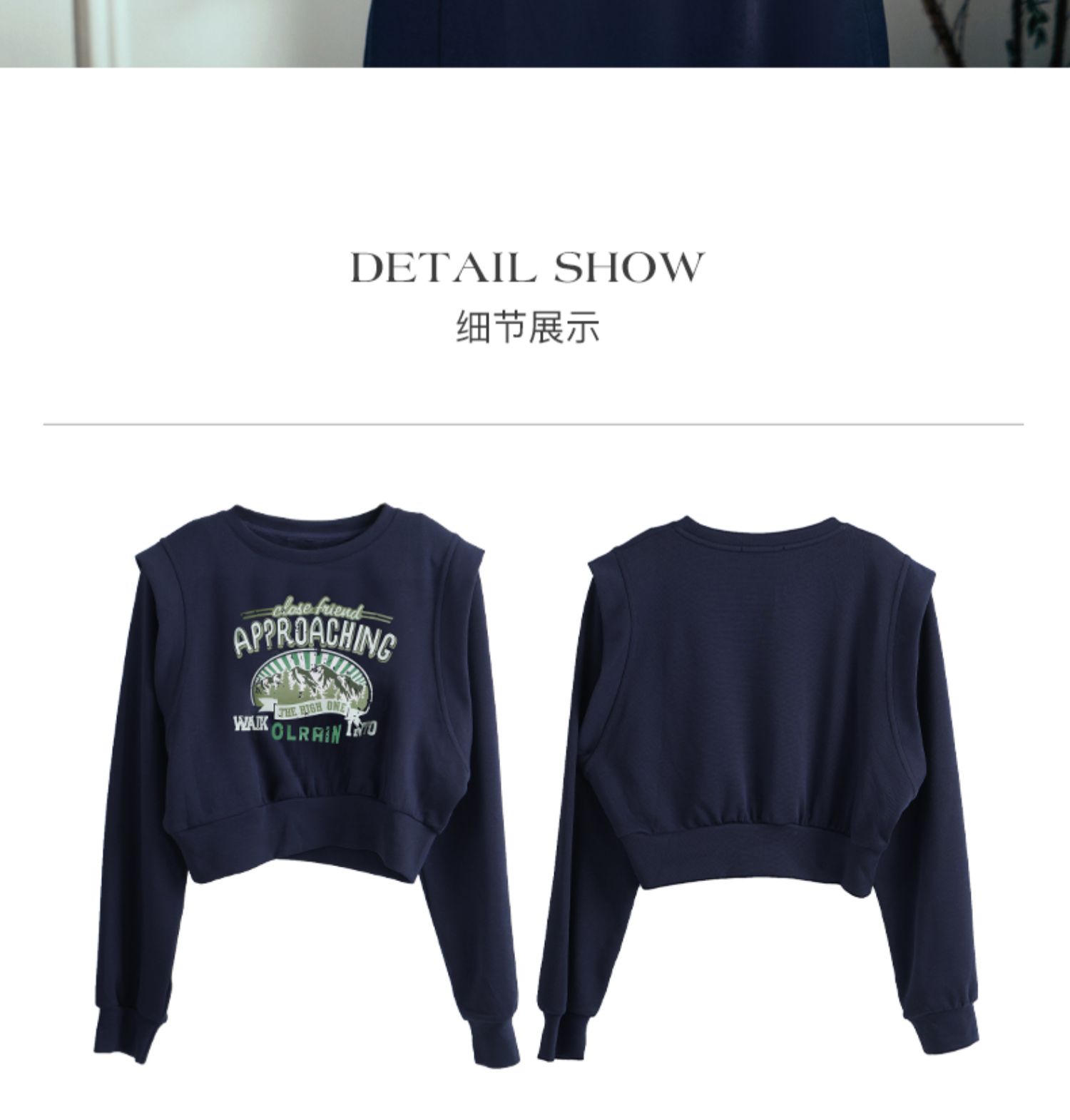 OLrain欧芮儿宝蓝色卫衣套装女早春2024年新款通勤美式印花两件套