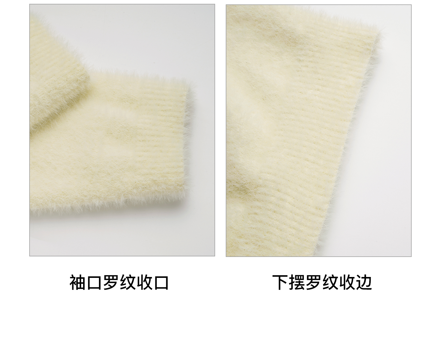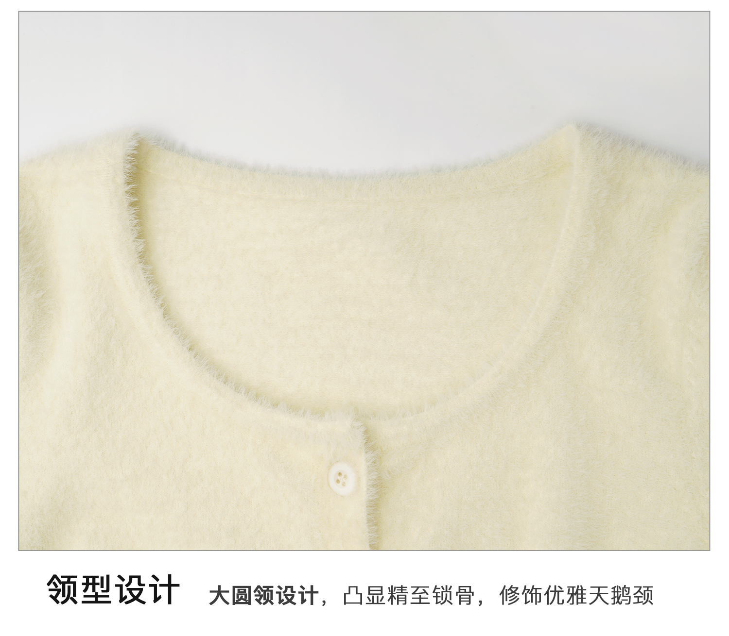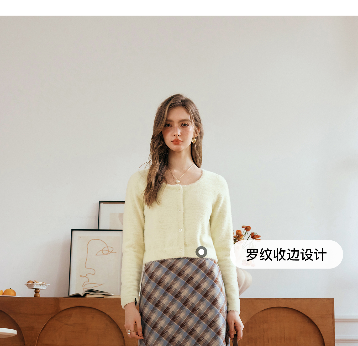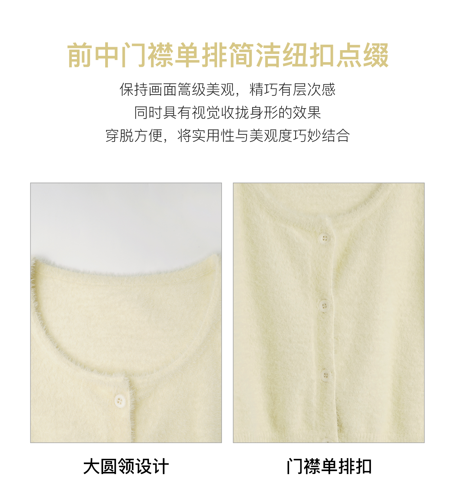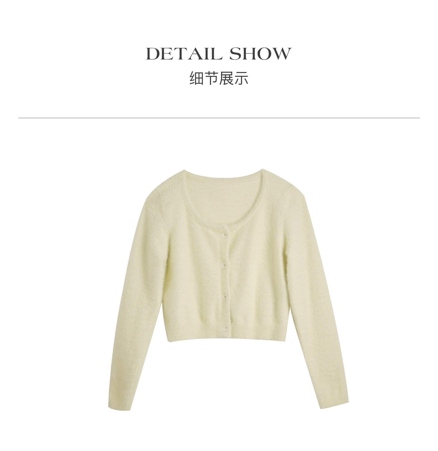 OLrain欧芮儿淡黄色针织衫女秋2024新款时尚简约圆领开衫短款上衣