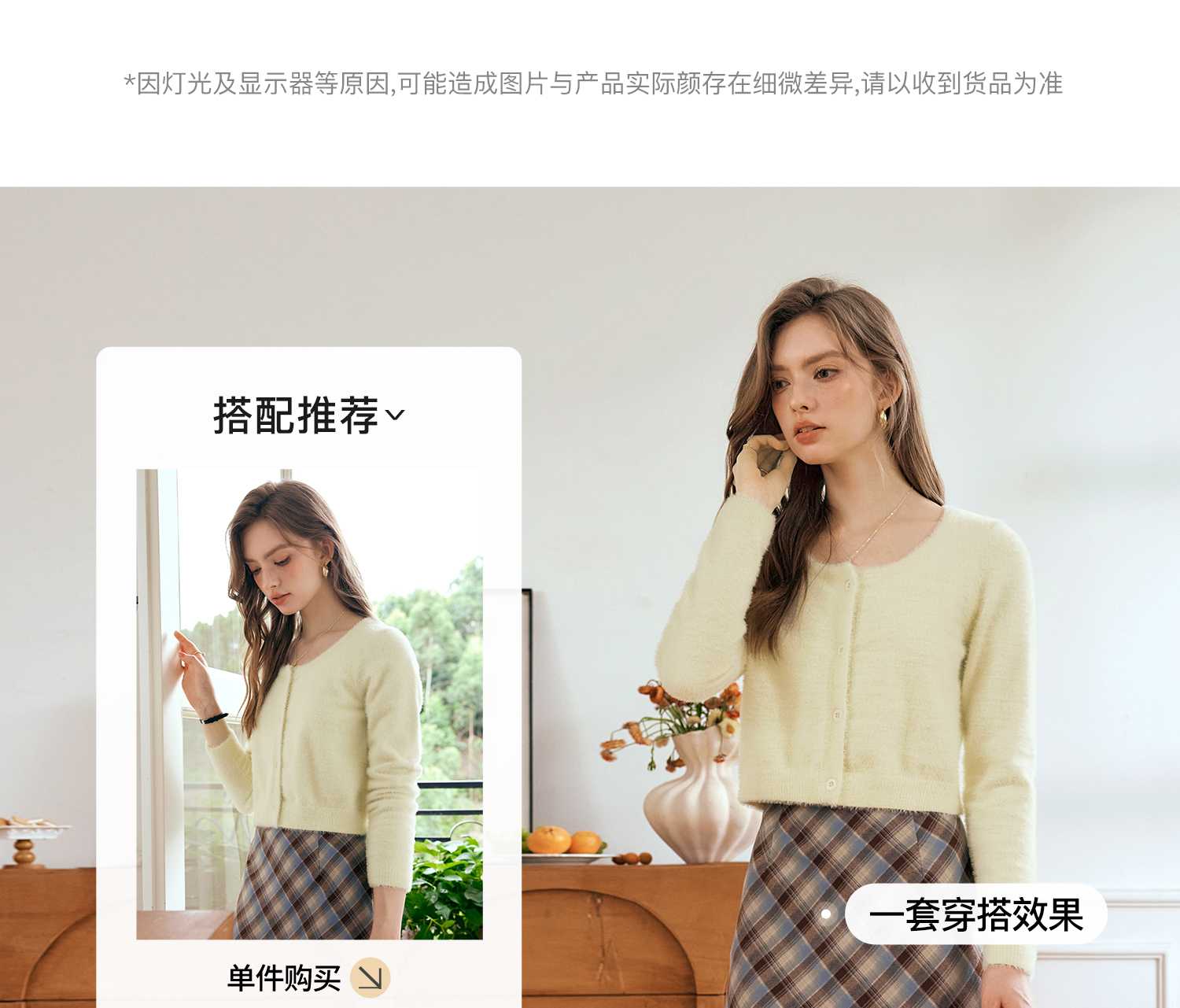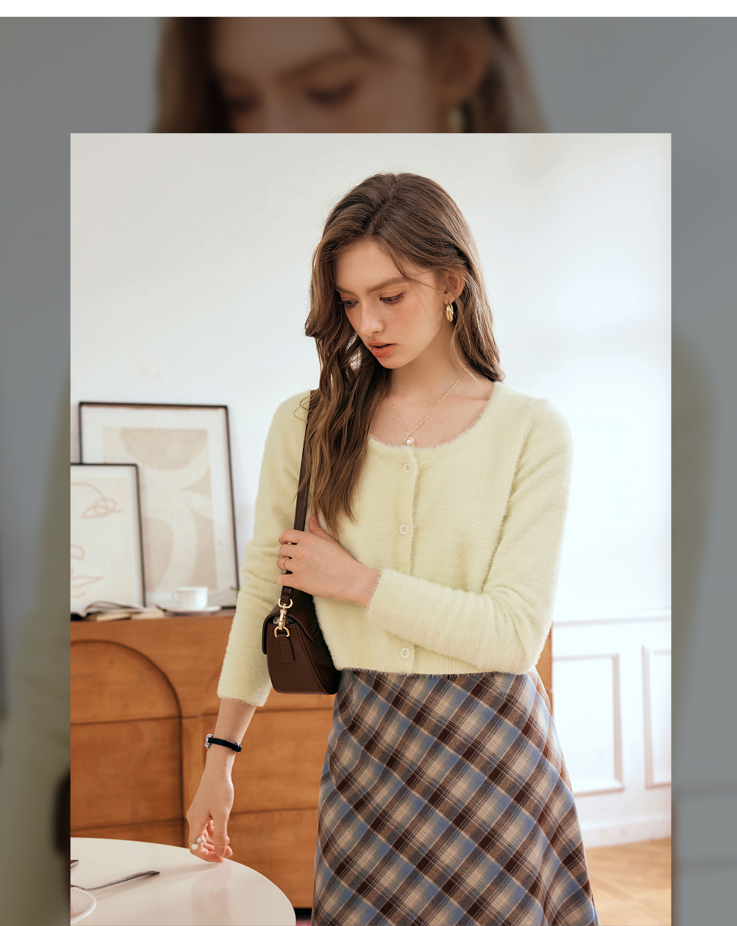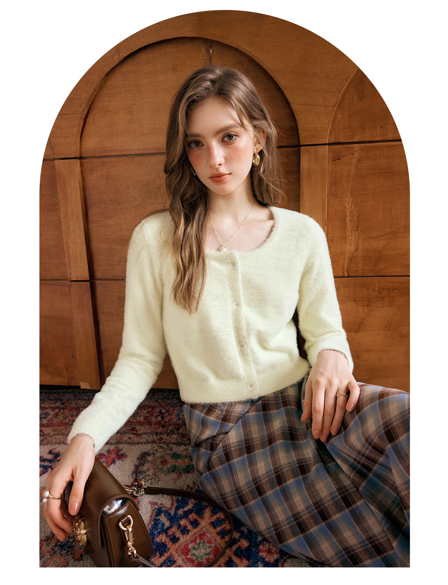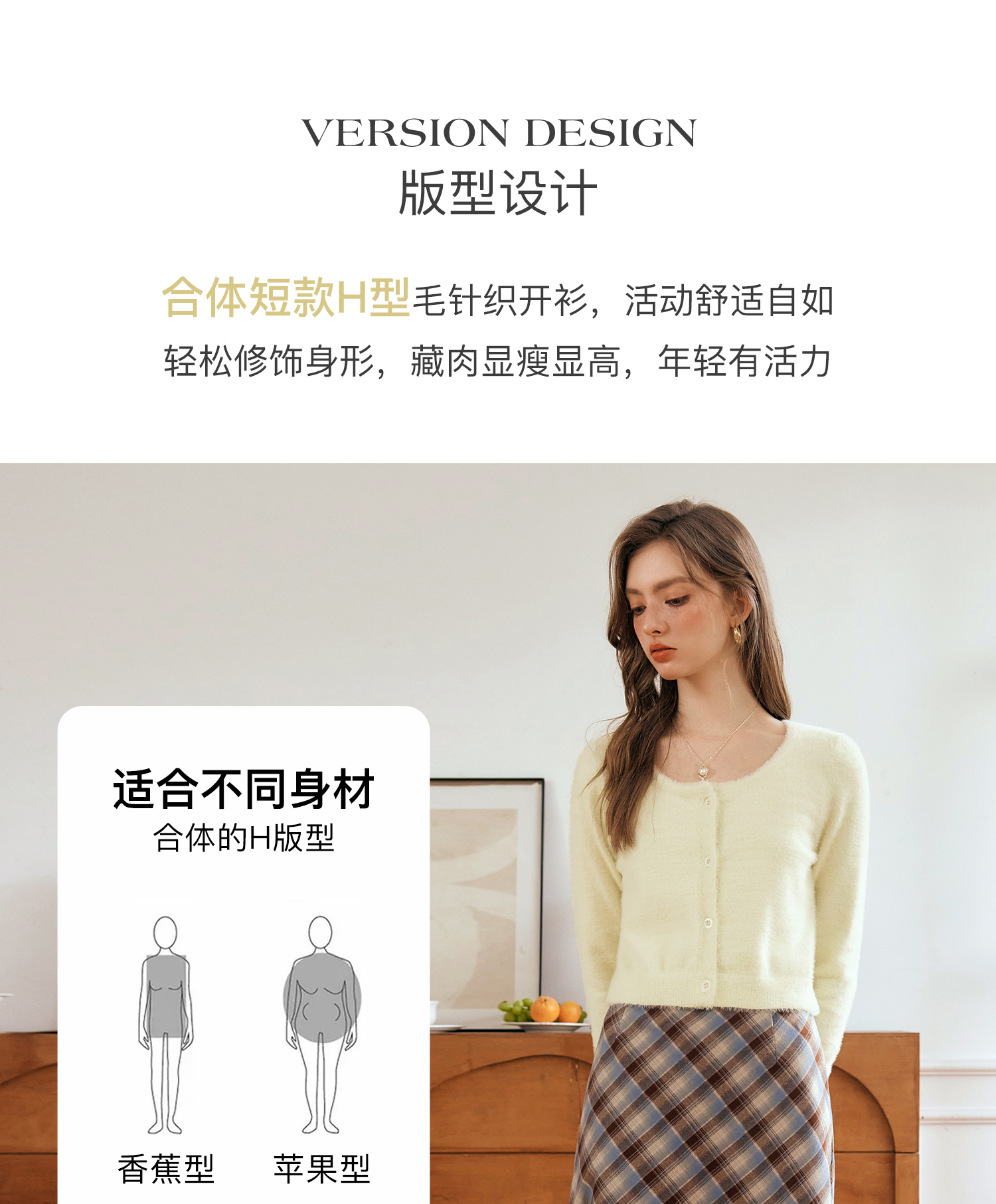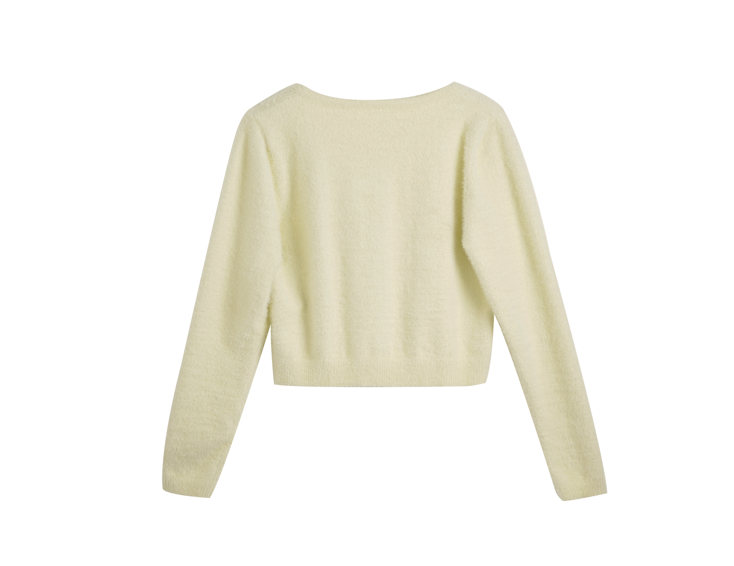OLrain欧芮儿淡黄色针织衫女秋2024新款时尚简约圆领开衫短款上衣