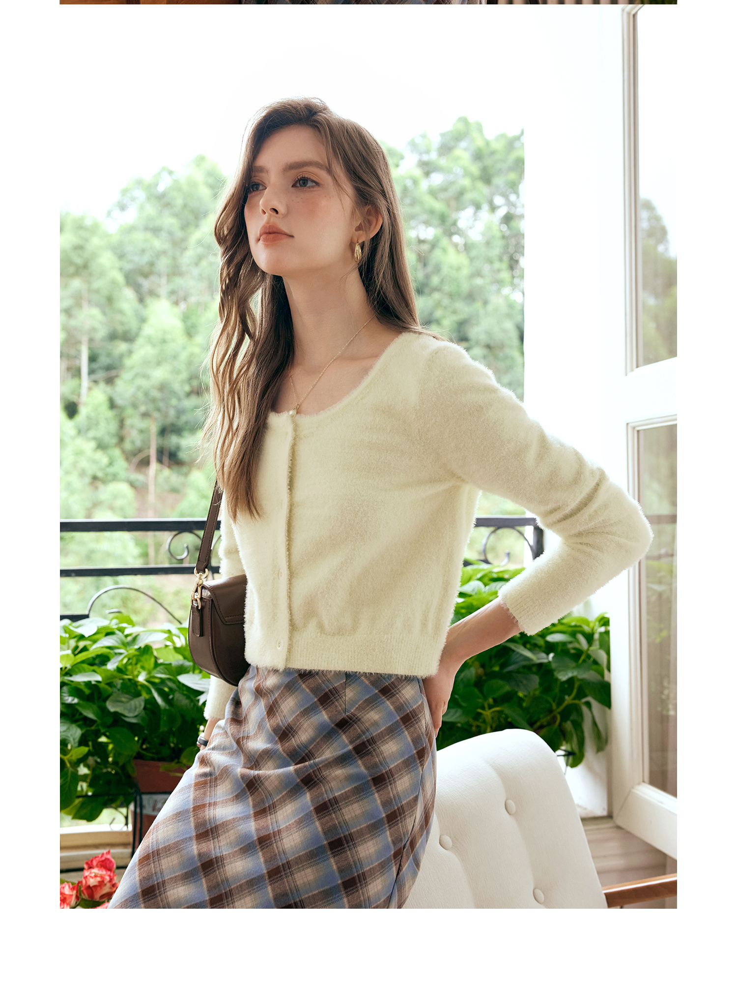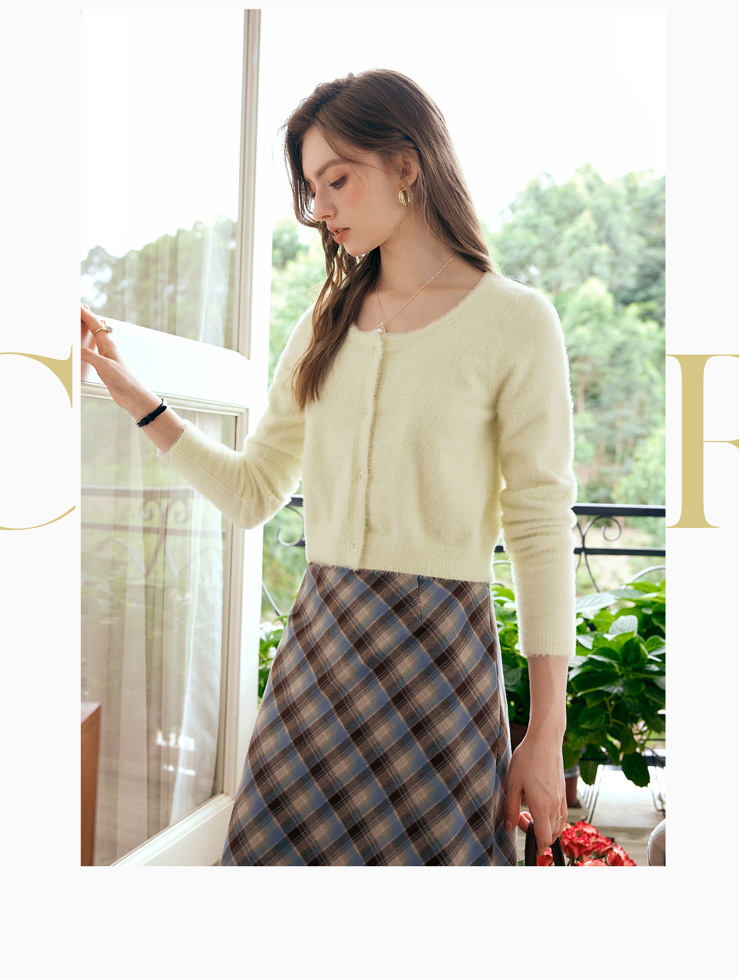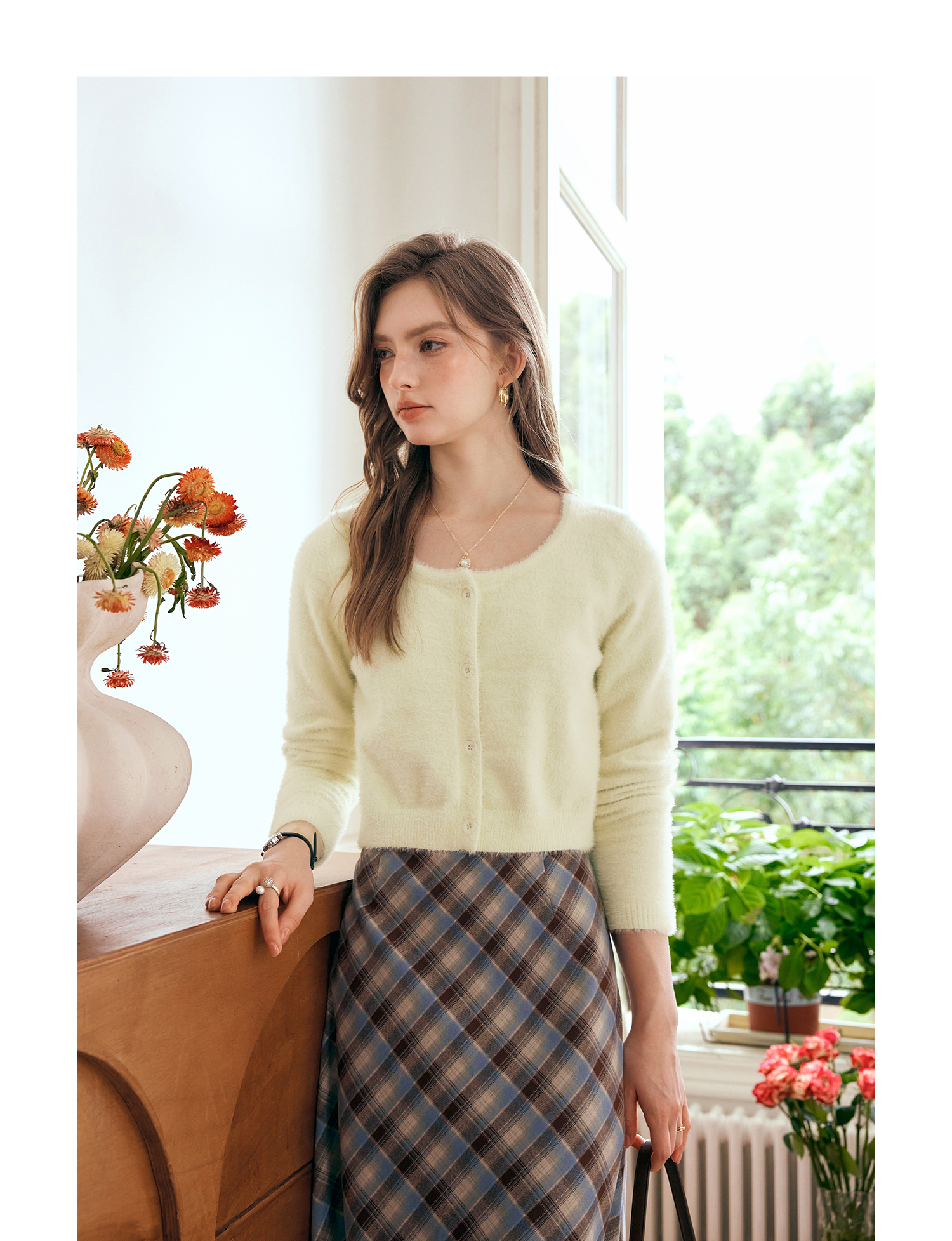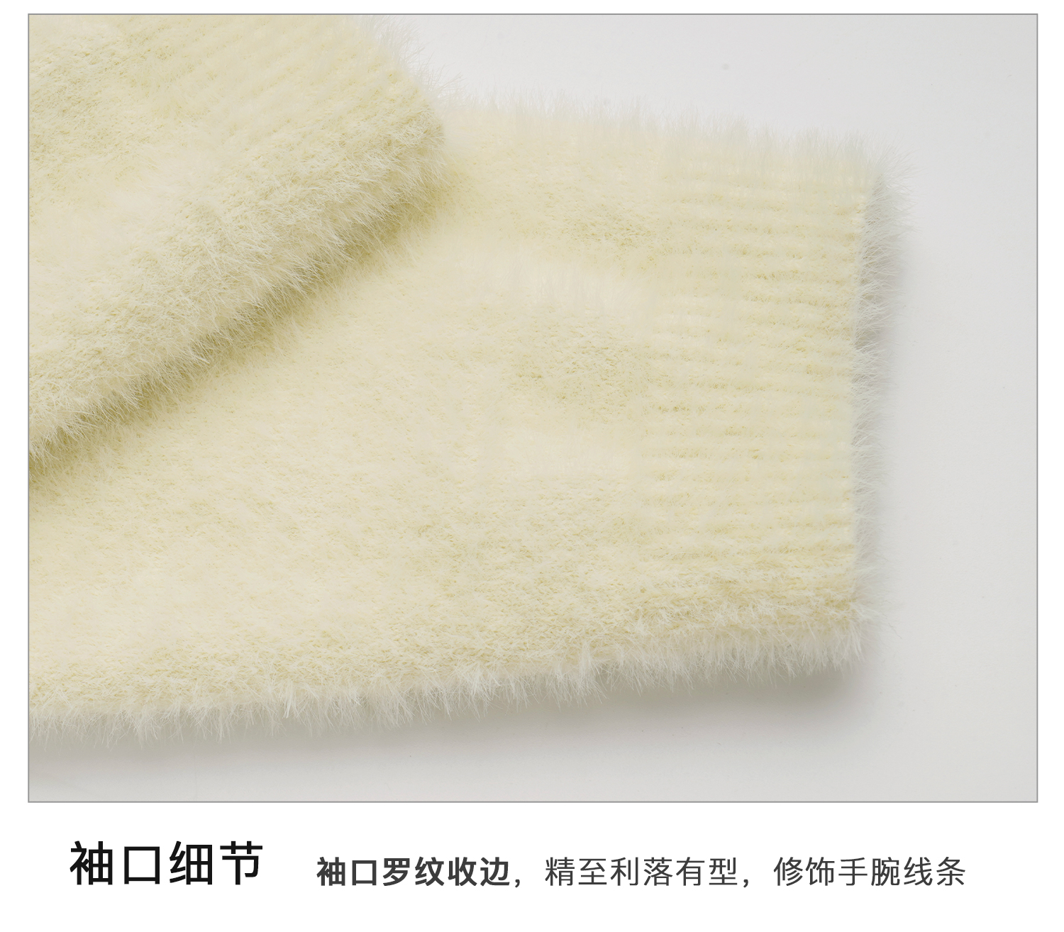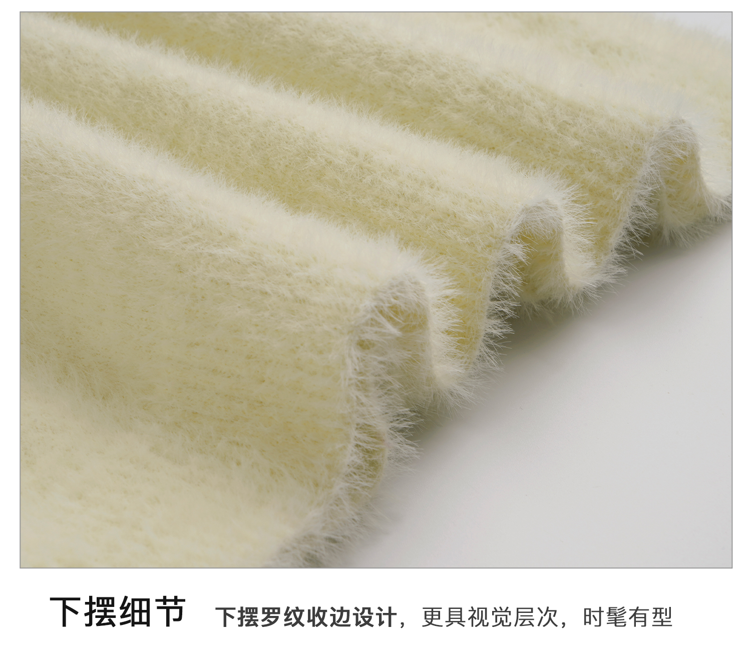 OLrain欧芮儿淡黄色针织衫女秋2024新款时尚简约圆领开衫短款上衣