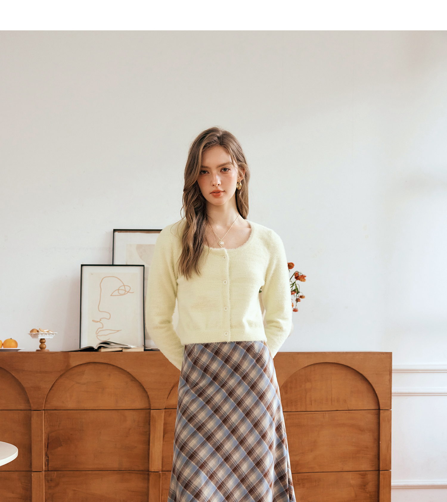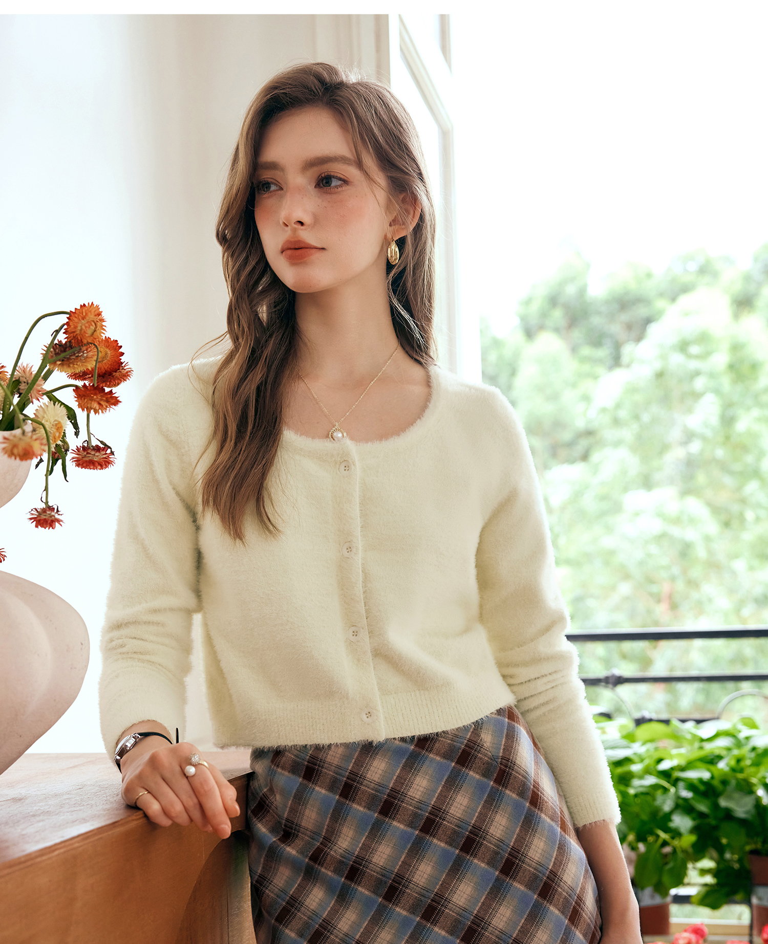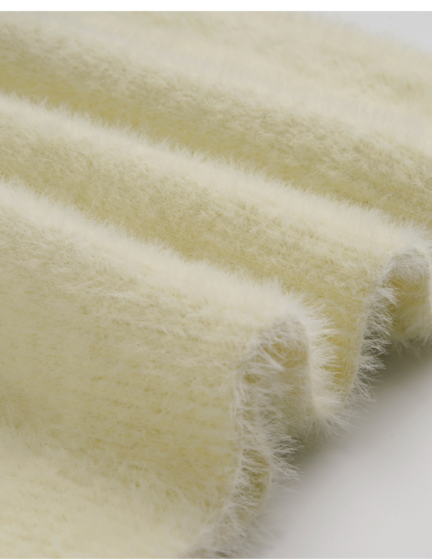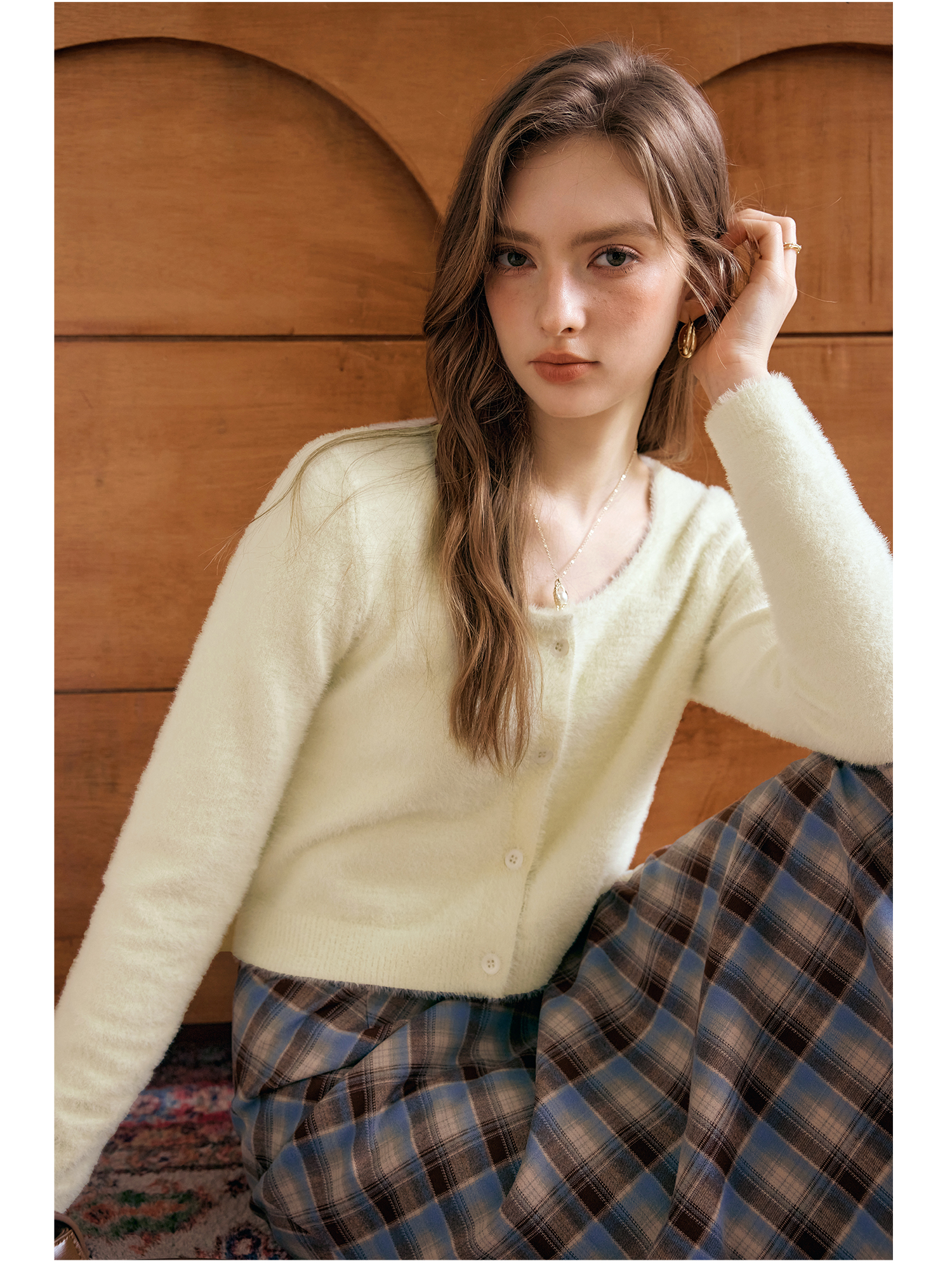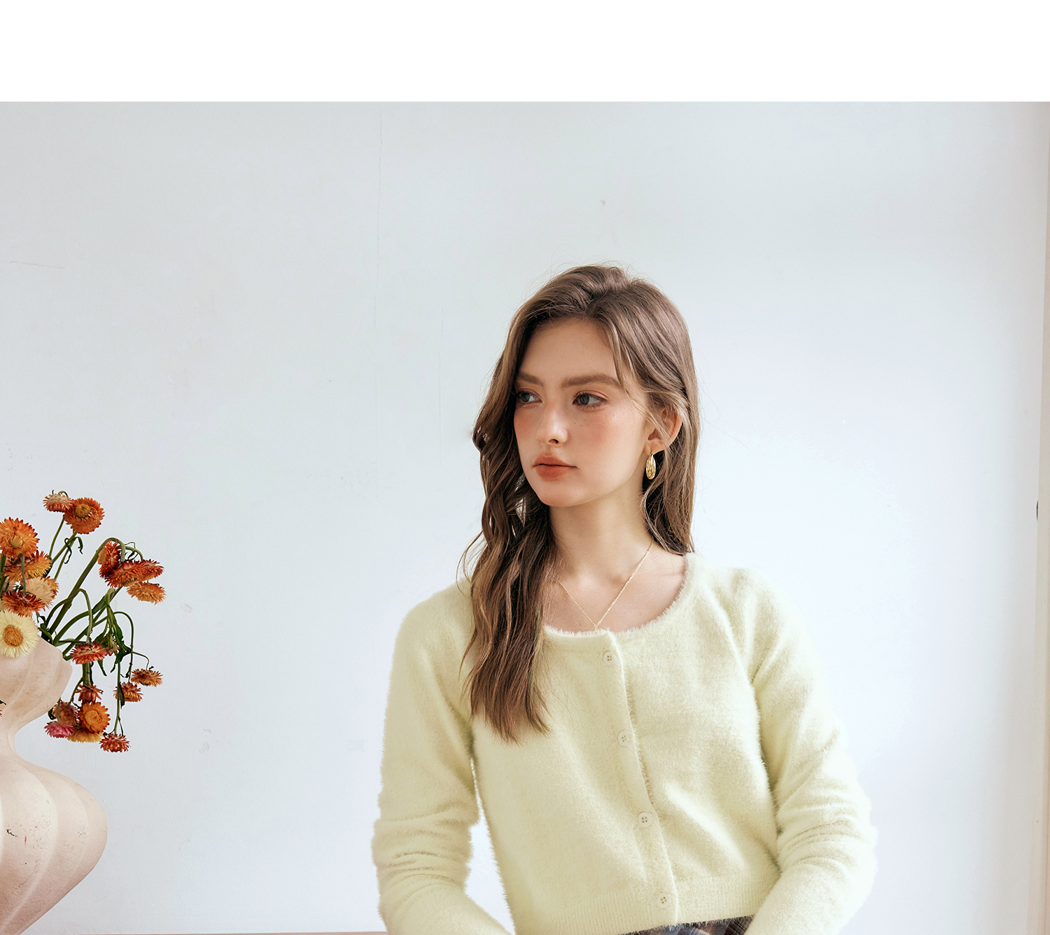 OLrain欧芮儿淡黄色针织衫女秋2024新款时尚简约圆领开衫短款上衣