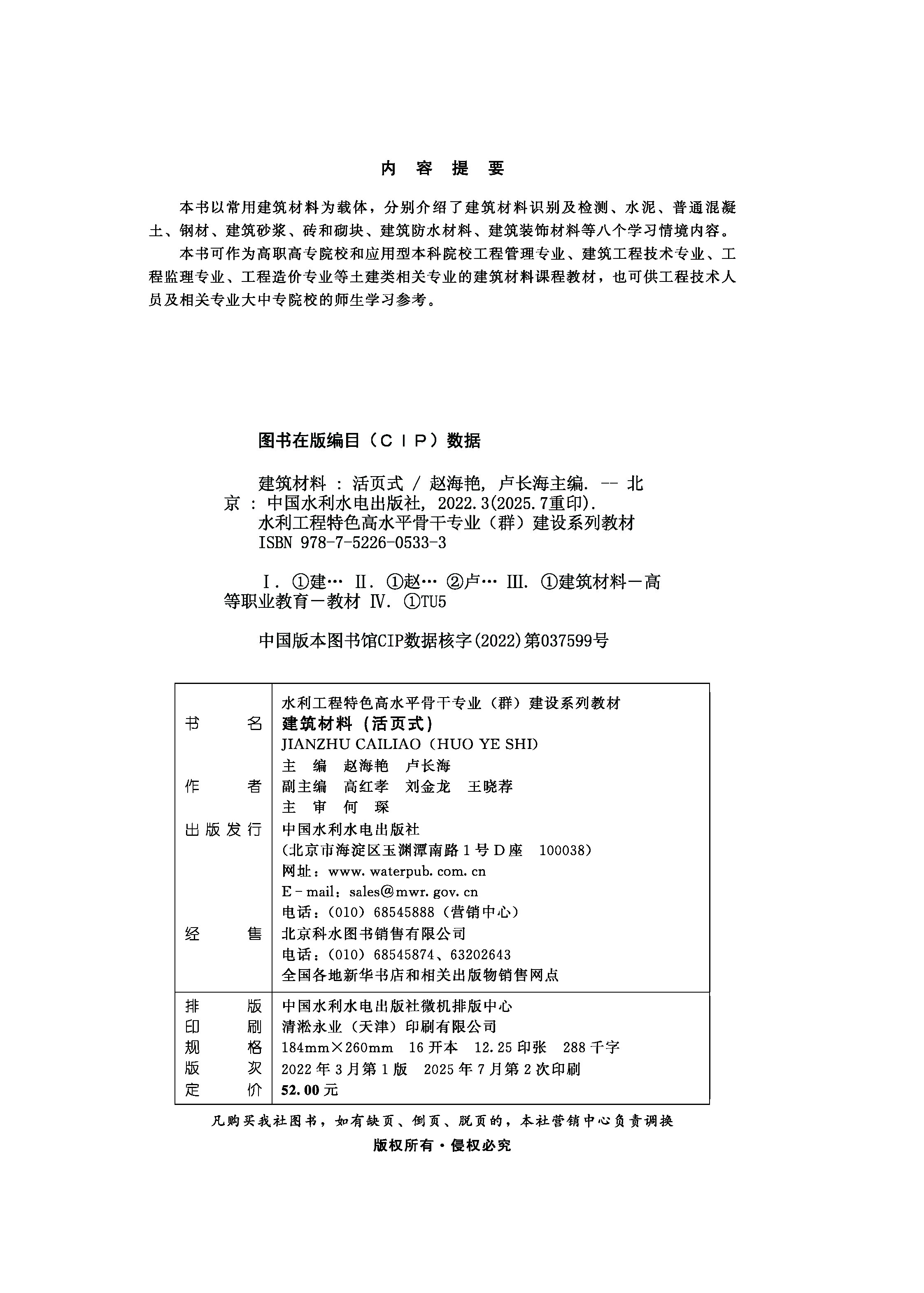 建筑材料(活页式)(水利工程特色高水平骨干专业(群)建设系列教材)