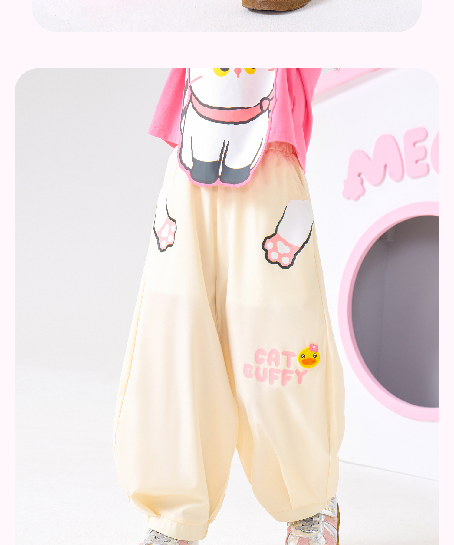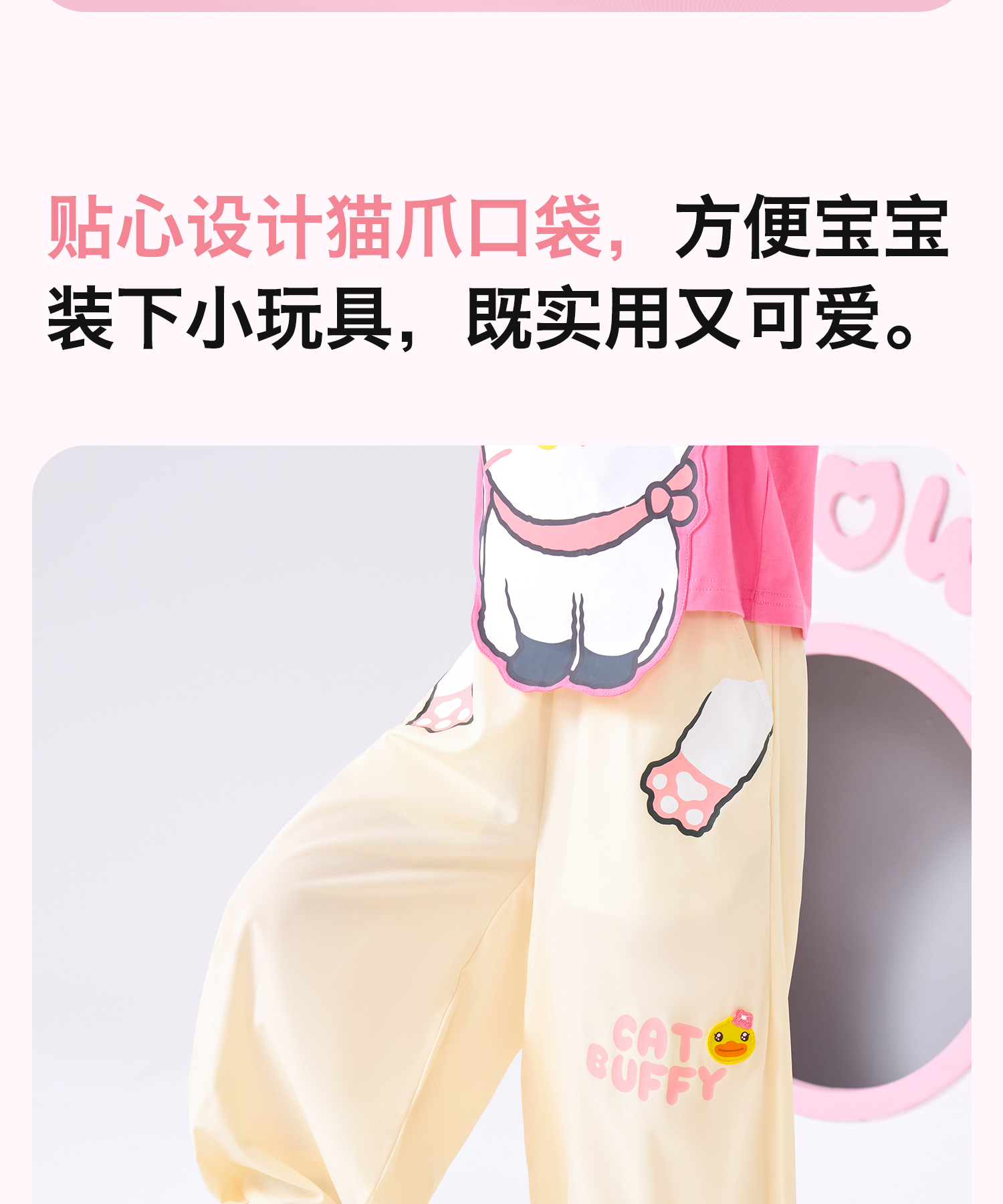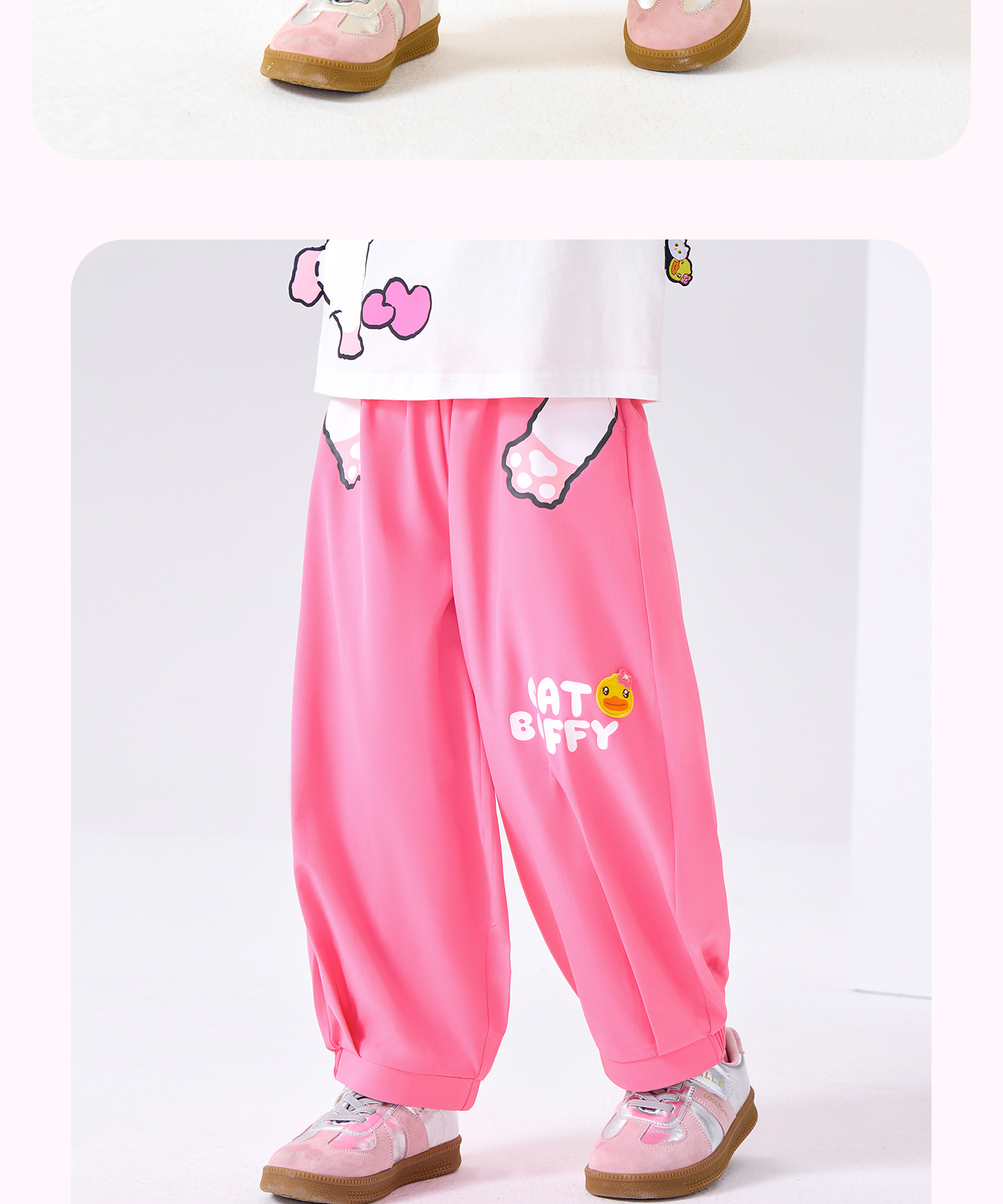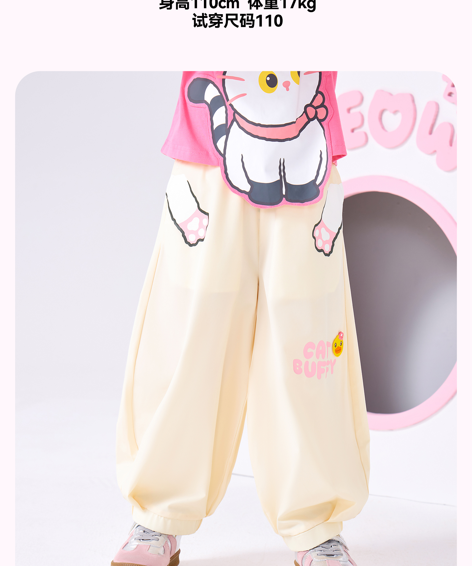 bduck小黄鸭童装夏季女童裤子运动裤儿童夏装防蚊裤猫咪印花105-150 FF2657001