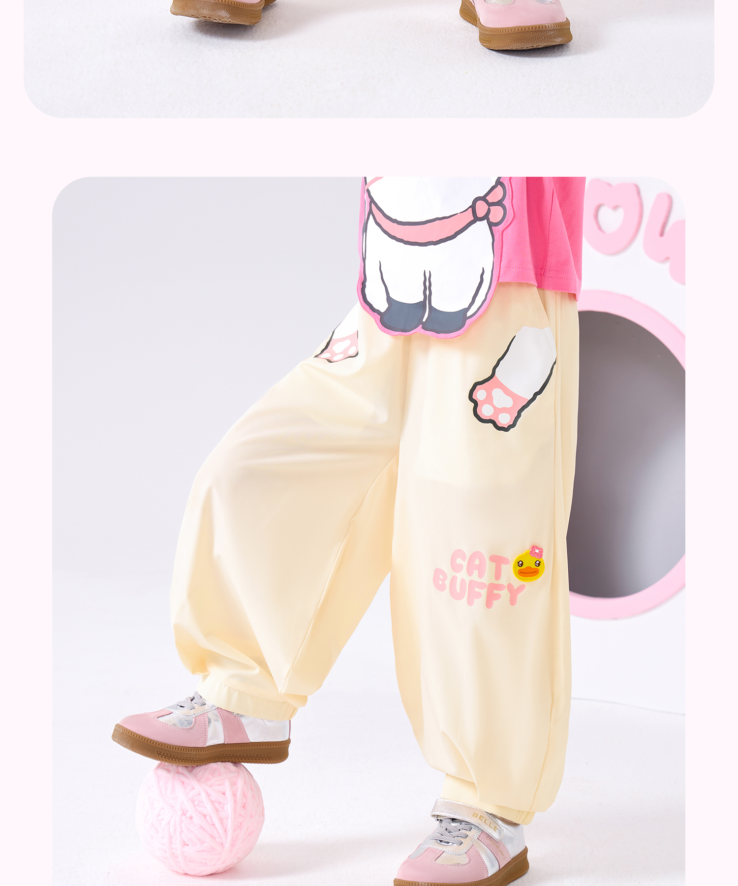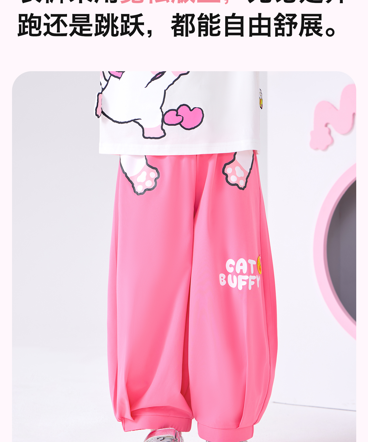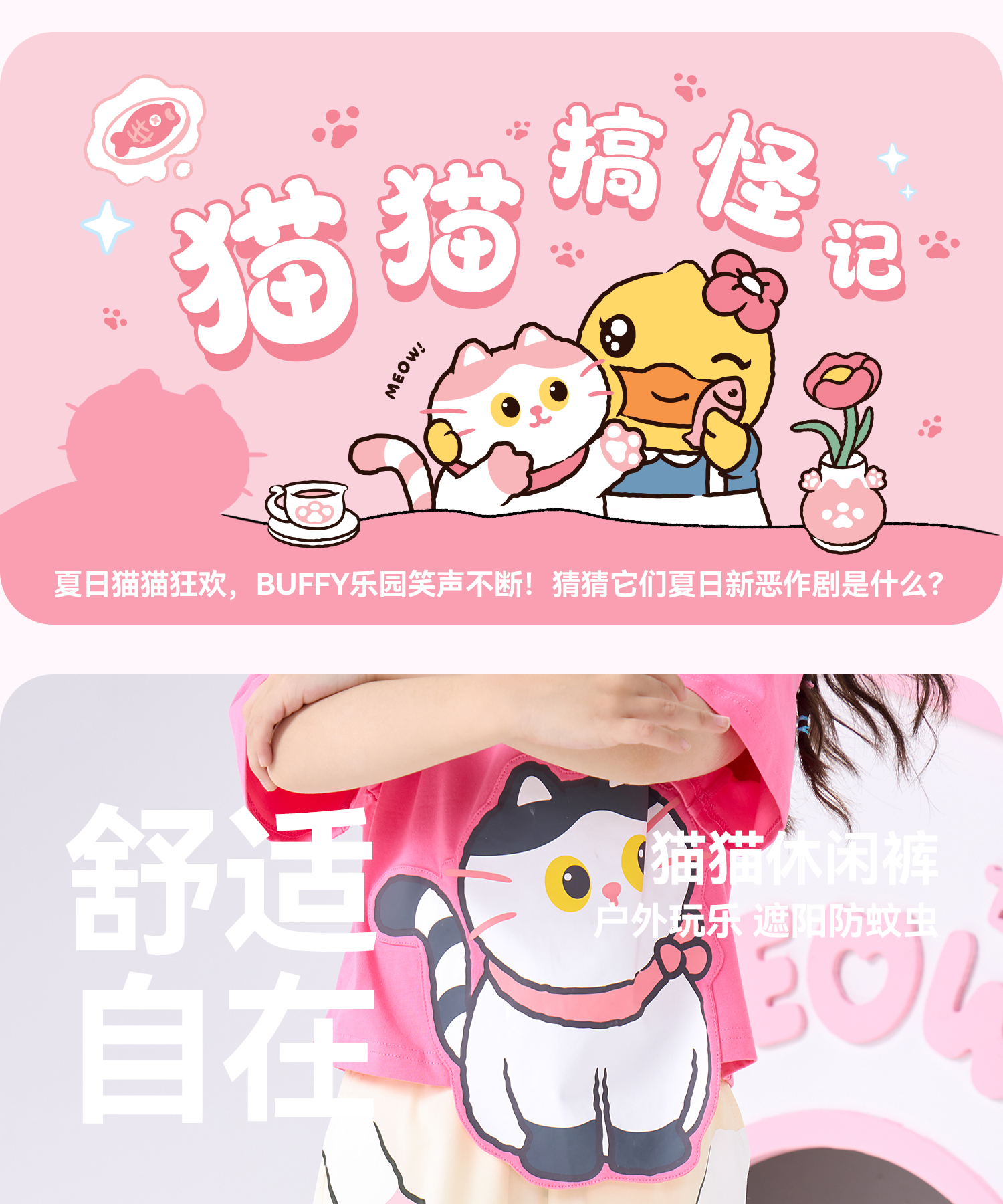 bduck小黄鸭童装夏季女童裤子运动裤儿童夏装防蚊裤猫咪印花105-150 FF2657001