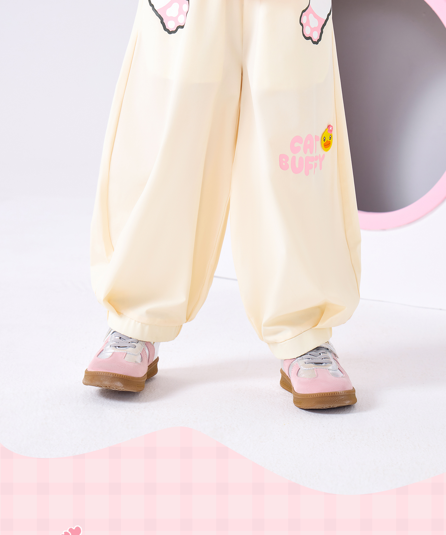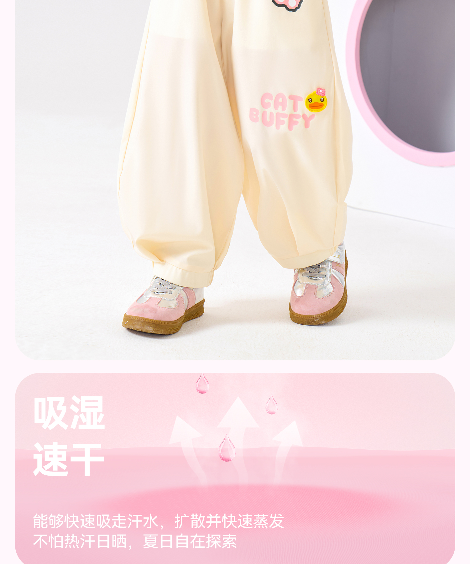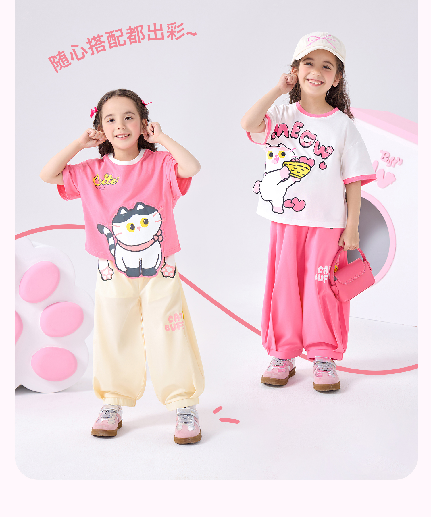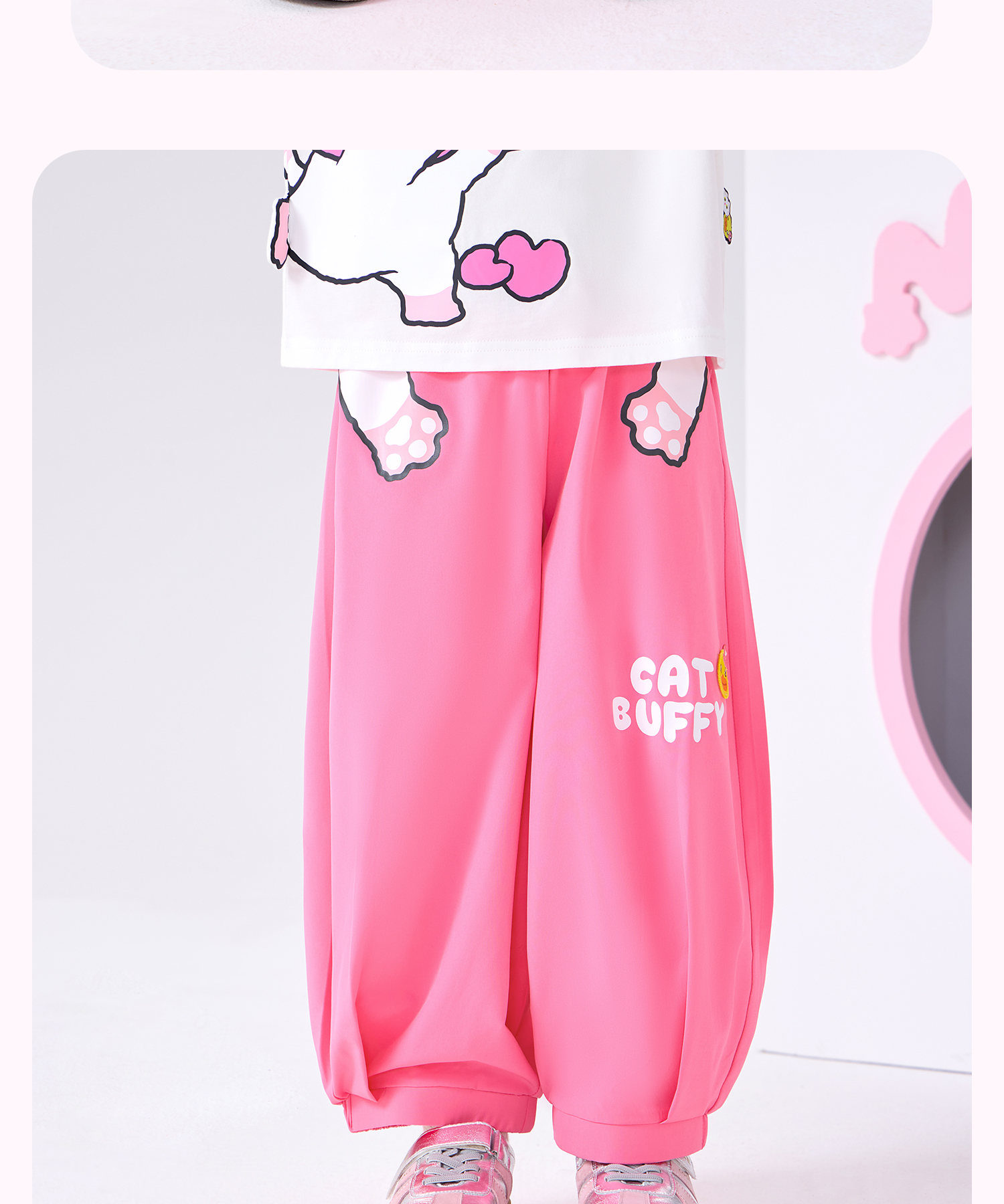 bduck小黄鸭童装夏季女童裤子运动裤儿童夏装防蚊裤猫咪印花105-150 FF2657001
