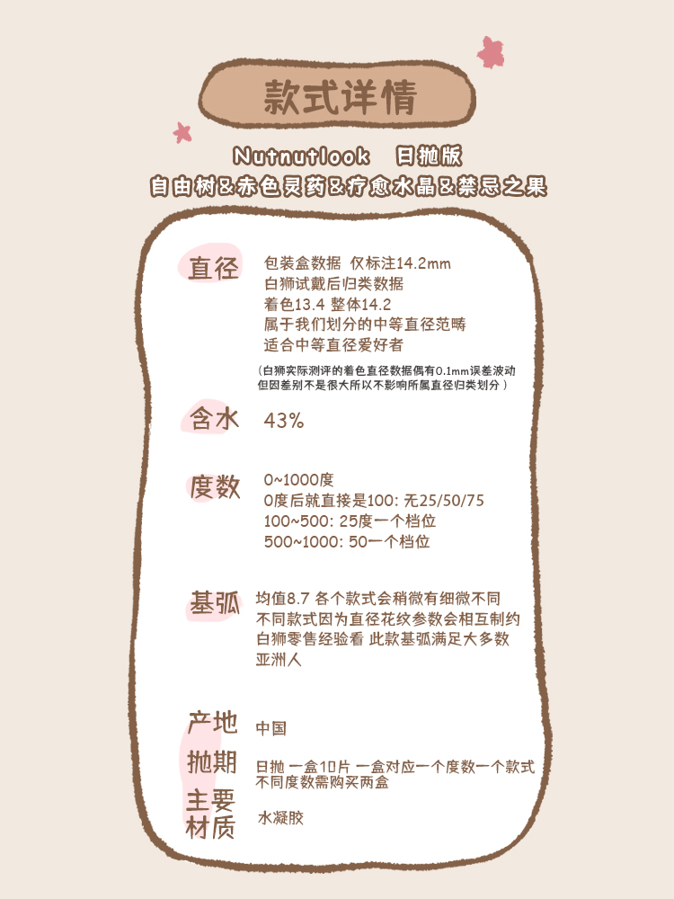 坚果力日抛美瞳· 自由树&禁忌之果&疗愈水晶&赤色灵药 14.2mm中等直径着色 日抛 一盒十片装