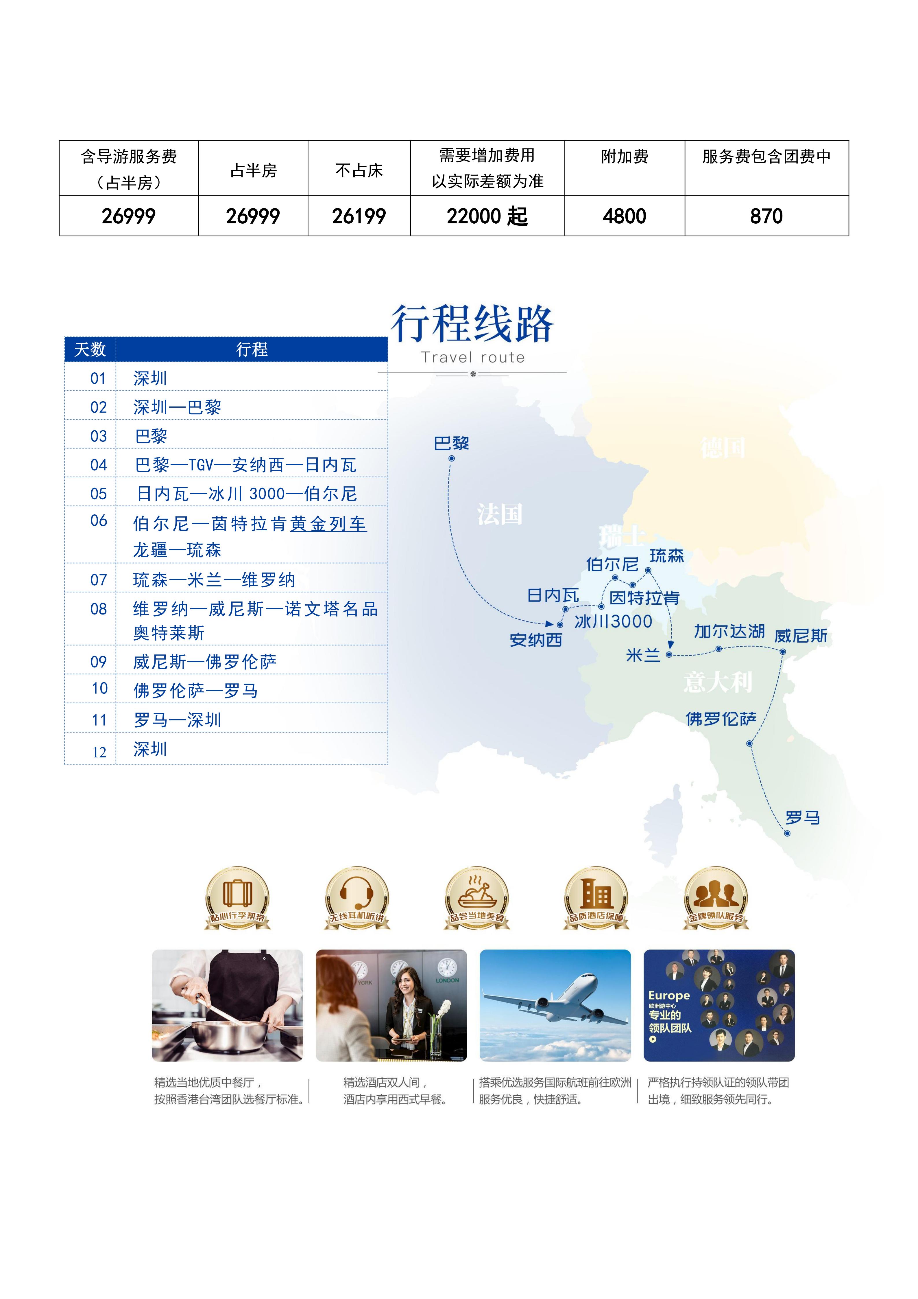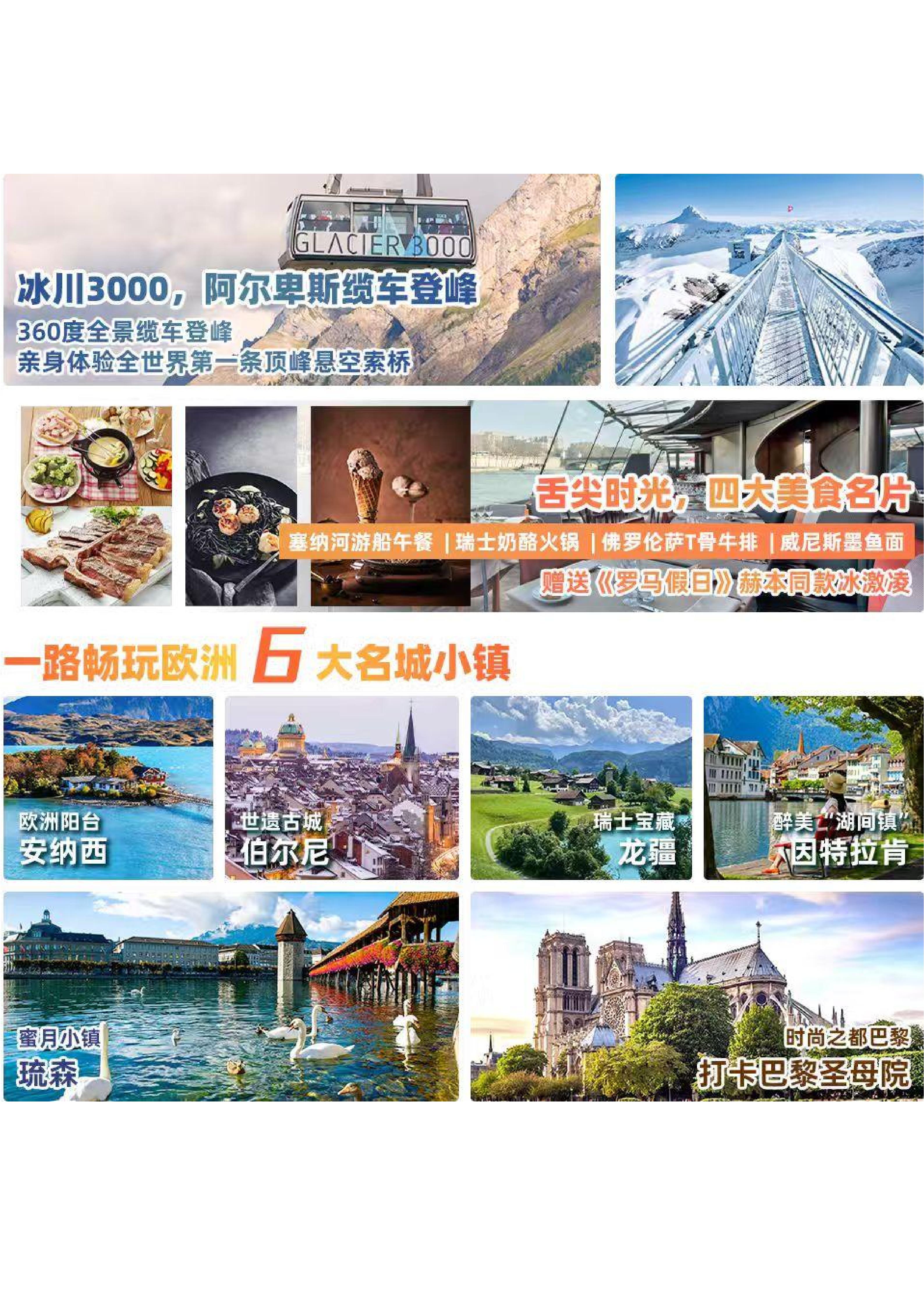 【春节、寒假】<西欧●法国+瑞士+意大利3国12天>TGV高速+黄金列车+黄金大运河游船+塞纳河游船+阿尔卑斯冰川3000+伯尔尼+琉森+卢浮宫+凡尔赛宫+威尼斯+佛罗伦萨+罗马+米兰大教堂+深圳往返