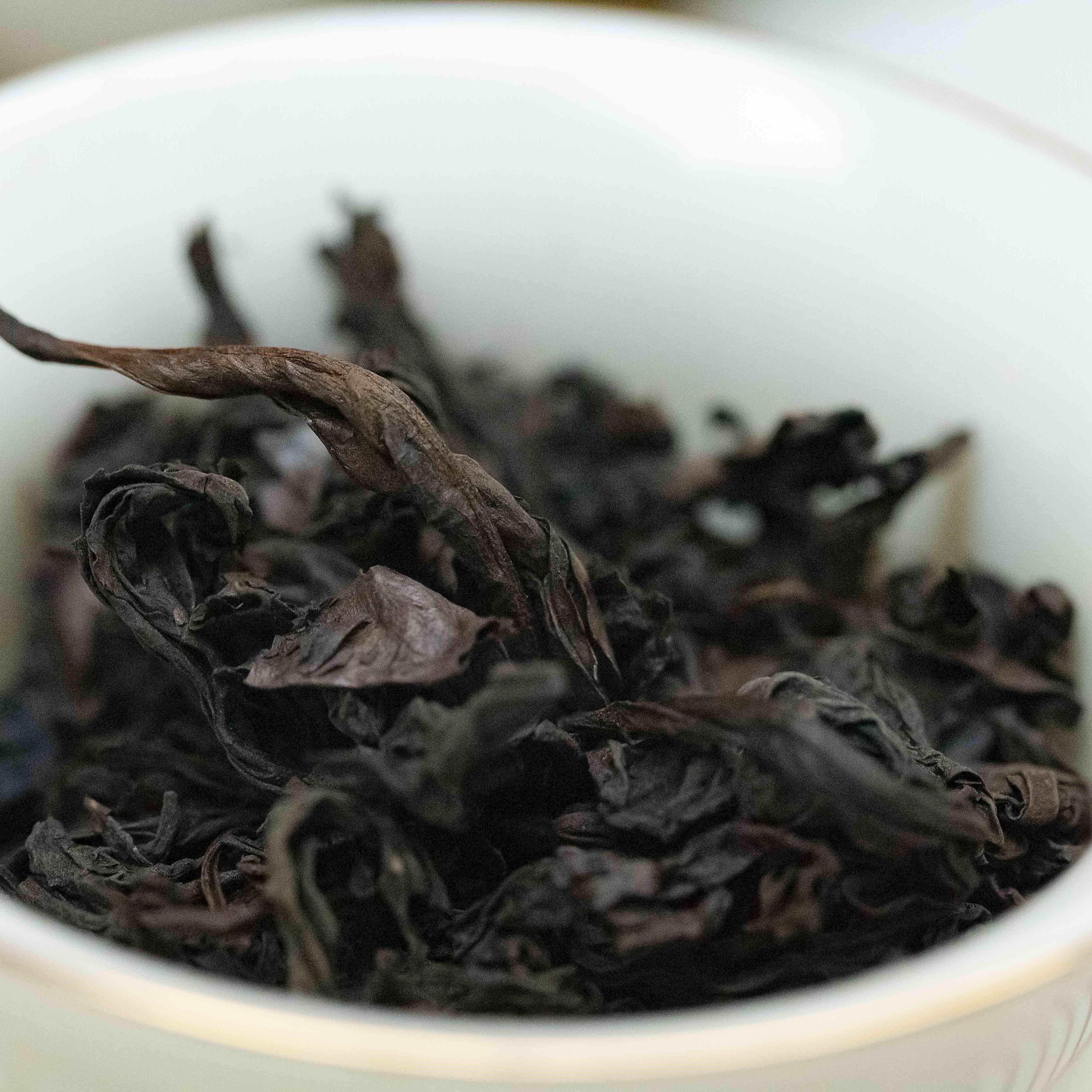一,干茶:条索紧实,色泽如深褐色的琥珀,外表不鲜嫩,但香气愈发内敛