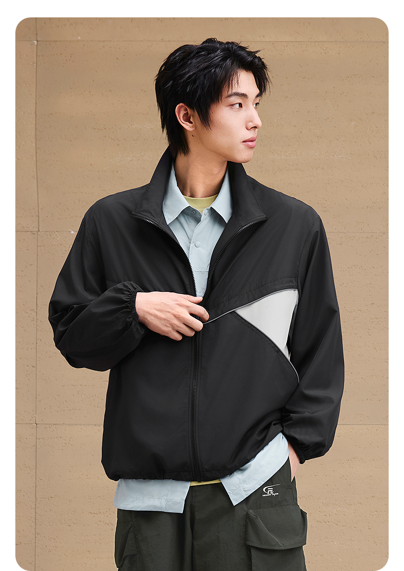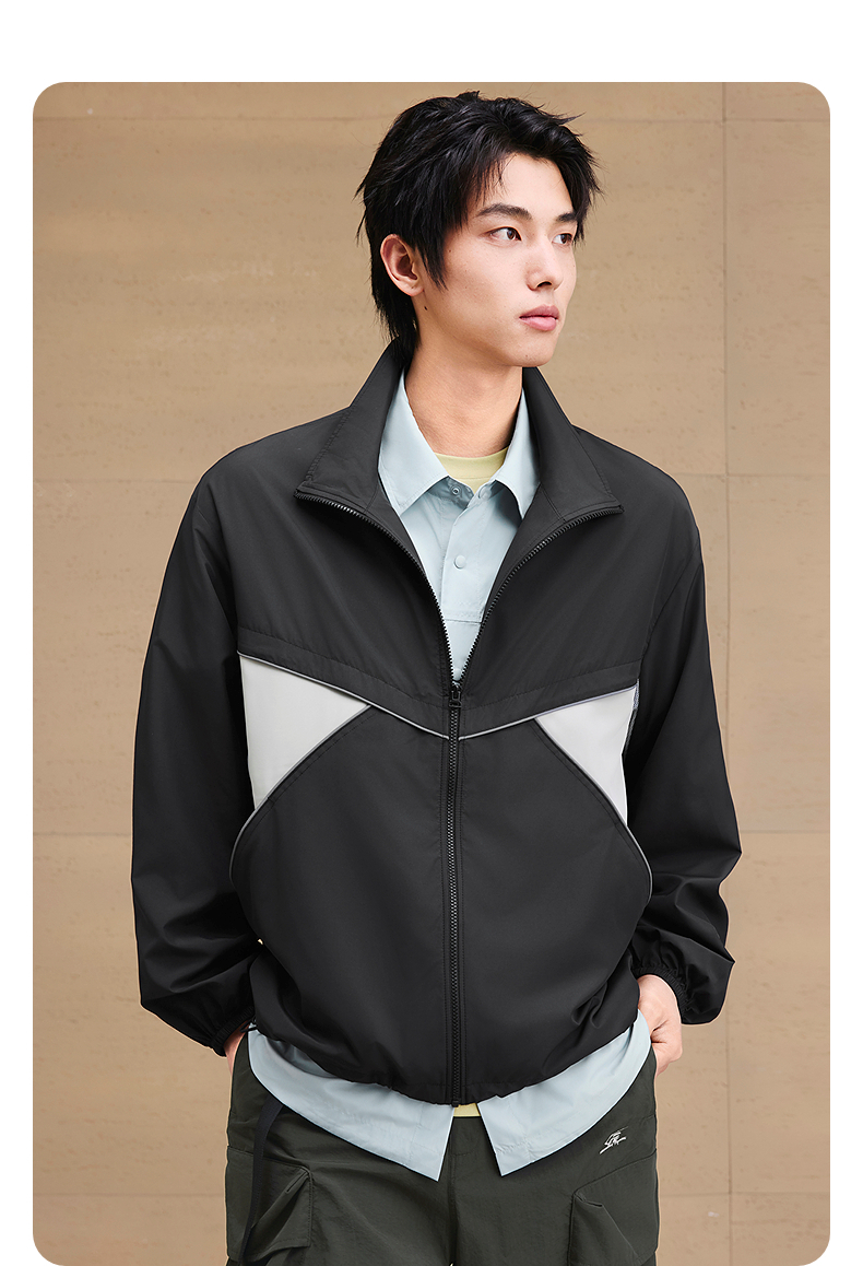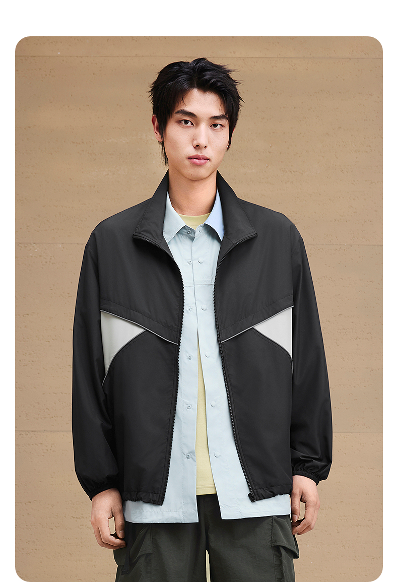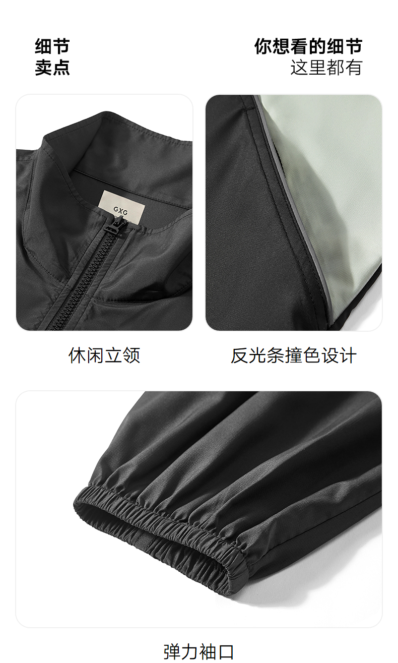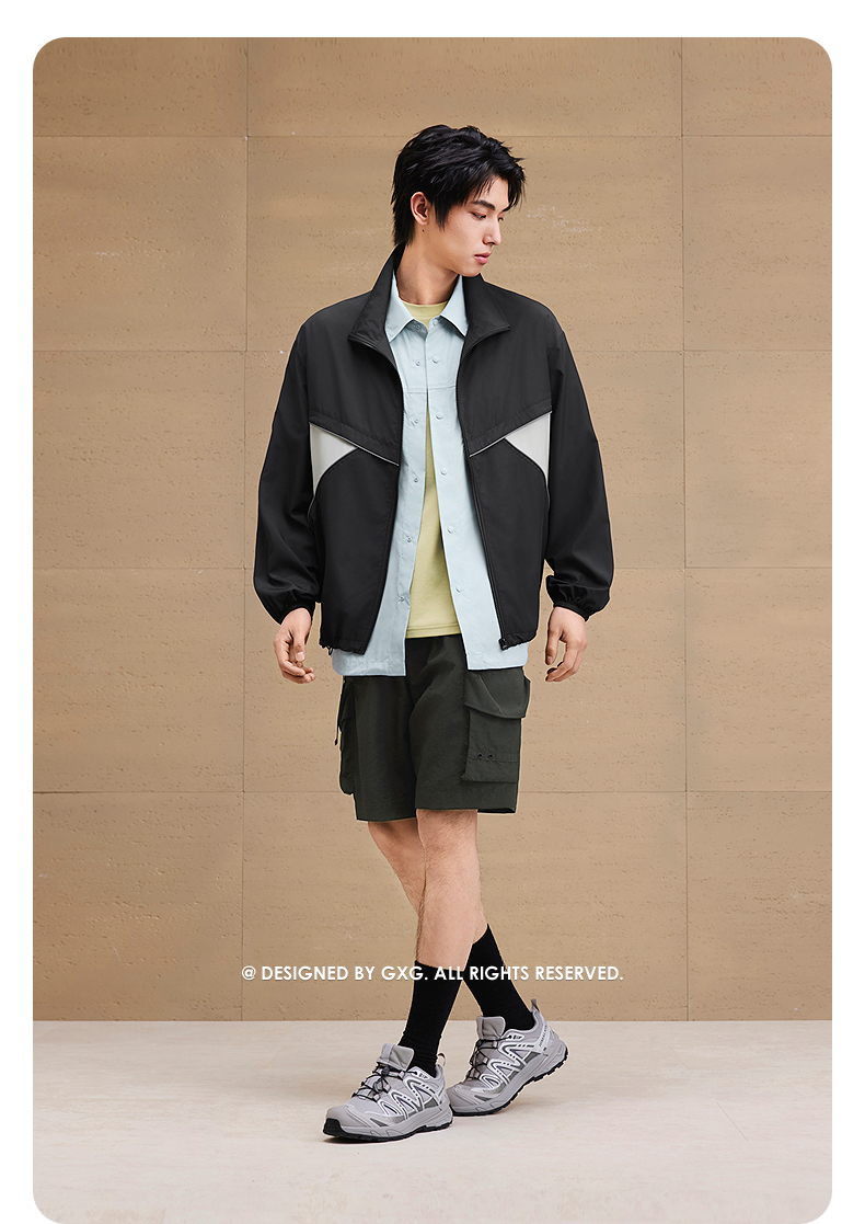 【防晒凉感】GXG男装反光条骑行撞色防晒服立领夹克外套25夏热卖*