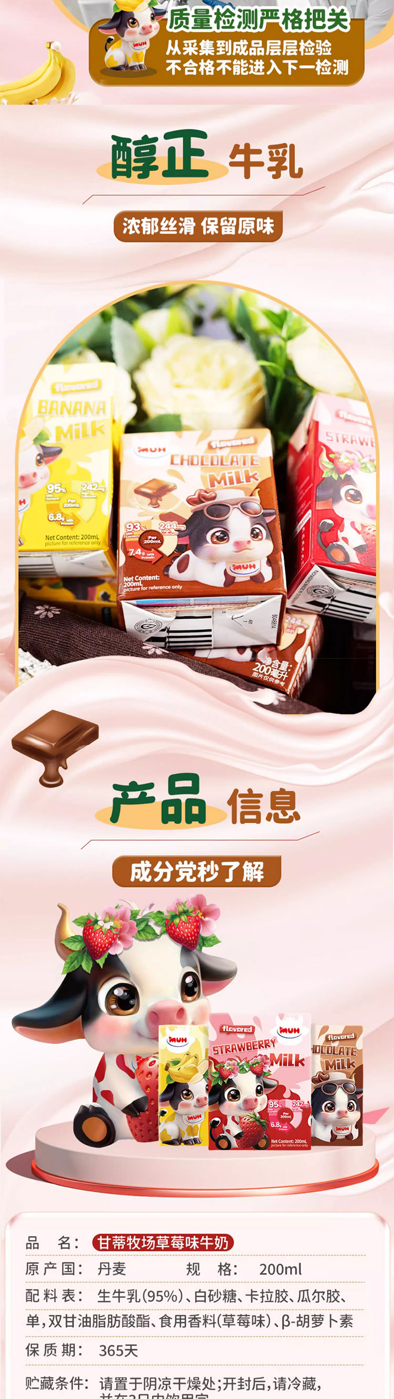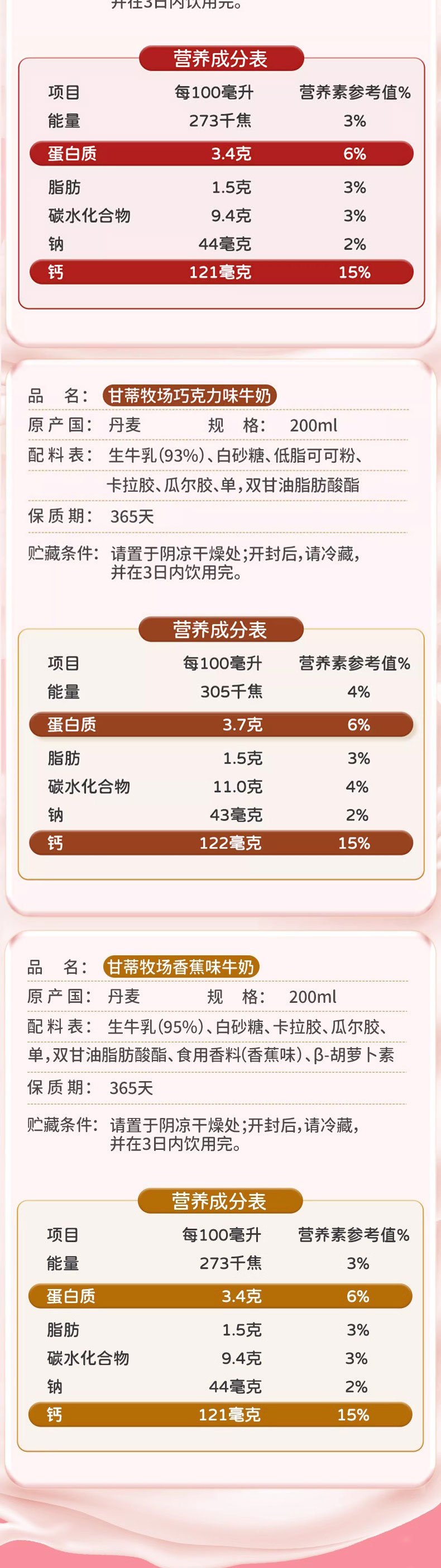 丹麦进口甘蒂牧场香蕉味|草莓味|巧克力味牛奶200mI