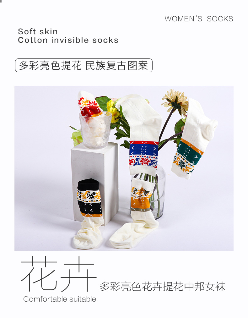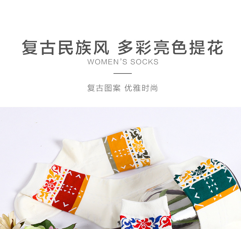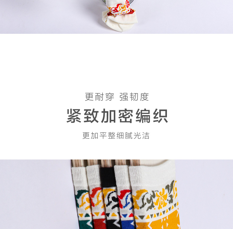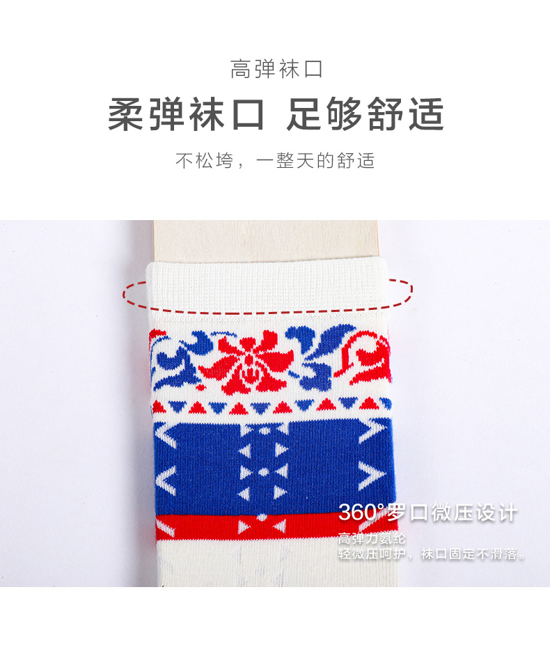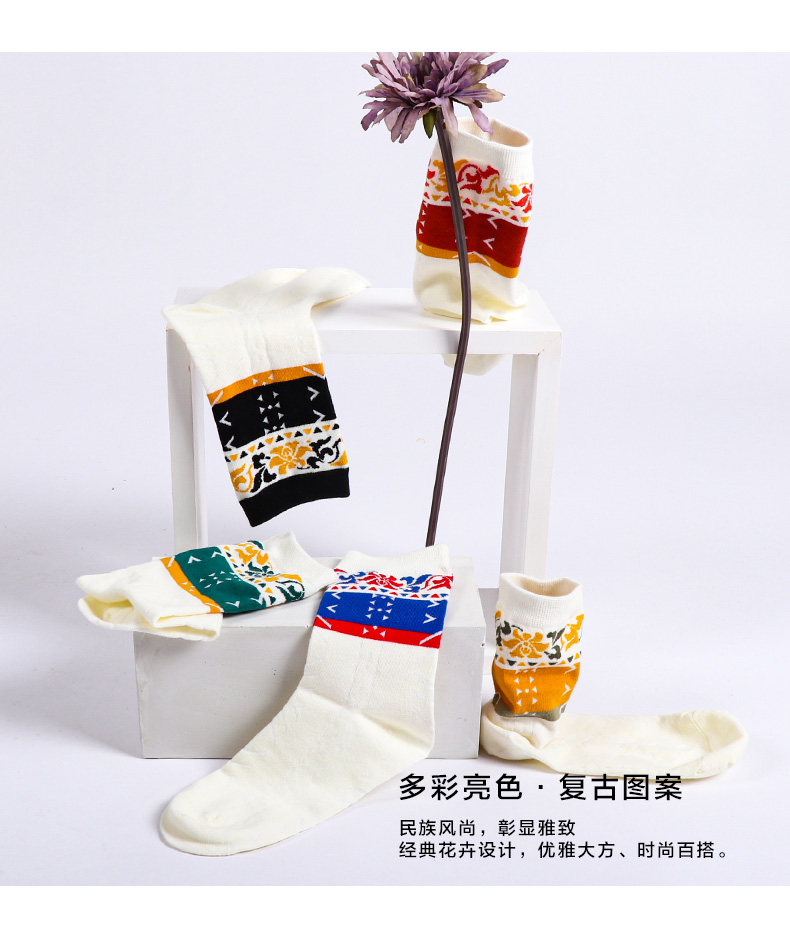 【任选6双99.5】秋冬女款多彩亮色花卉提花民族风复古图案冬季中邦女袜