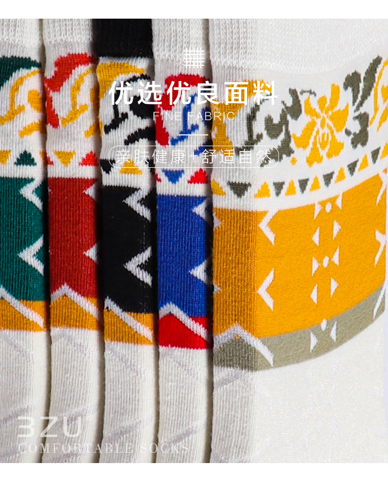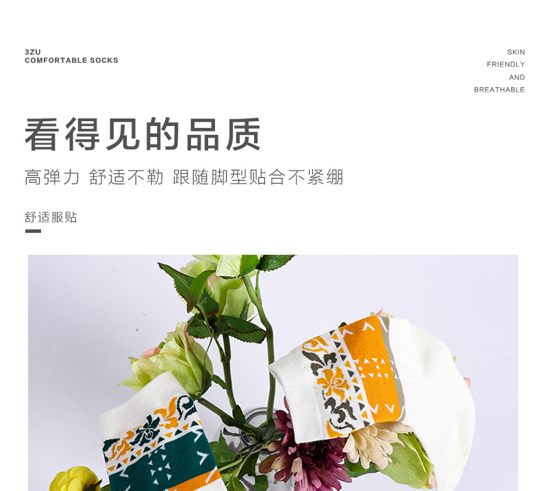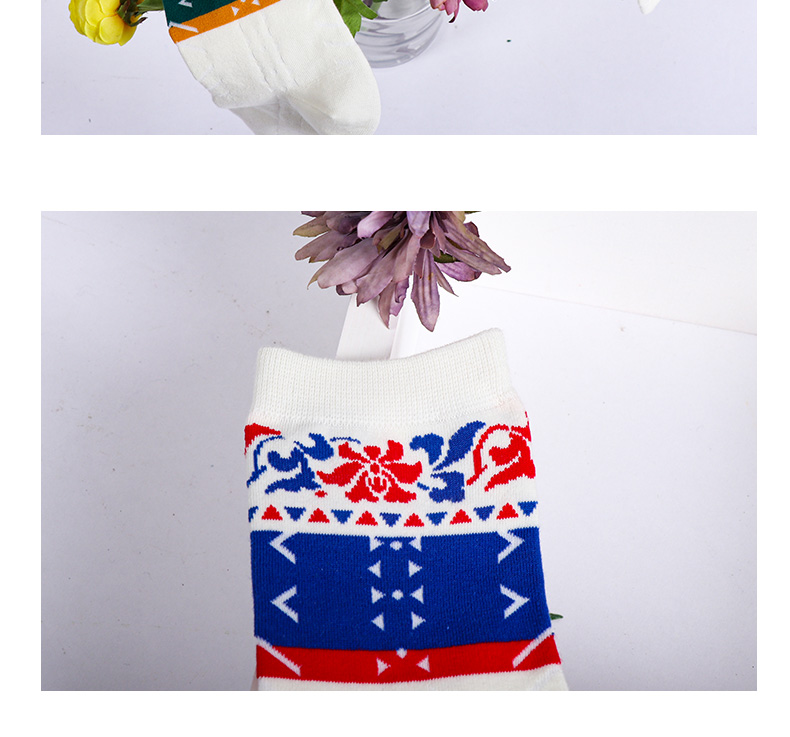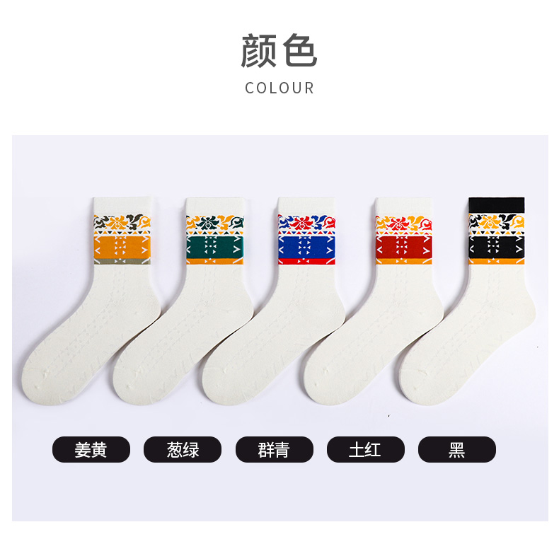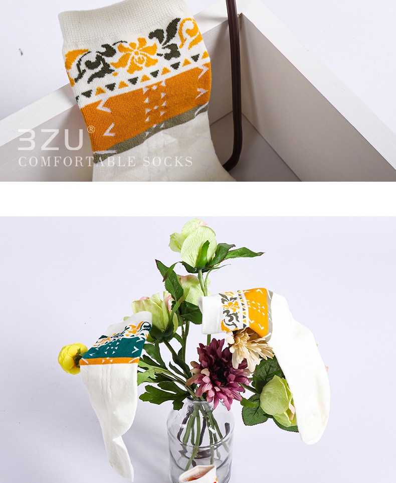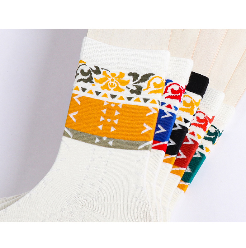 【任选6双99.5】秋冬女款多彩亮色花卉提花民族风复古图案冬季中邦女袜