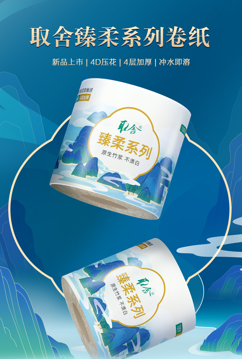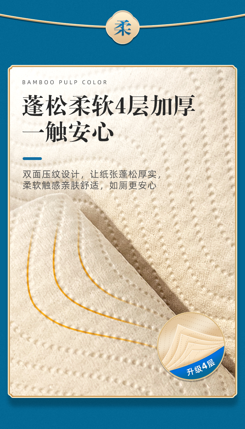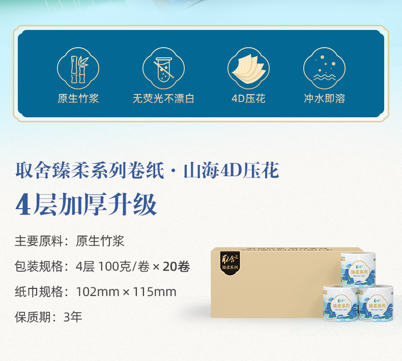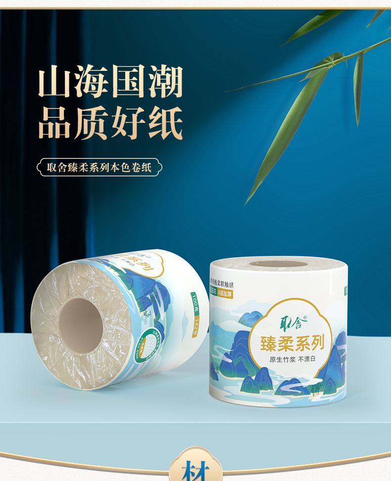 建发出品 取舍臻柔系列原生竹浆本色纸4层140节20卷无漂白竹琨抑菌 整箱家庭装