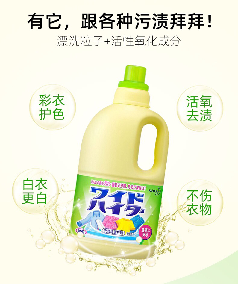 日本花王彩漂洗衣液-彩色衣物通用漂白活氧去污去黄1L-金卡会员6折