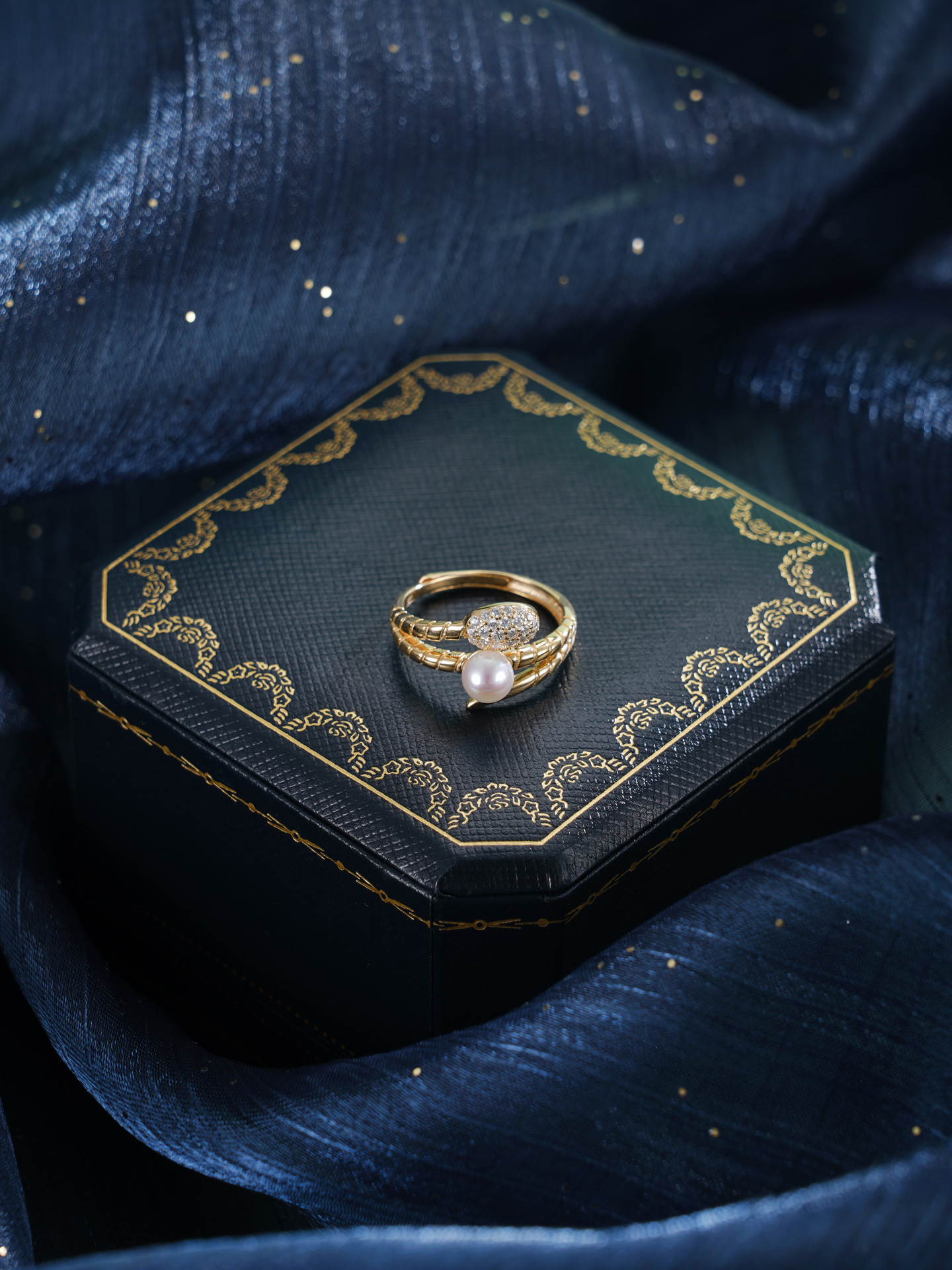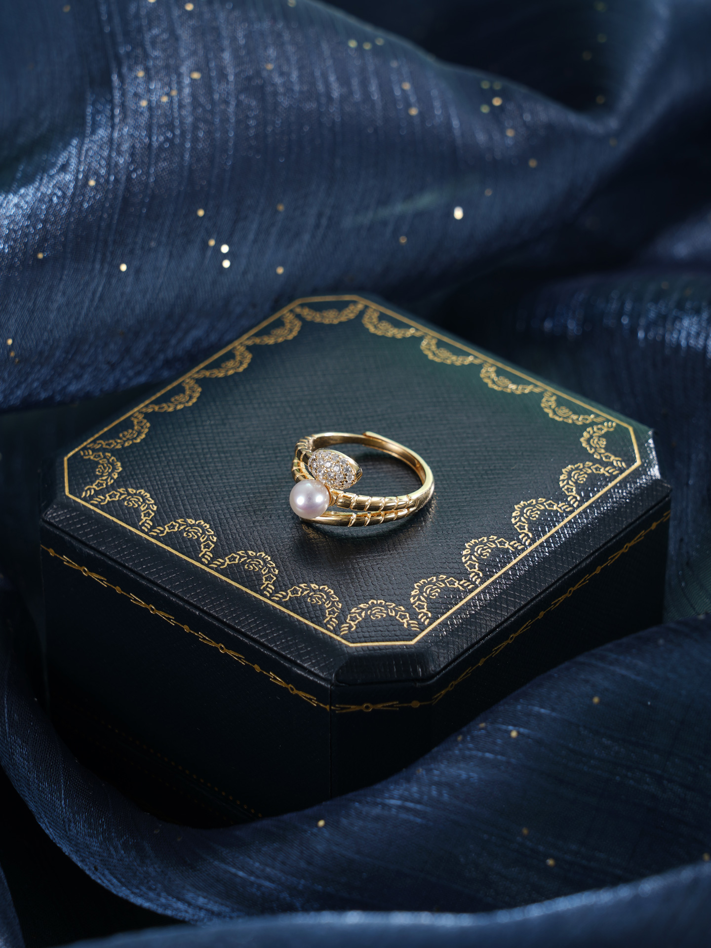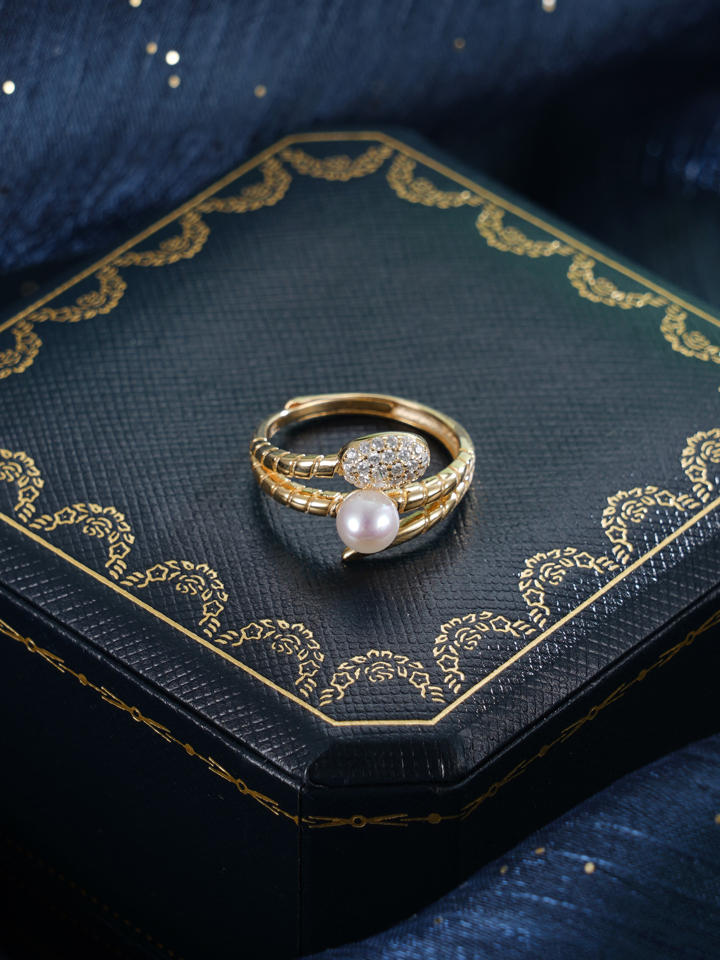 子佩集【灵蛇转运】银S925珍珠AOYA奥雅戒指【MLJZ028】5mm珠蛇缠绕三圈镀金2512