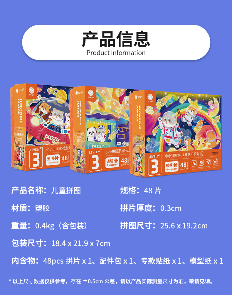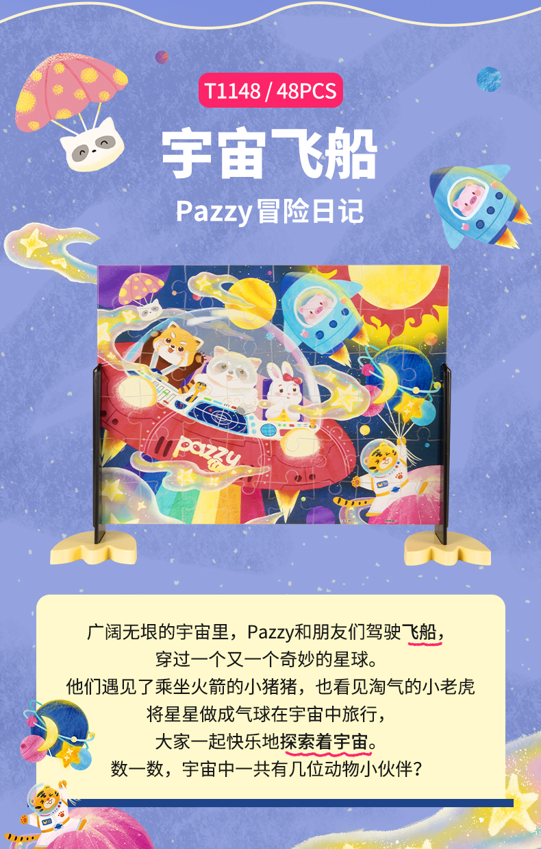 【折扣商品 不退不换】48片儿童平面塑料拼图 Pazzy冒险日记系列 T1148/T1149/T1150