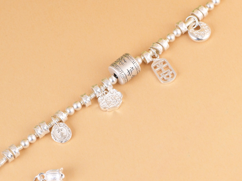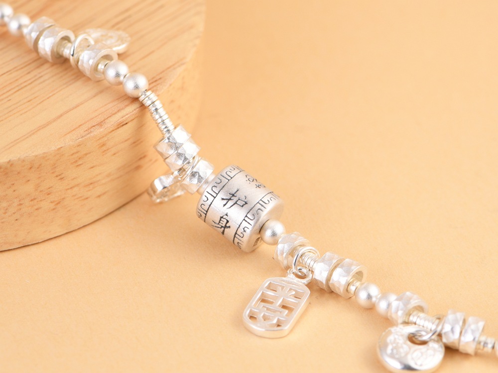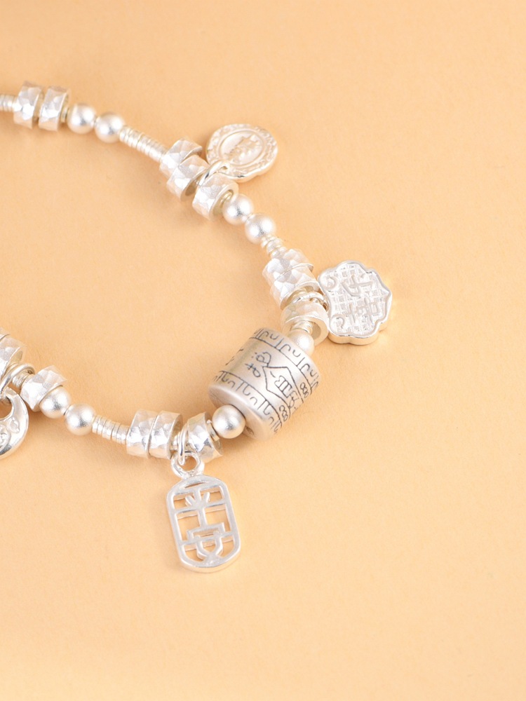 【吉言喜乐】足银复古平安吊饰桶珠盘缠手链【SCH-CK40237-4】