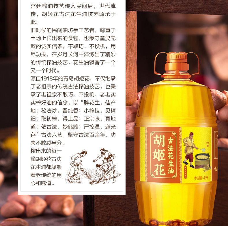 【不打烊】胡姬花古法花生油 4L/桶 物理压榨 食用油 初榨精华家用家庭桶装 百年古法 真正够香
