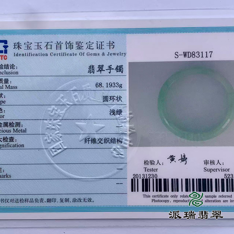 派瑞翡翠 翡翠手镯 糯种 浅绿