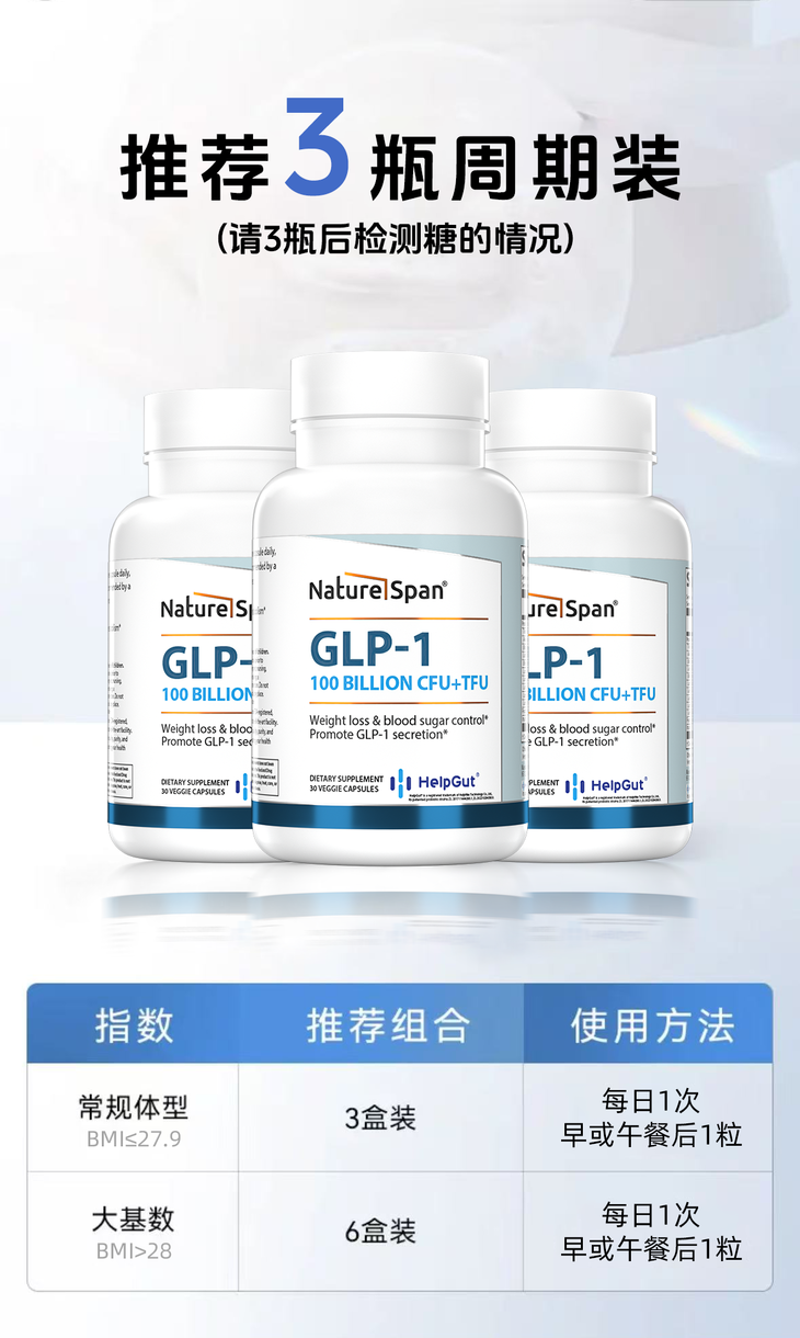 GLP-1轻体瘦子菌 1000亿复合益生菌AKK体重管理胶囊30粒 NATURESPAN倍能适