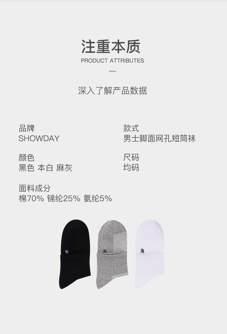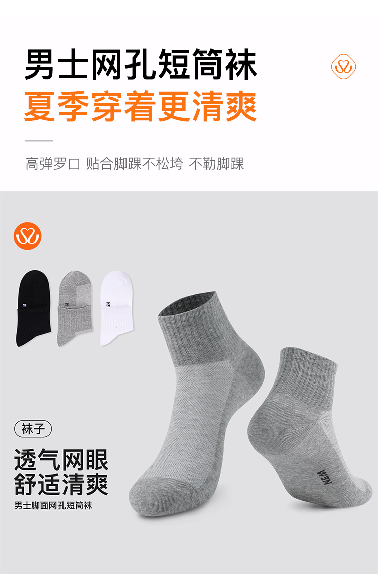 【满3双/19.9元】【秀黛】男士脚面网孔短筒袜高弹罗口脚面网眼透气立体剪裁男士专属短筒袜【1双】W5221003T【门店同款】