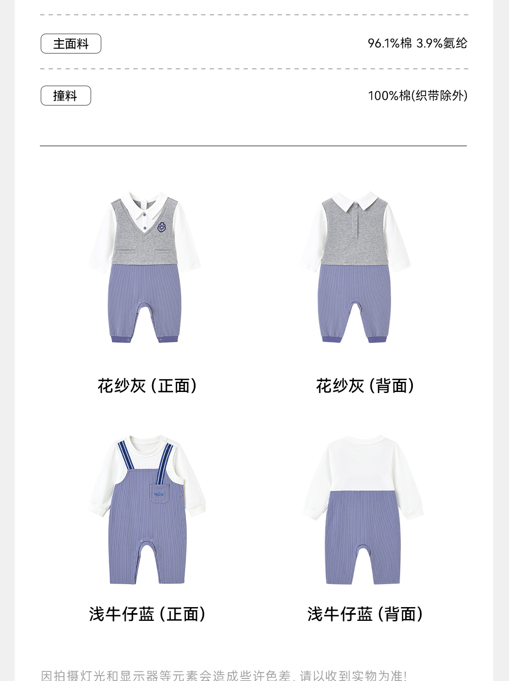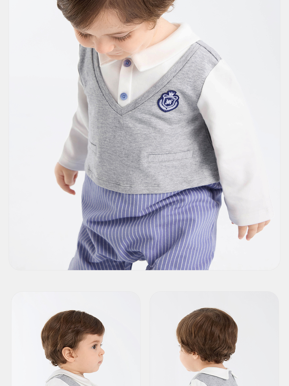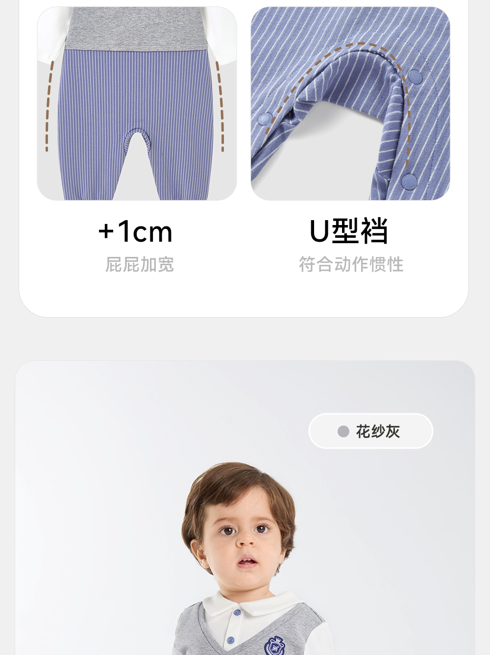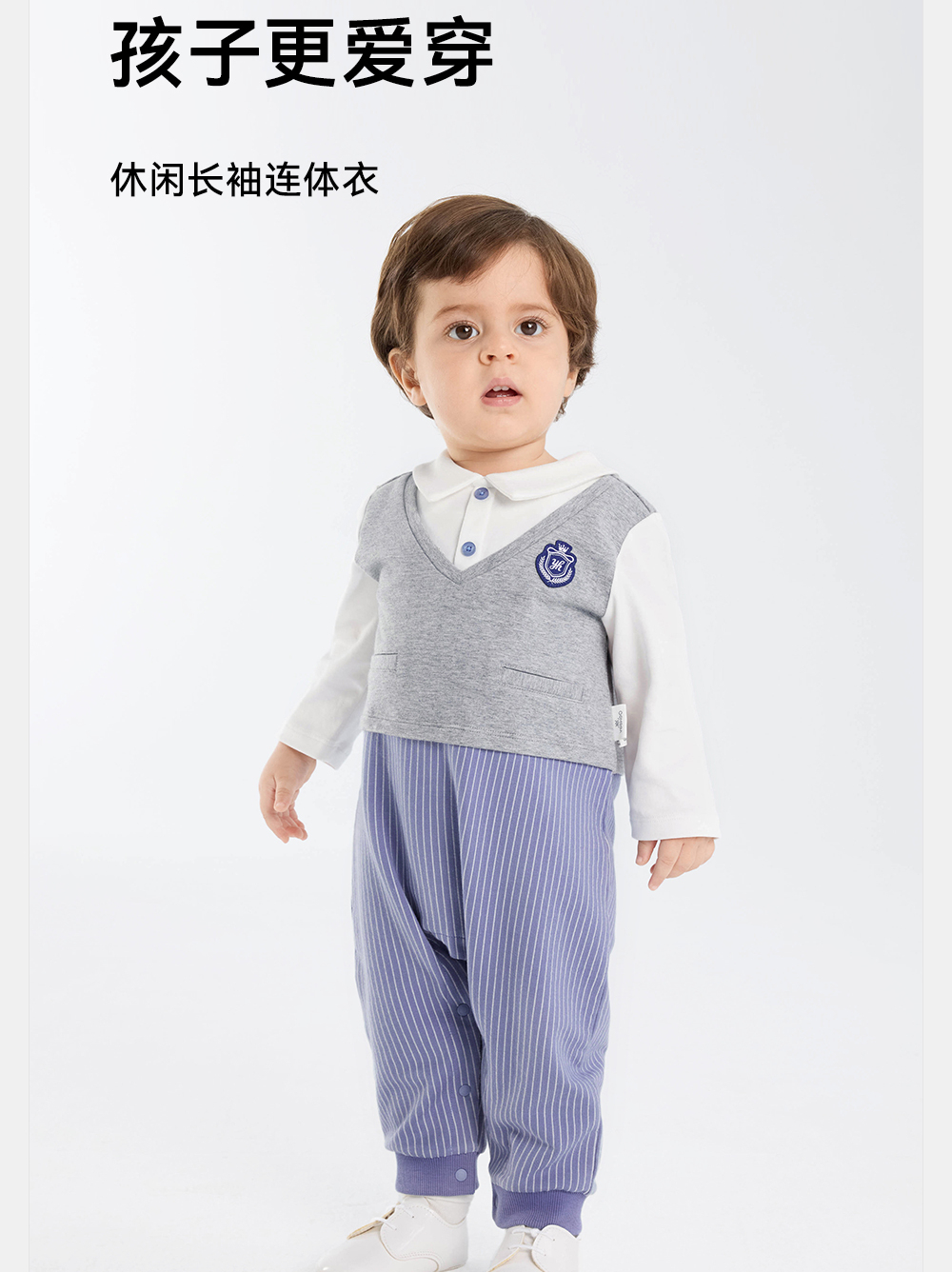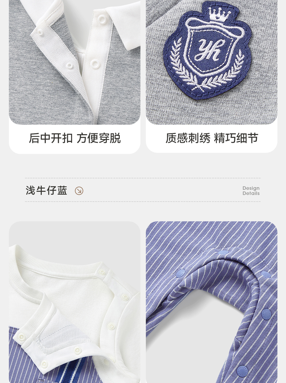 英氏婴儿连体衣秋季男童外出连身衣2024新款宝宝衣服YRHAJ3Q551A