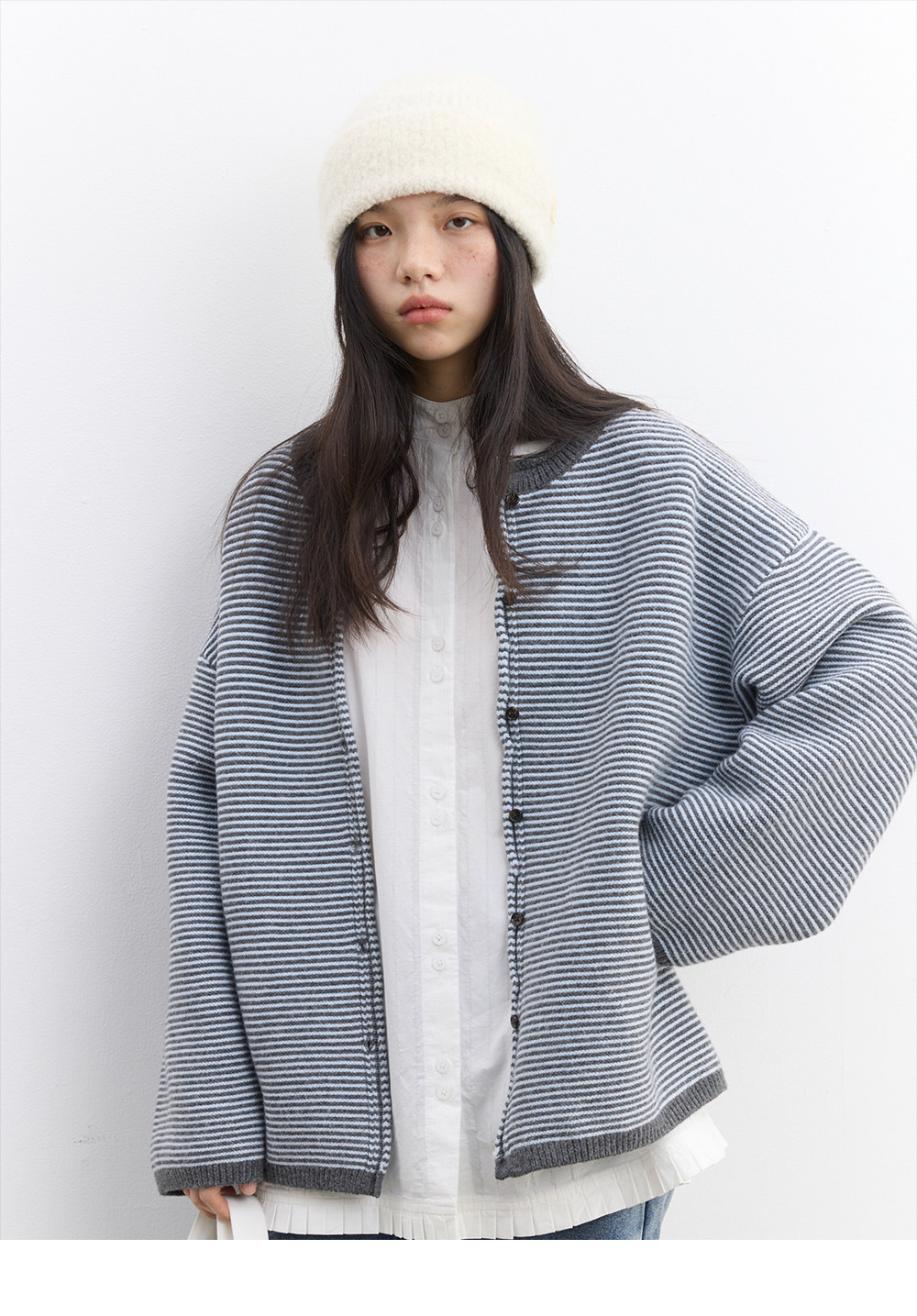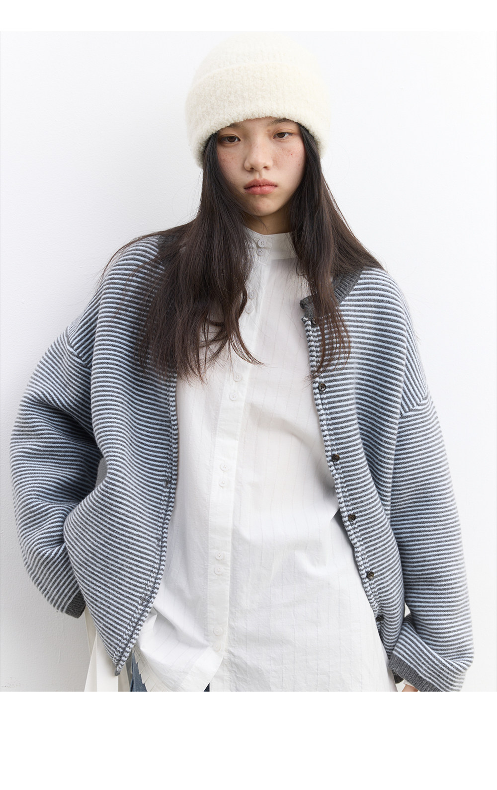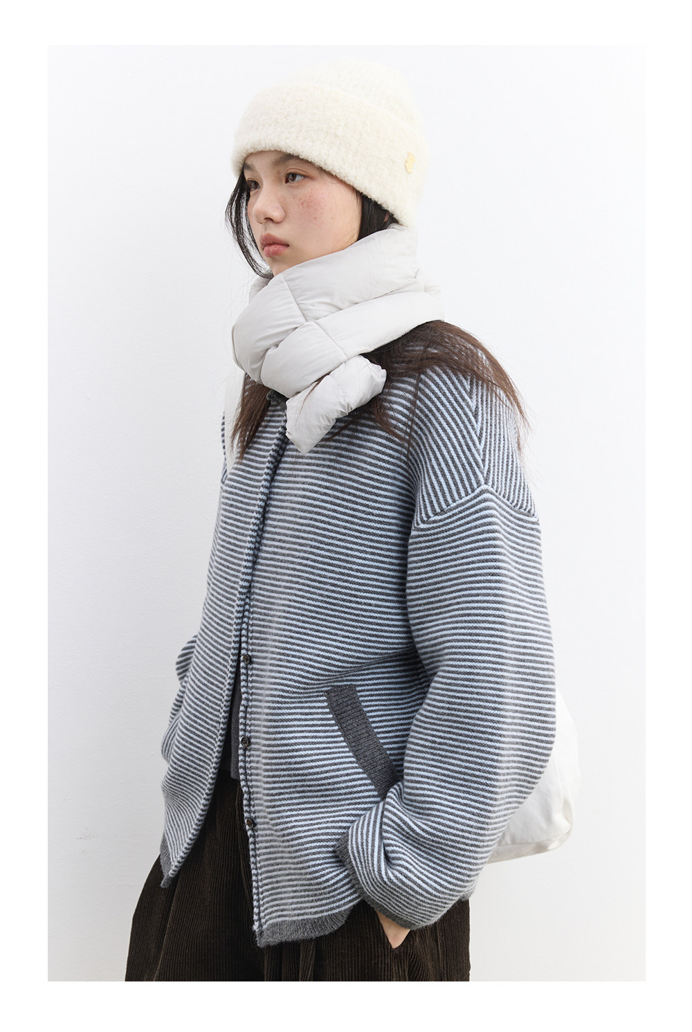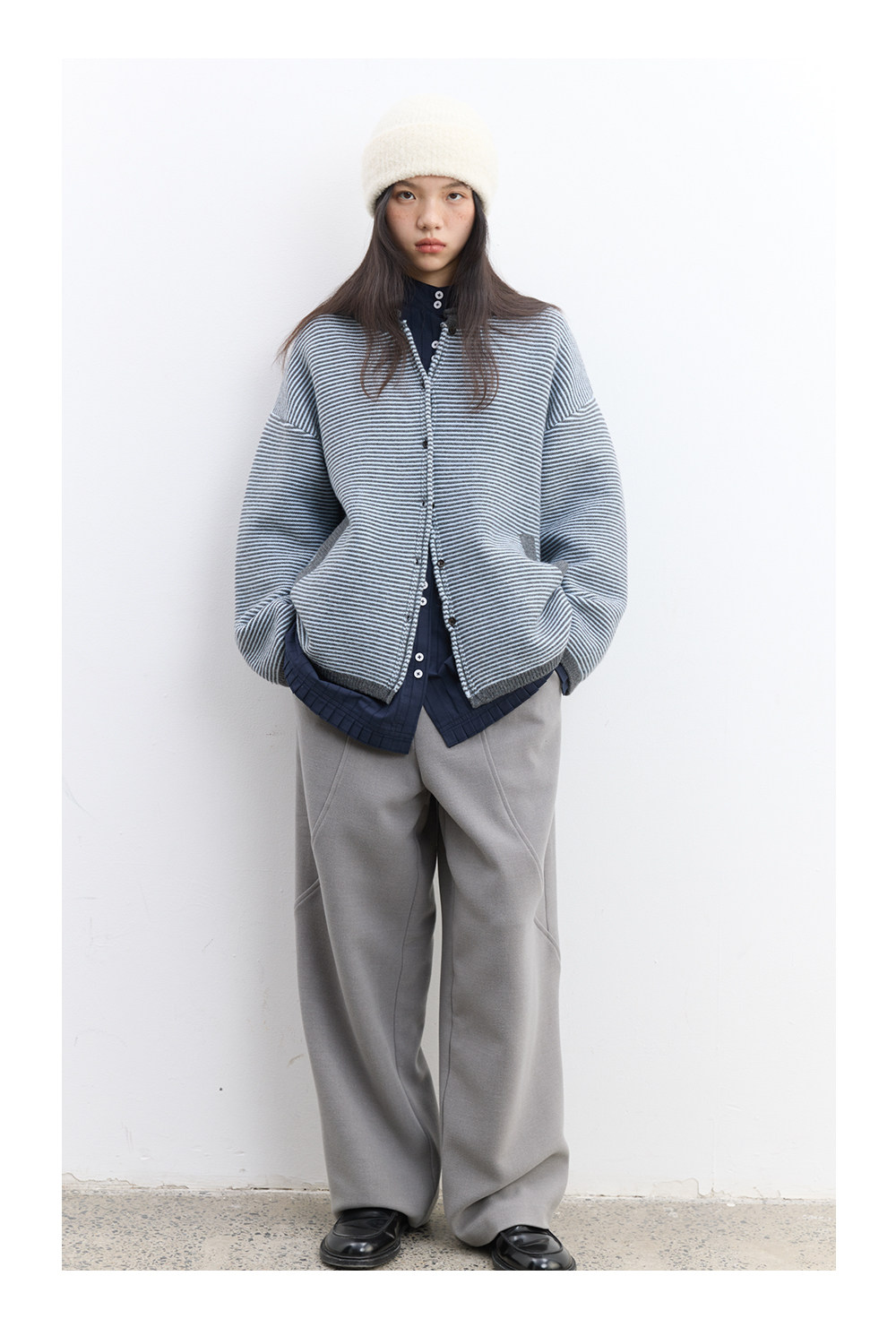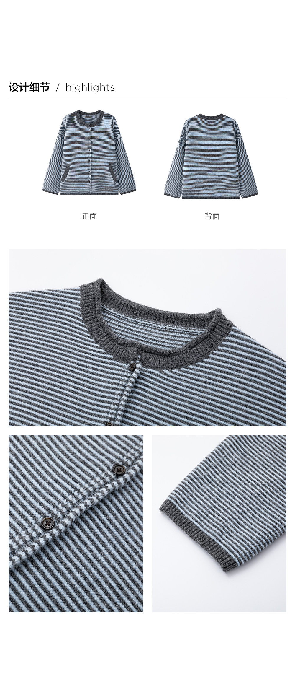 步履不停/5D13326C/反针条纹毛衣开衫外套