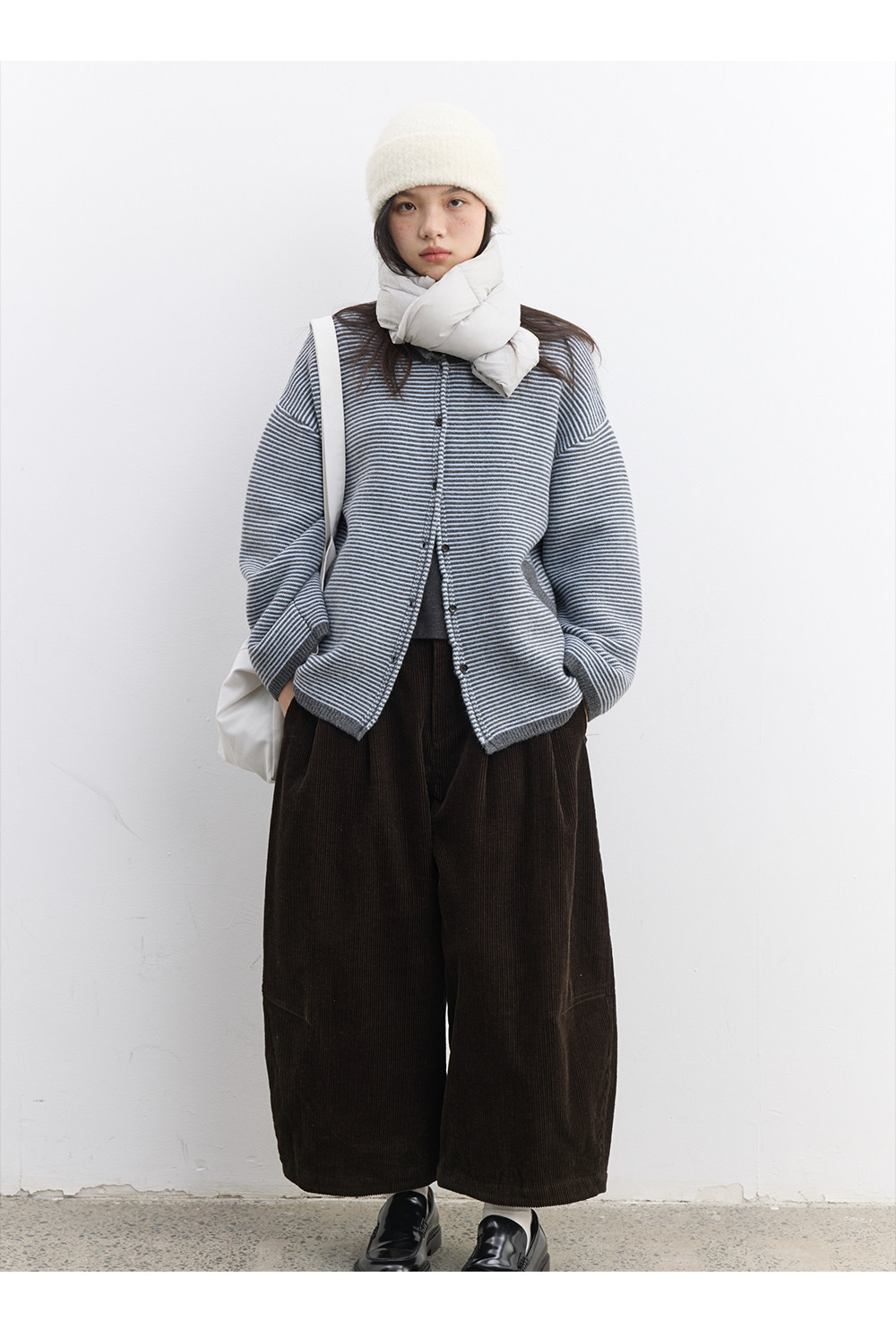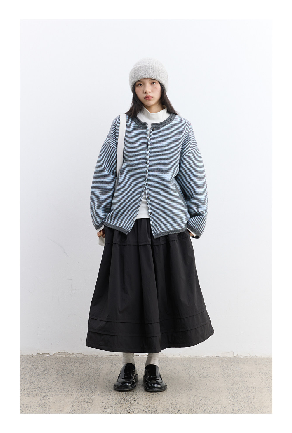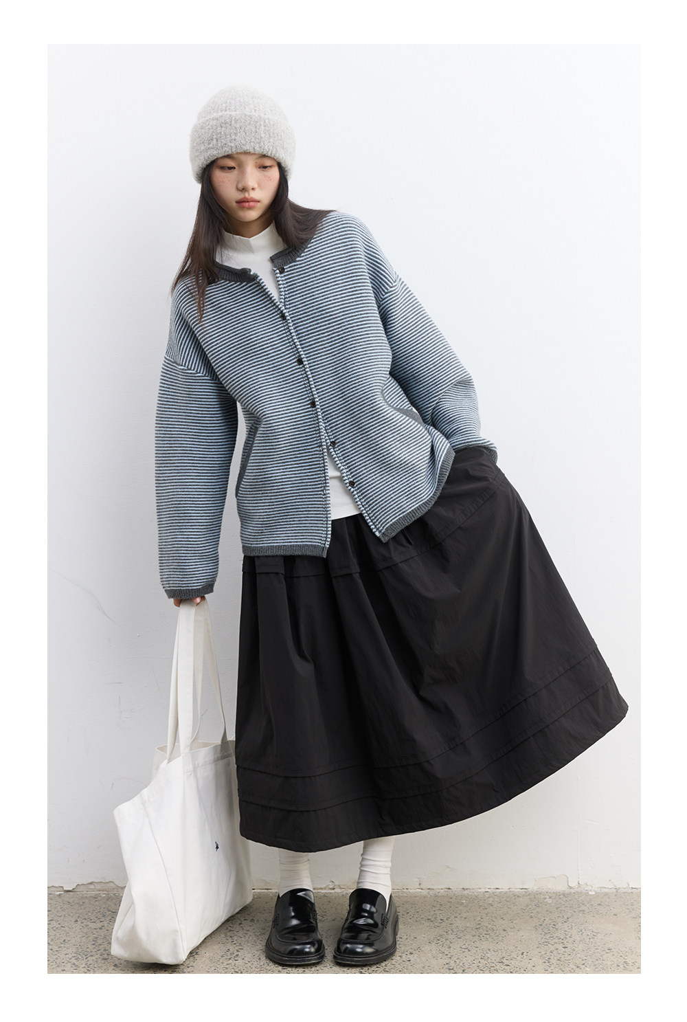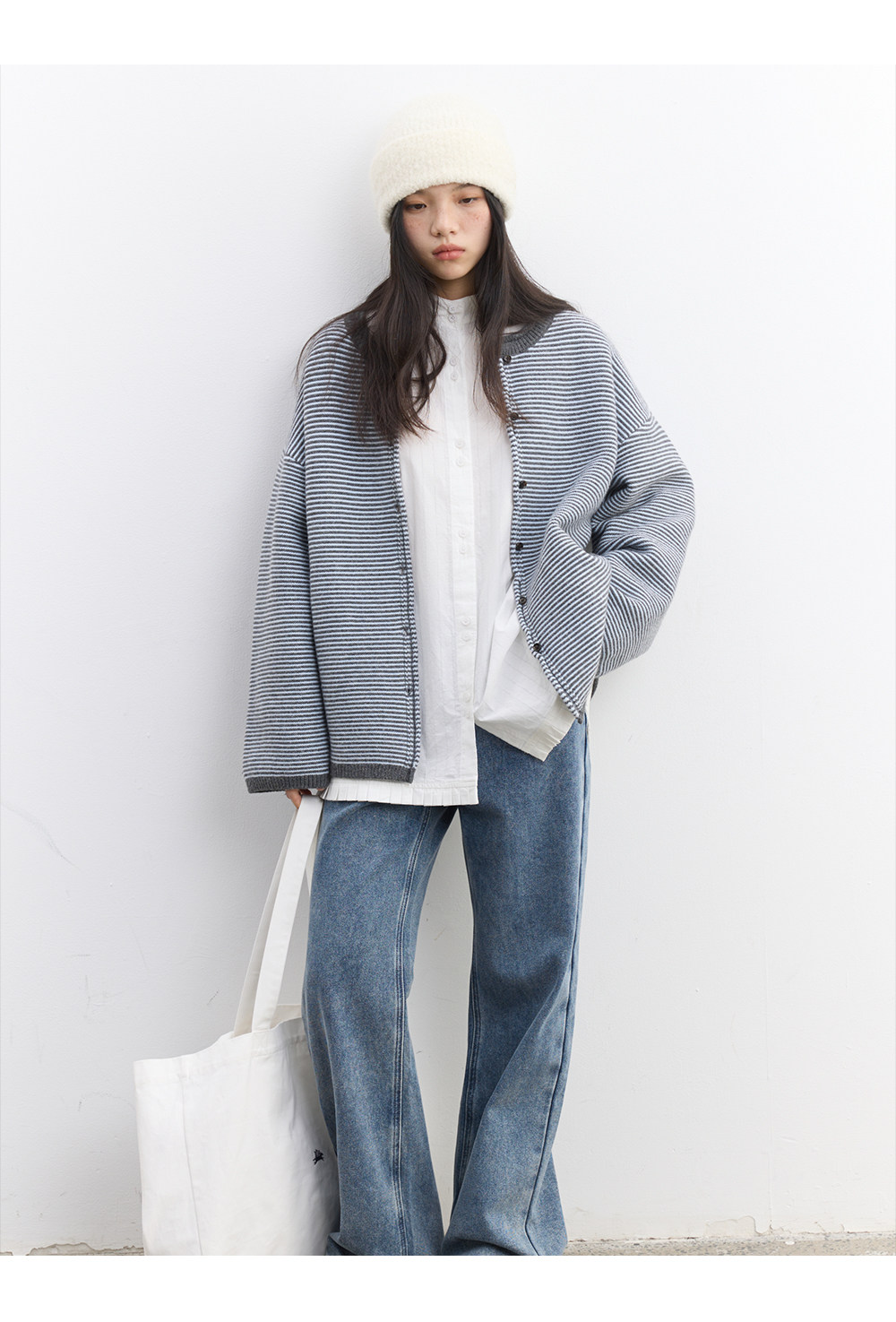 步履不停/5D13326C/反针条纹毛衣开衫外套