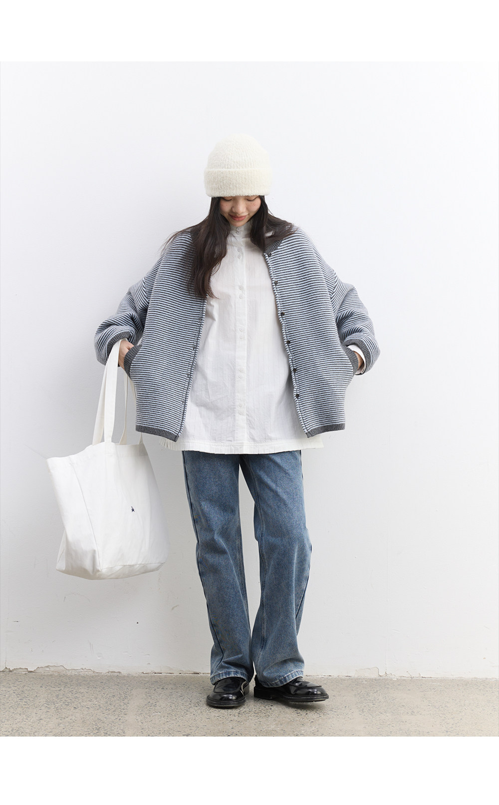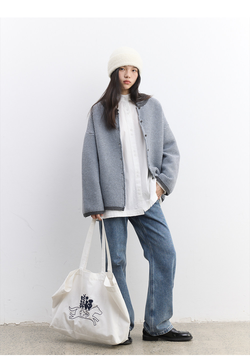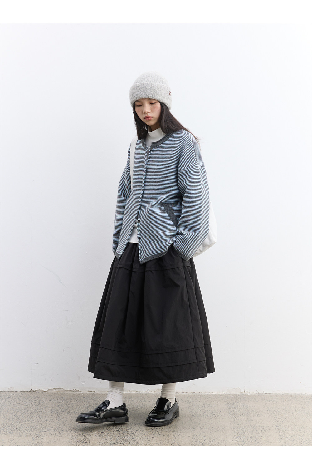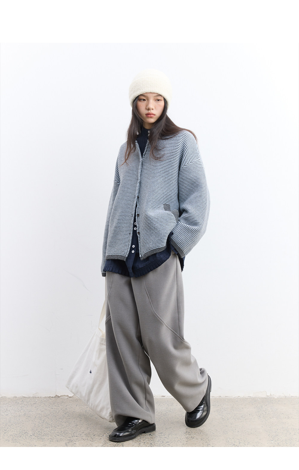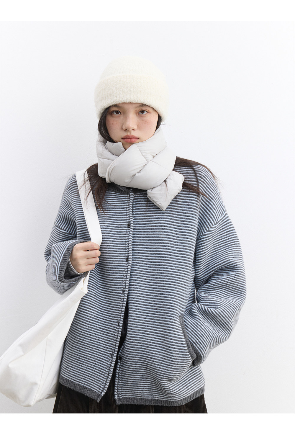 步履不停/5D13326C/反针条纹毛衣开衫外套