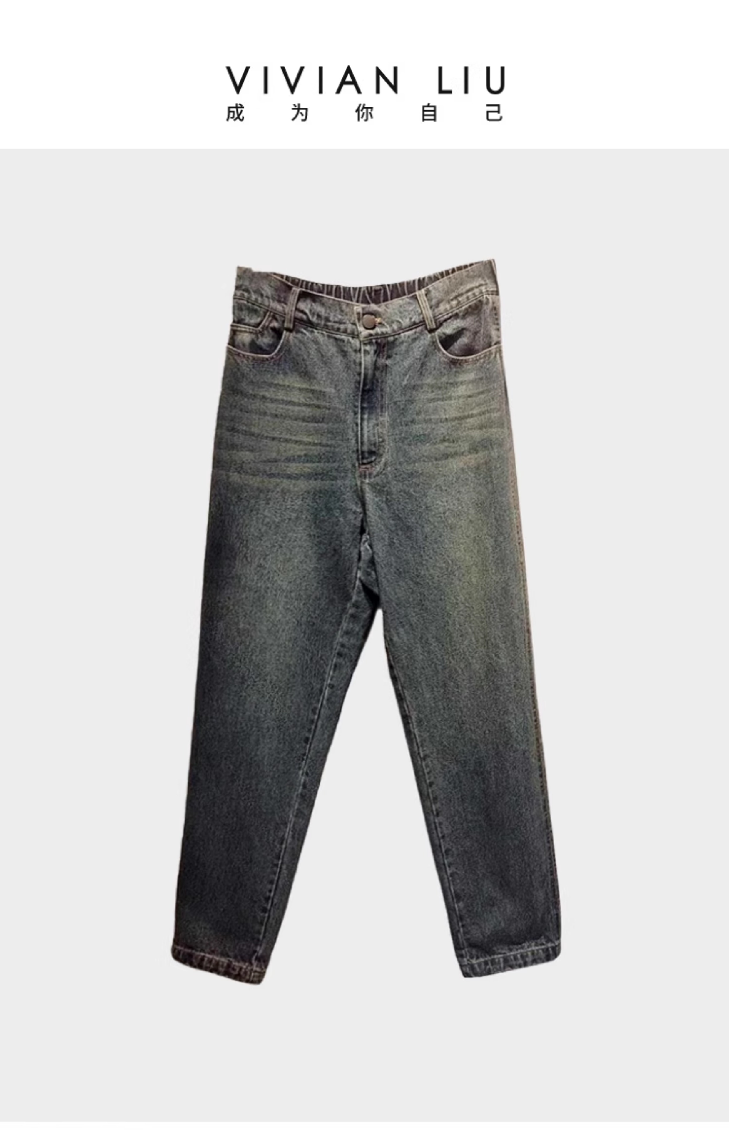 VIVIAN LIU薇薇安刘R2415003春女装新款后腰松紧斜插兜直筒裤